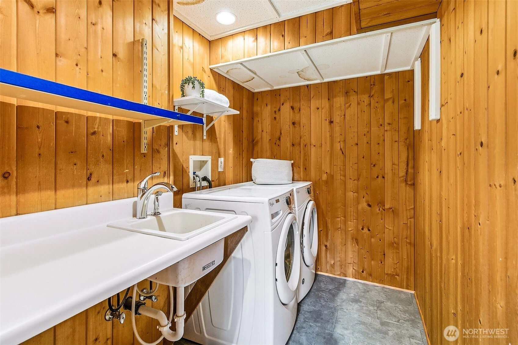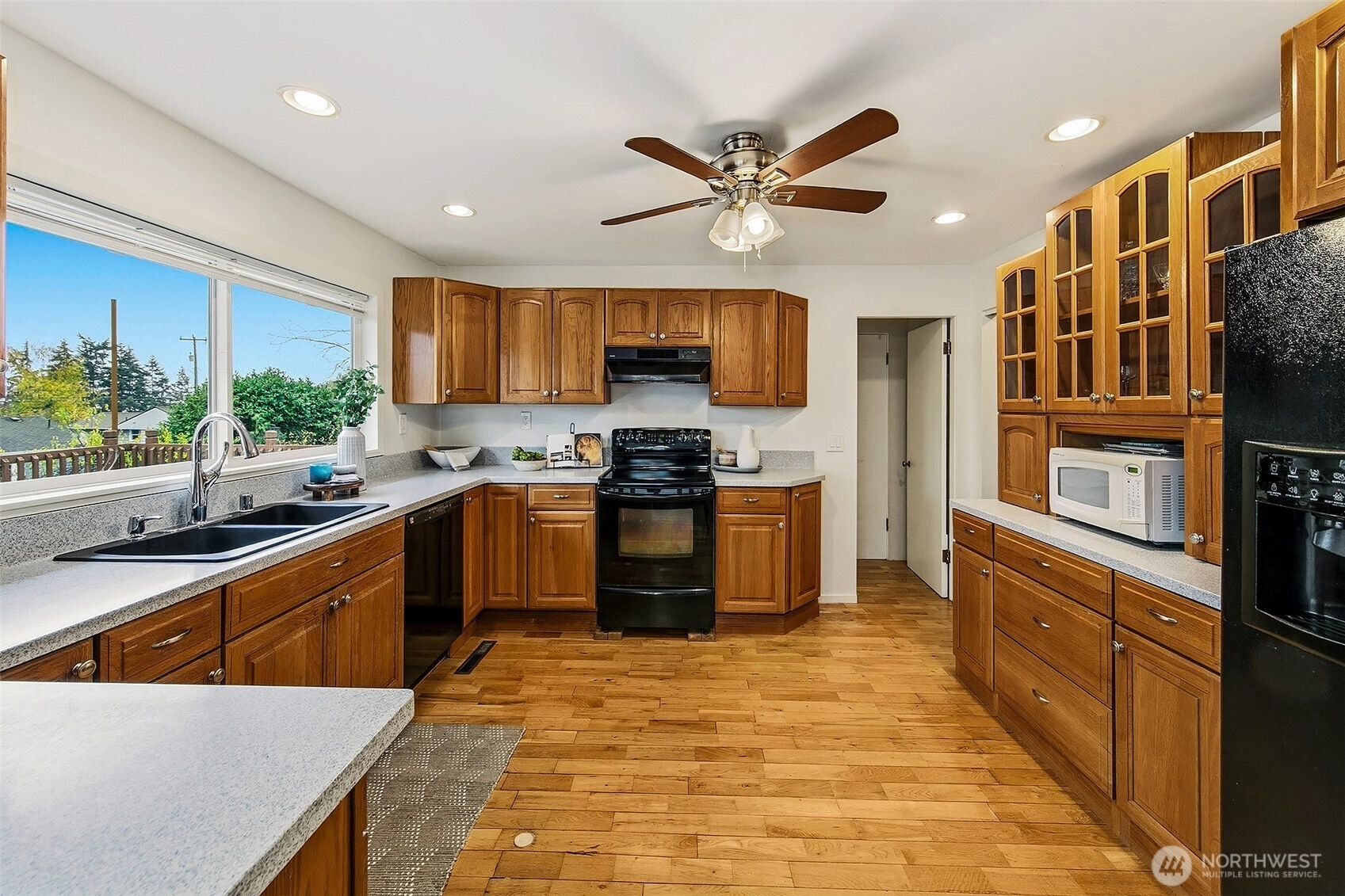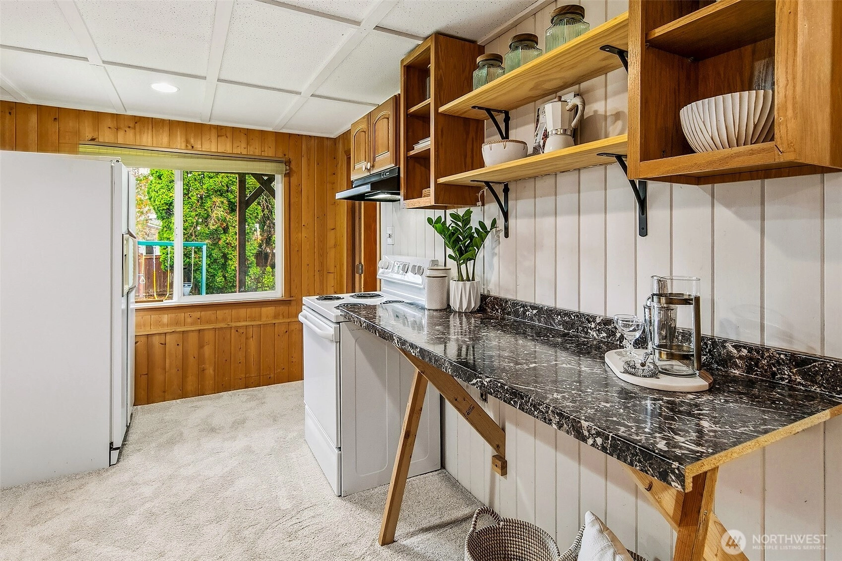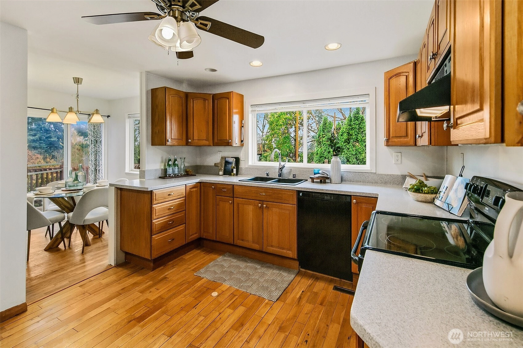 Welcome to this classic 1955 rambler nestled on a quiet street in the Fauntleroy/Gatewood neighborhood of West Seattle. Step inside to find hardwood floors, large picture windows that flood the living spaces with natural light, and a cozy gas fireplace with built-ins, perfect for cool Seattle evenings. The kitchen features clean lines and efficient design, opening to a spacious dining area, large deck and huge private backyard - ideal for gatherings or outdoor living. Three comfortable bedrooms and a remodeled full bath on the freshly painted main floor. Daylight lower level with rec room, 3/4 bath and kitchenette perfect for entertaining and relaxing. One car attached garage. Great location near parks, schools and shopping!
