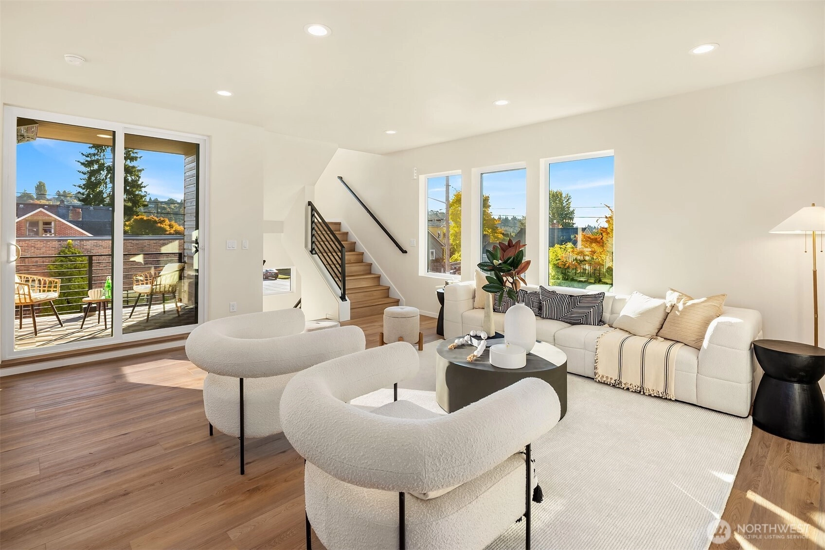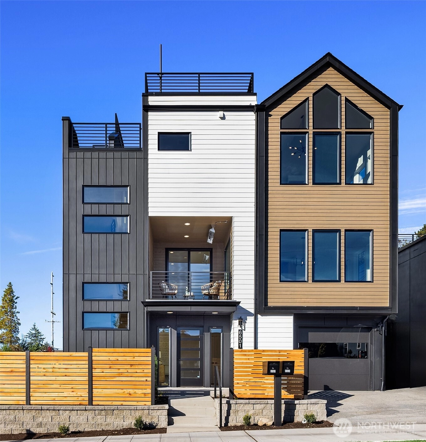 Welcome to this brand new 4 bedroom home by local builder New City Homes. On your main floor, a light-filled, spacious kitchen, dining, and living area opens to a private balcony. Upstairs, find three bedrooms, including a spacious primary suite with a walk-in closet and elegant bath. Continue up to the rooftop deck to take in sweeping views of the Olympic Mountains and downtown skyline. A lower-level guest suite with its own bath offers flexibility, while a convenient mudroom connects to the attached one-car garage for easy everyday living. Enjoy proximity to great restaurants, shopping and recreation in Ballard and Phinney Ridge & Green Lake.