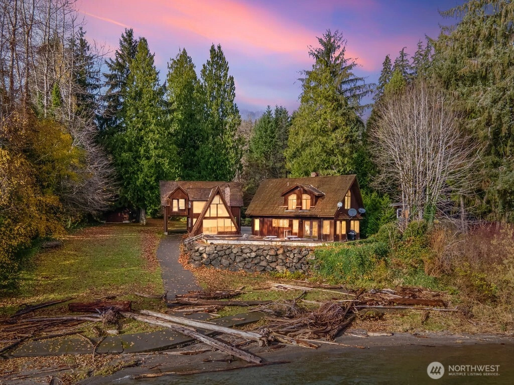 Discover a rare year-round lakefront estate at 52 Lakeview Dr in Lake Quinault. Set on an acre with 144 ft of shoreline, this property includes TWO homes, a third residential space, and a detached garage. Together, the homes offer 5 beds and 3.25 baths, featuring an impressive 1,834 SQFT A-frame with soaring ceilings and warm wood accents, plus a 1,512 SQFT second home built in 1993, ideal for guests or extended living. The detached garage provides great storage, and the third residential space offers endless use options—studio, office, or guest quarters. A standout opportunity on the coveted north shore of Lake Quinault.