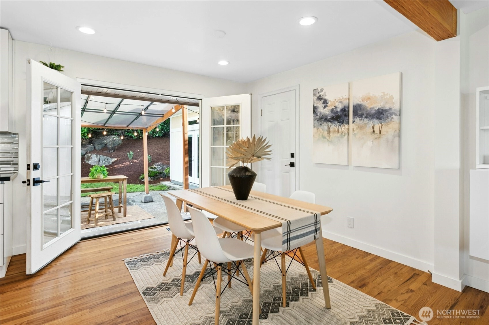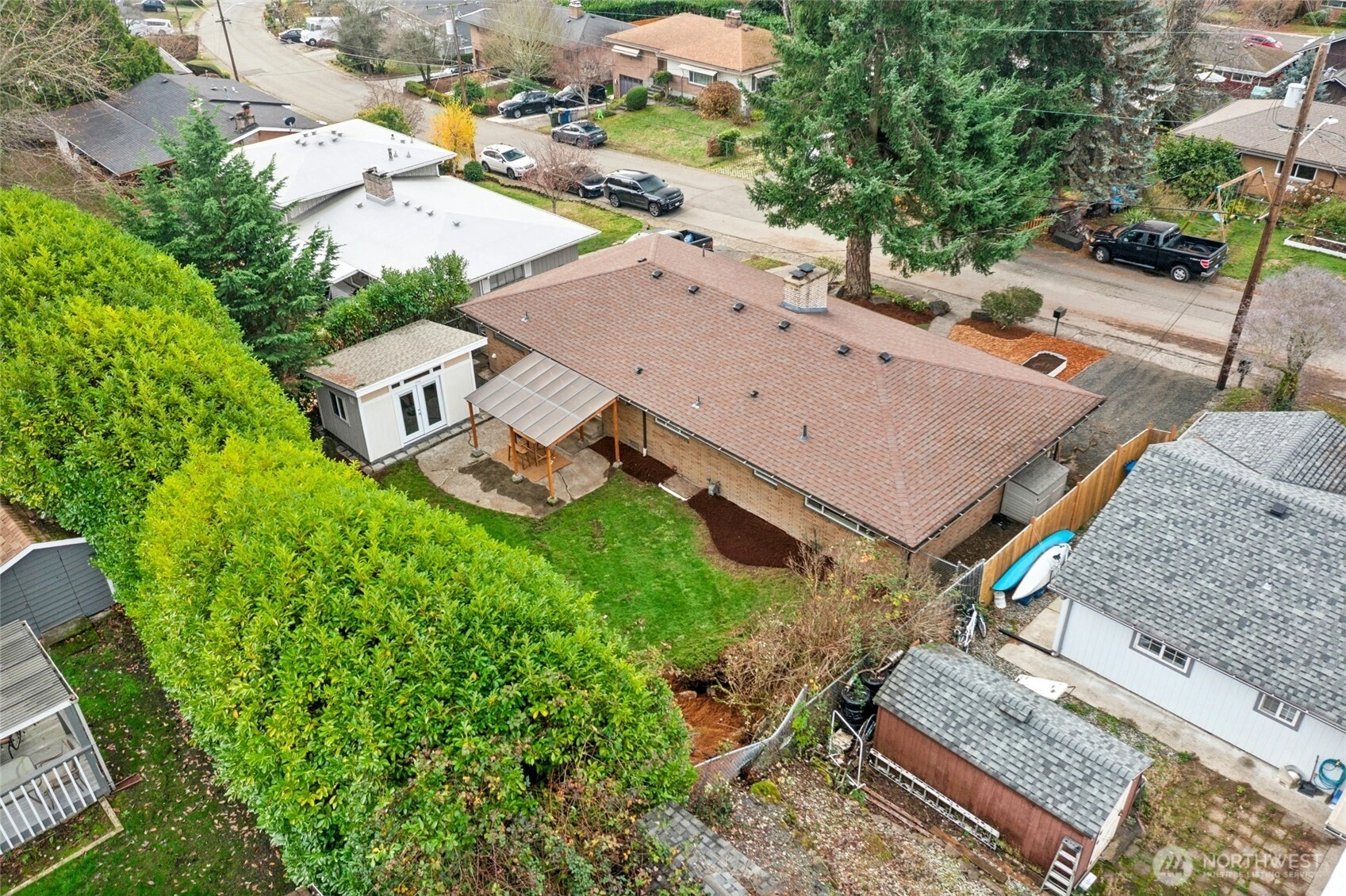 Experience timeless one-level living with thoughtful updates throughout. Enjoy beautifully refreshed landscaping, hardwood floors, and an updated kitchen featuring a stunning tile backsplash, ample prep space, and generous storage. The inviting living area showcases charming wood beams, while French doors off the kitchen open to a covered patio—perfect for year-round enjoyment. Outdoor perks include RV parking, space for a garden, and a versatile Tuff Shed ideal for storage, a home office, or flex space. Updated bathrooms complete this well-maintained and move-in ready home. Seller procured inspection report for your peace of mind.