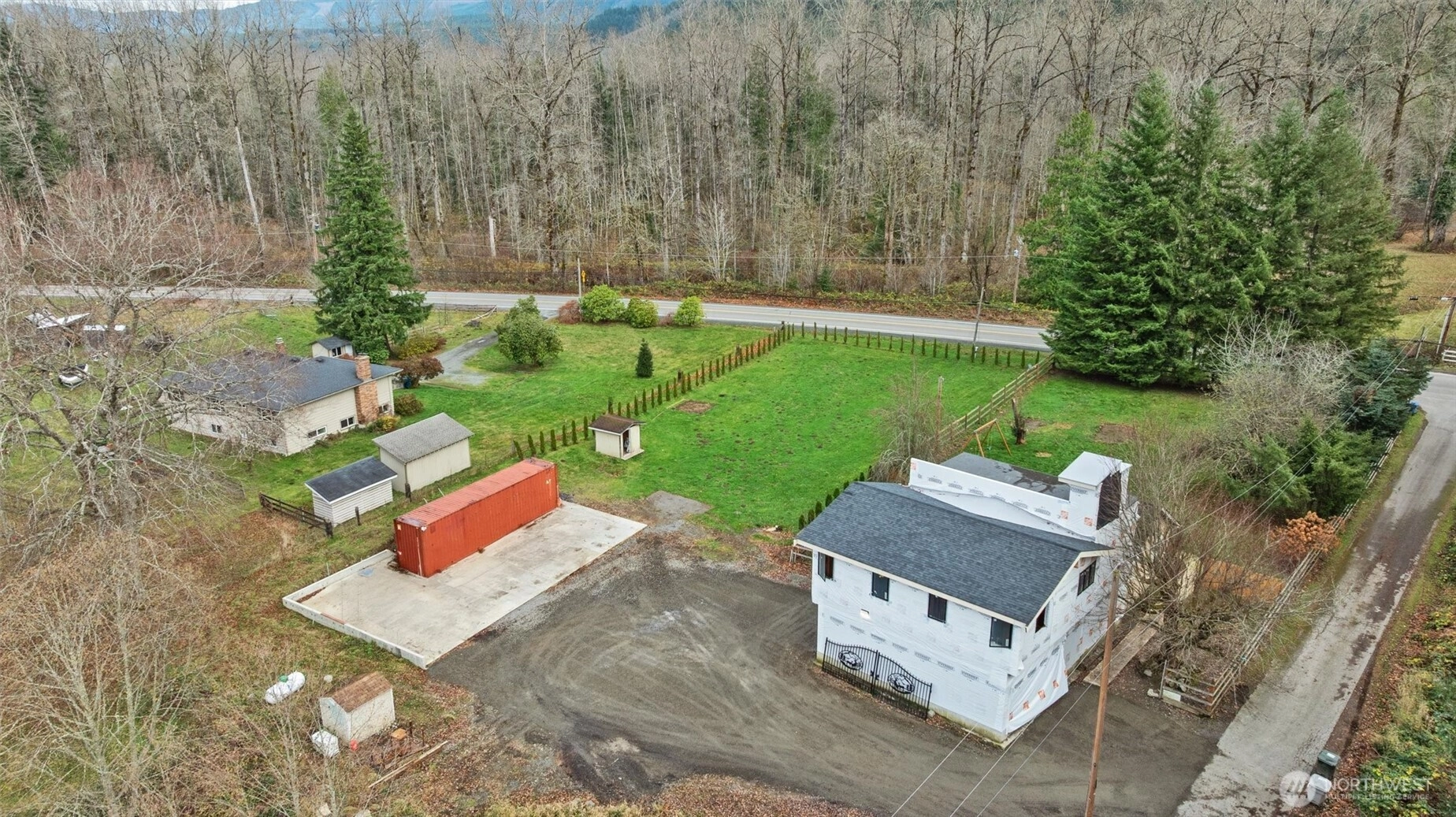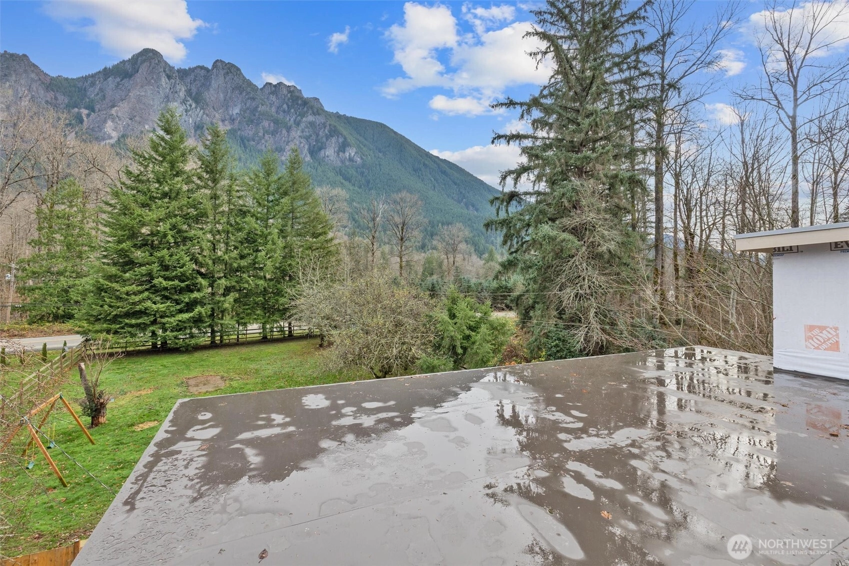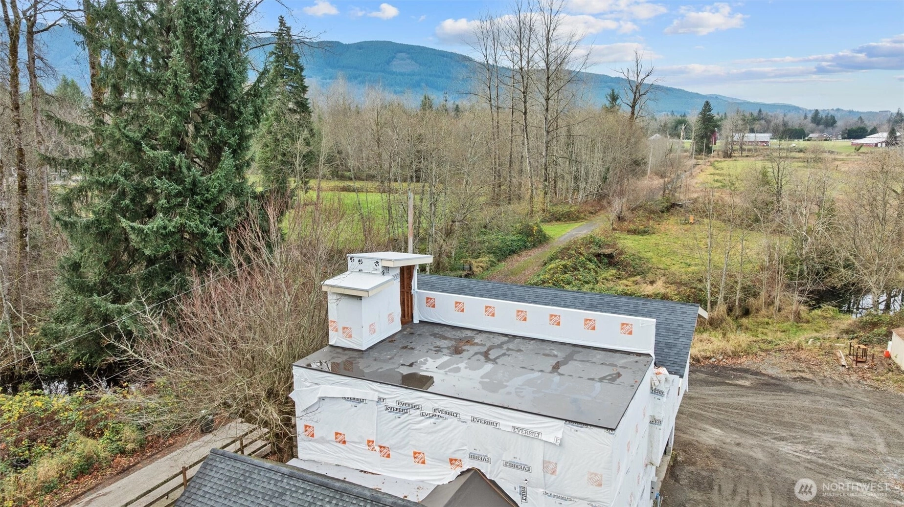 Incredible opportunity just outside North Bend with unobstructed Mt. Si views. This partially finished custom home sits on a full acre and is ready for your vision. Framing is complete with partial electrical, and the lower level is livable while you finish the upstairs. The planned layout includes 3 bedrooms and laundry up, with a main floor featuring an open kitchen, living room, mudroom, office, and bathroom with room for a sauna. A third-floor rooftop deck offers stunning mountain scenery. A drive-through garage and large concrete slab for a future shop add even more potential. No HOA and minutes to town and I-90.