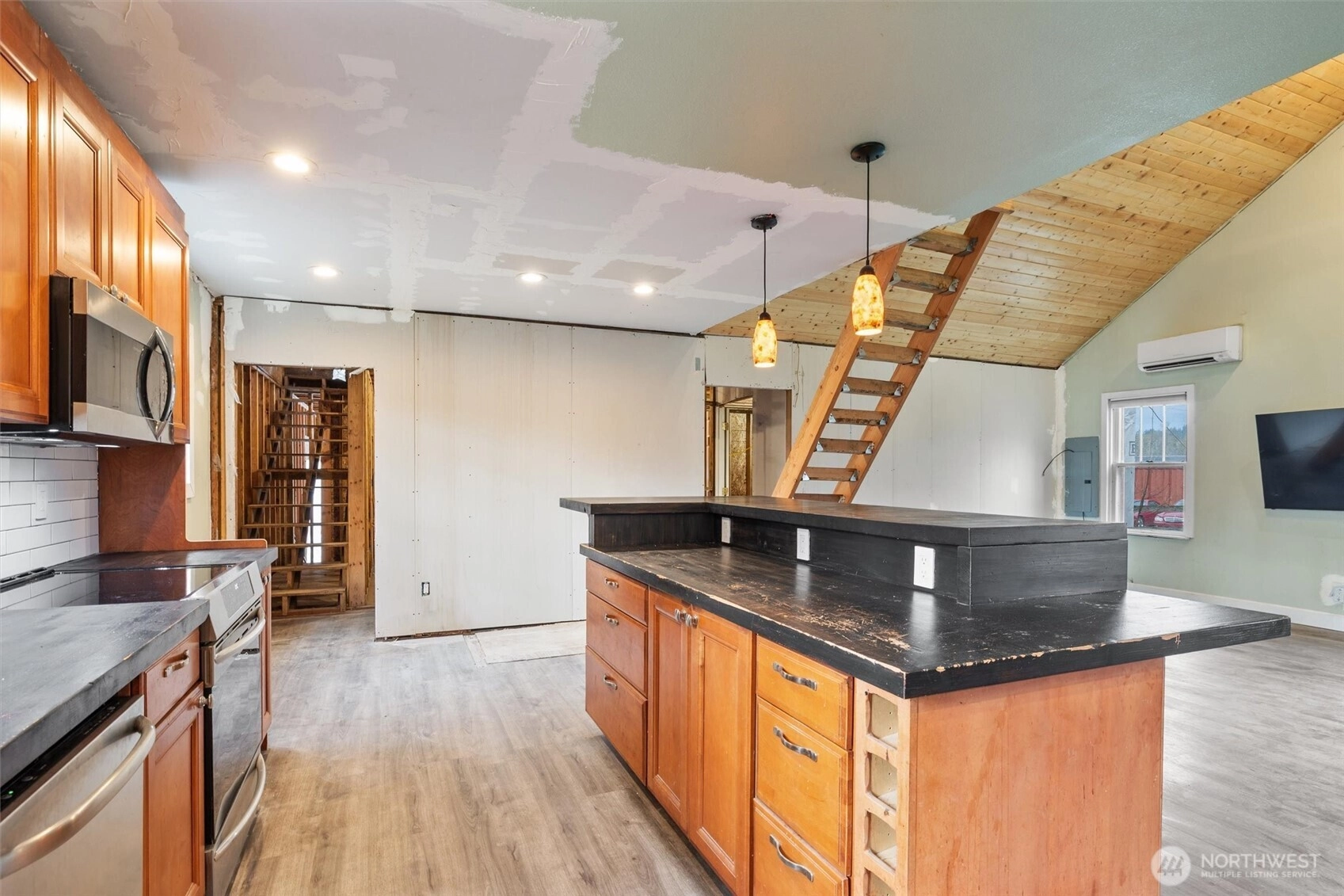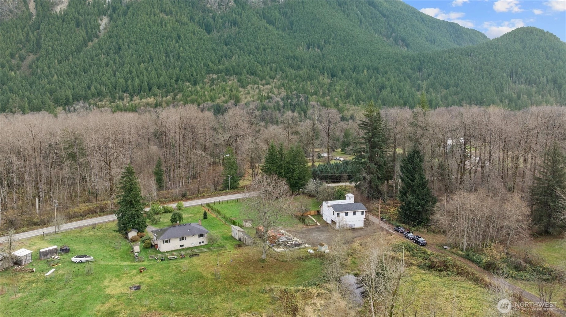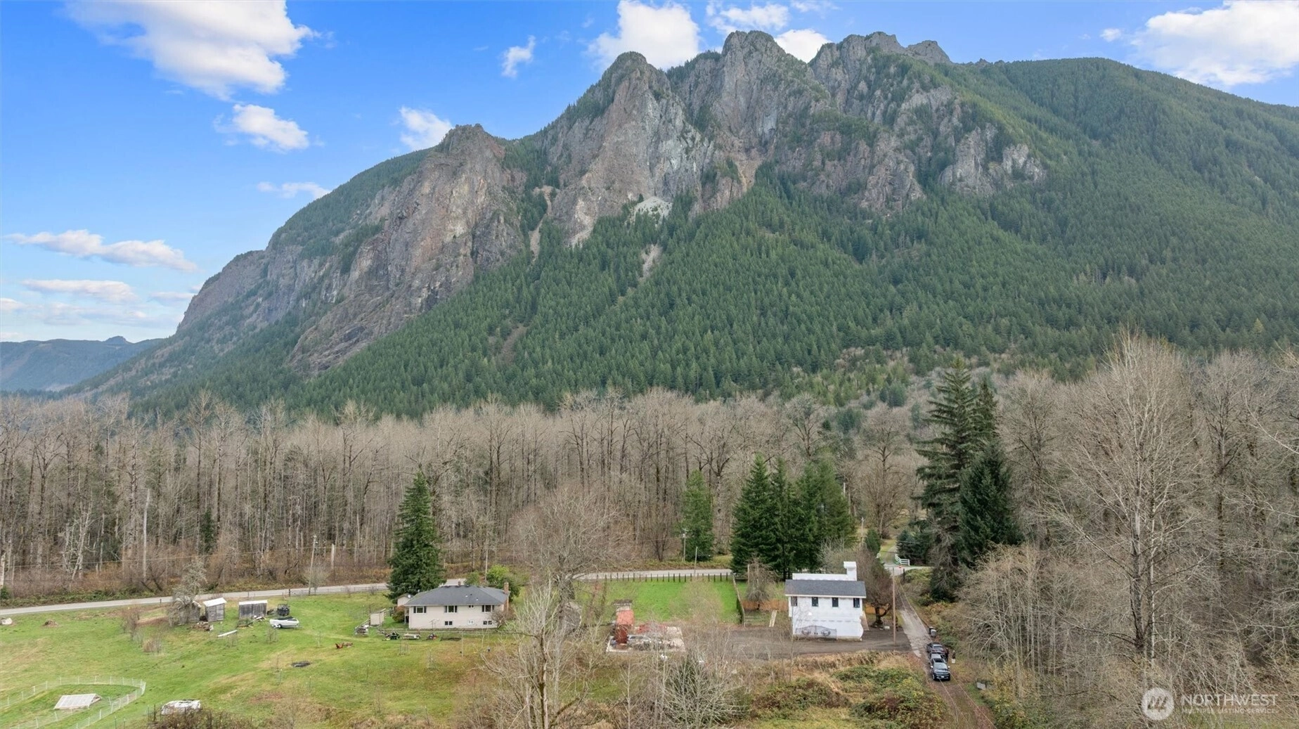 Incredible opportunity just outside North Bend with unobstructed Mt. Si views. This partially finished custom home sits on a full acre and is ready for your vision. Framing is complete with partial electrical, and the lower level is livable while you finish the upstairs. The planned layout includes 3 bedrooms and laundry up, with a main floor featuring an open kitchen, living room, mudroom, office, and bathroom with room for a sauna. A third-floor rooftop deck offers stunning mountain scenery. A drive-through garage and large concrete slab for a future shop add even more potential. No HOA and minutes to town and I-90.