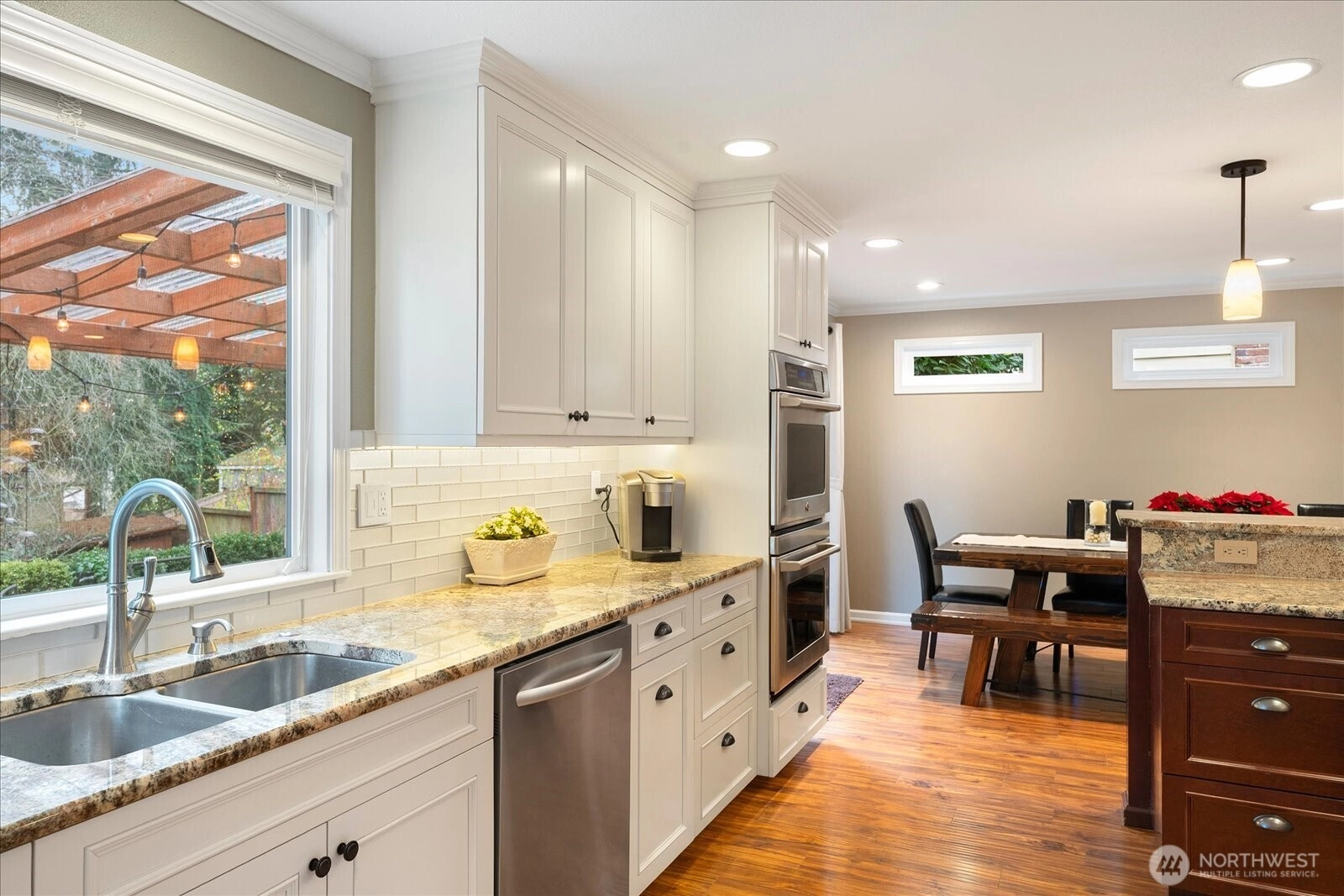 Immaculately cared for, pristine condition! Excellent floor plan with room for entertaining or a cozy night by the fire, this home has all the space you are looking for. Four bedrooms up in add. to a huge Rec Room, dreamy utility/craft room, updated bathrooms (w/heated flooring), and so much attention to detail. The lower level is the heart of the home, open concept, engineered hardwood flrs., dining rm, Chefs Kitch w/custom cabinetry, bar seating and breakfast nook, trendy barn door leads to the inviting family rm w/gas fireplace. Neighborhood amenities including Totem Lake Shopping center, freeway, & transit all just minutes from your front door. Kingsgate 3&4 pool/park incl in HOA dues. New Roof, gutters, carpet and deck. Perfect!