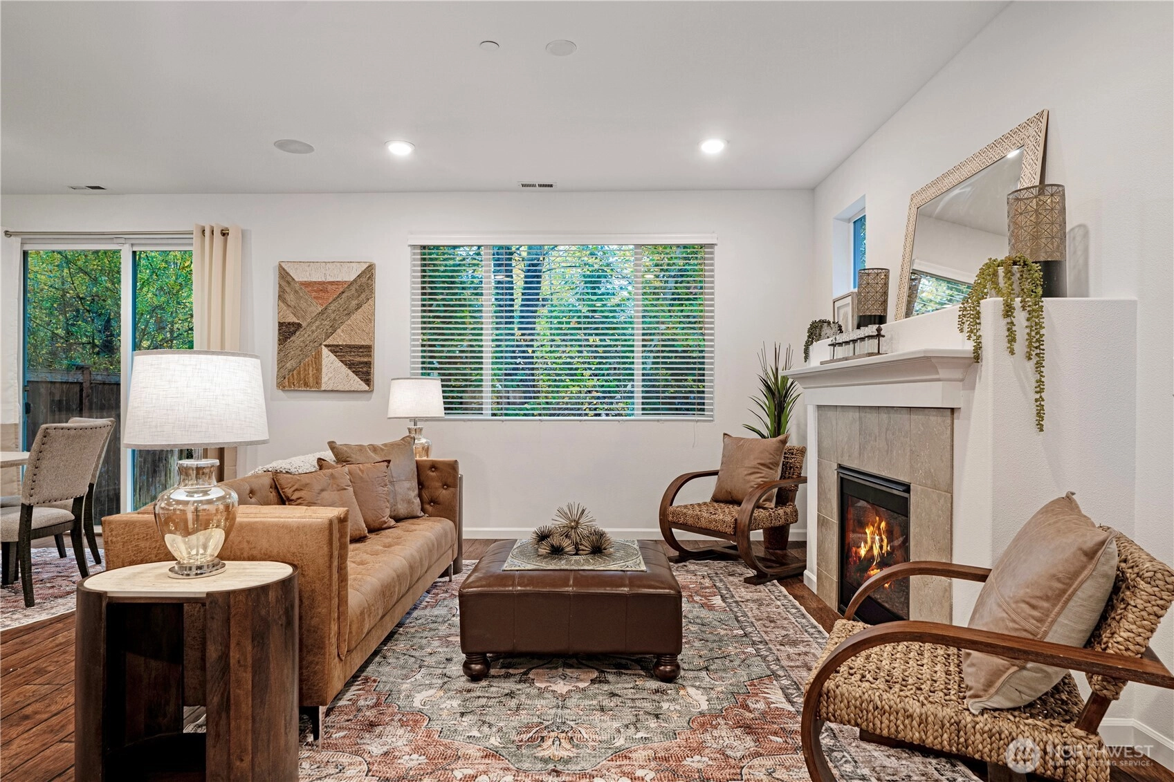 Charming, move-in ready home effortlessly blends a commuter’s dream with peaceful living. Walk to Whole Foods; Just blocks from Alderwood Mall, Costco, Light Rail Station; Quick access to I-5, I-405. This 3B 2.5B home situated next to lush greenery & trails to playground, offers many appealing features. Inviting entry opens to open-concept living space w/gourmet kitchen, featuring a large slab granite island, gas cooktop, pantry; Gas fireplace warms your winter; Enjoy year-round views from serene back patio; Main floor half bath. Upstairs, bright primary suite w/private 5-piece bath & generous closet; plus two bedrooms, full bath, and laundry. Attached 2-car garage. Heat pump provides efficient heating & AC. Inspected—Don’t miss this one!