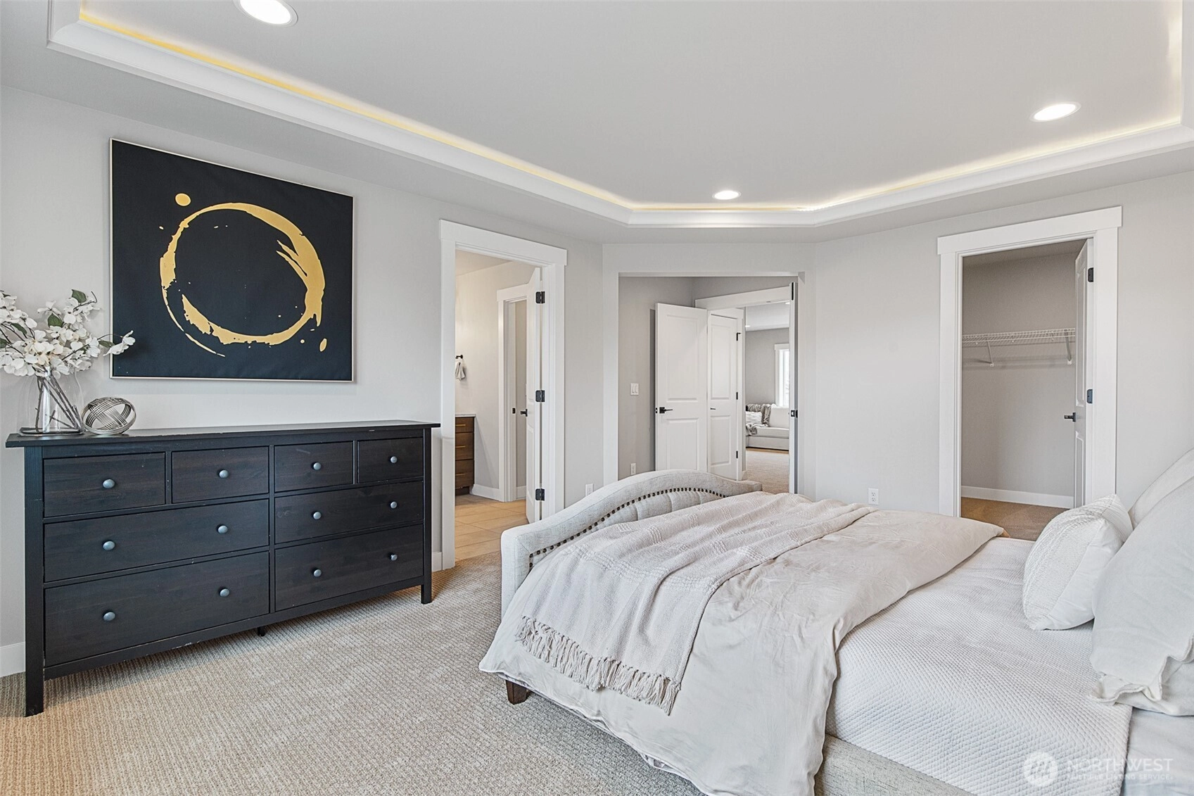 Multi-Gen Living! New home w/modern premium finishes by local award winning builder, JK Monarch. Prime location in Sumner-Bonney Lake Schl dist. Energy-efficient features include W/D, heatpump (A/C), hybrid wtr heater & EV charger pre-wire. Open-concept layout, 9’ ceilings, LVP flooring & modern linear fireplace, designer selected lighting. Gourmet kitc boasts 3cm quartz countertops, full-height tile backsplash, 36” soft-close shaker cabinets, premium Whirlpool appliances including 30” induction range & SS canopy hood. Leisure Loft, Primary offers lrg walk-in closet, ensuite w/freestanding tub, tiled shower & quartz counters. Enjoy Professionally landscaped front yard & spacious covered outdoor living & more. $20K Your Way Incentive.