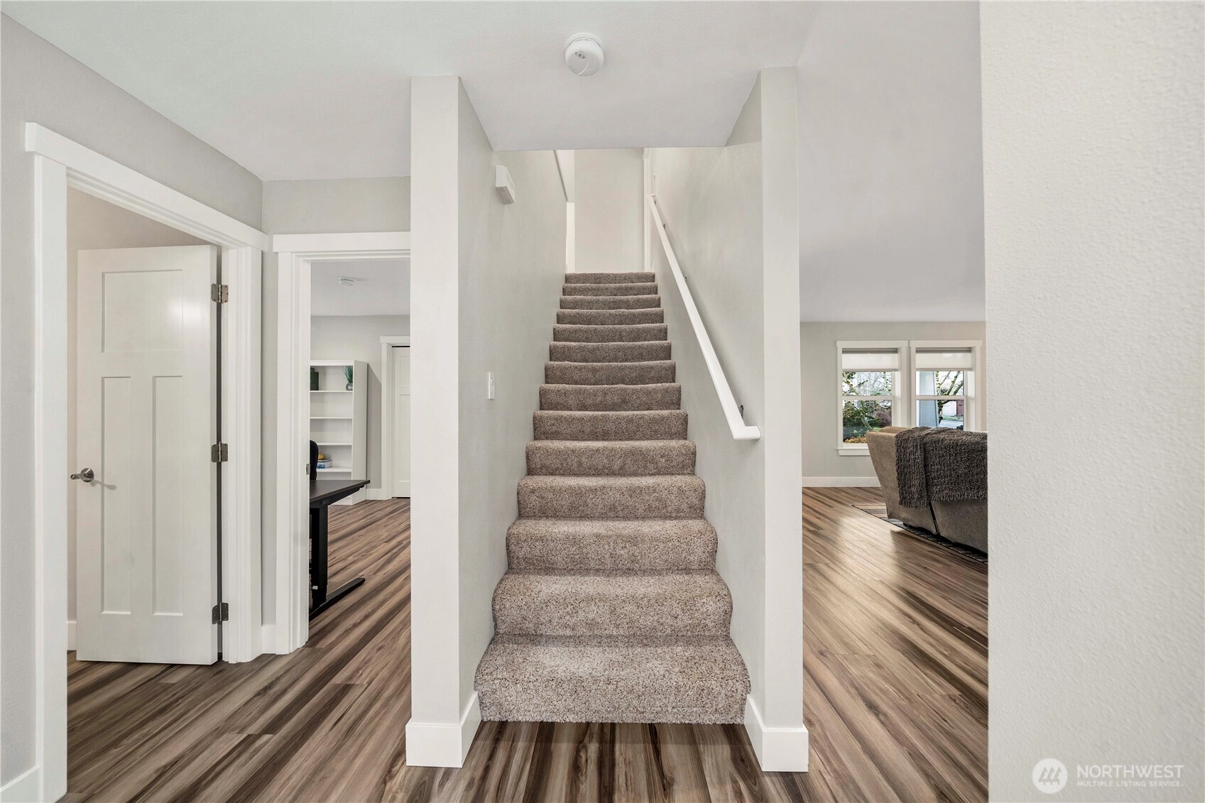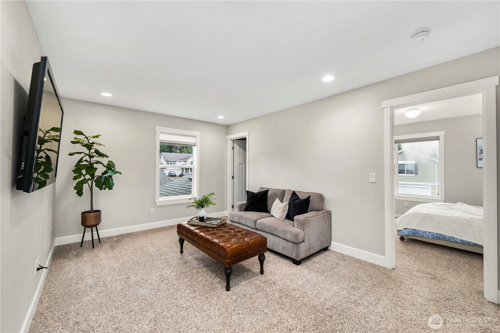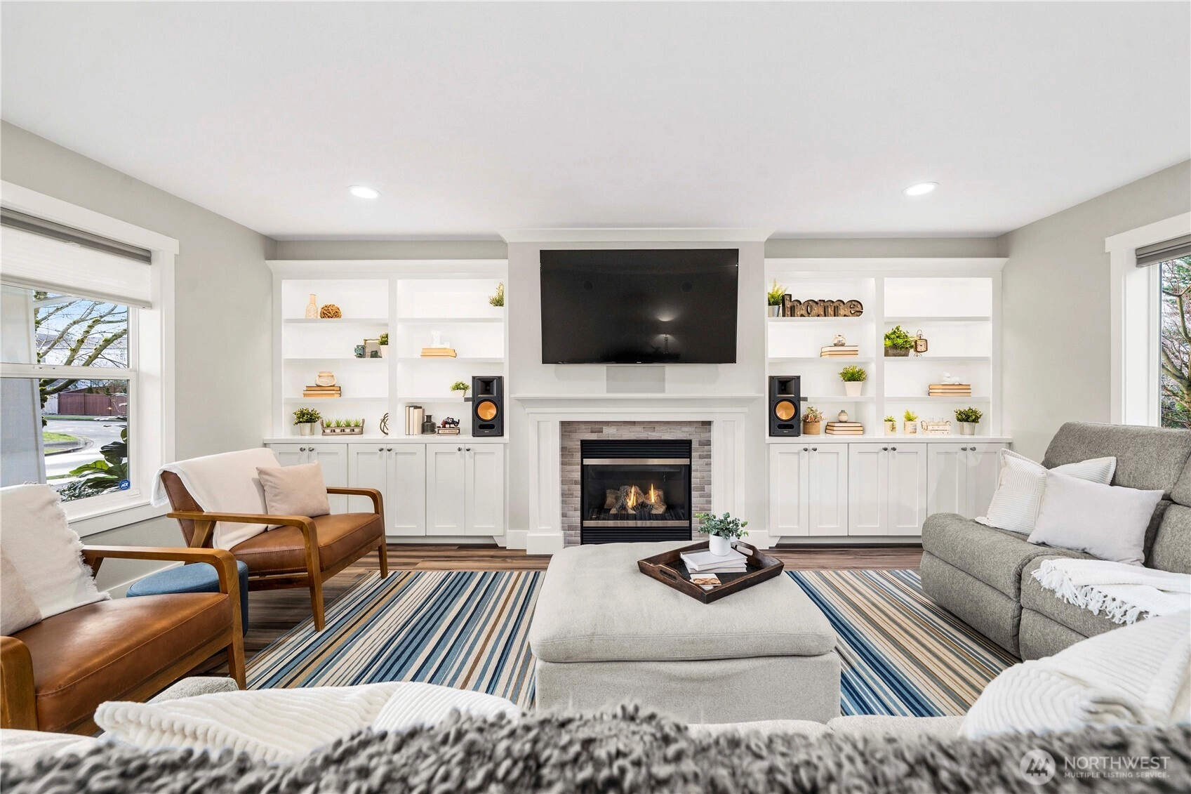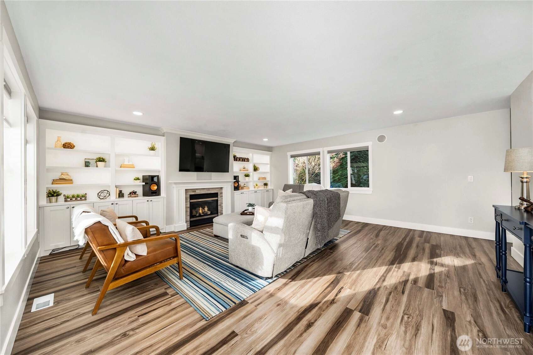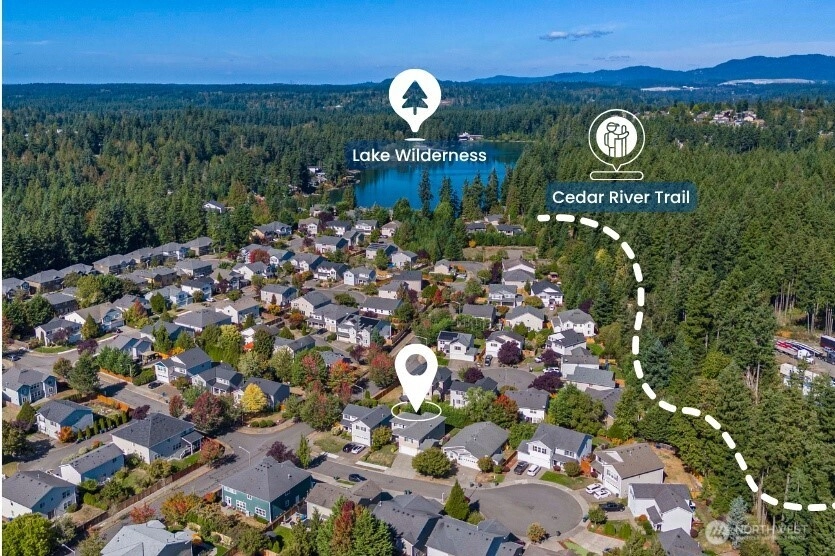 Welcome home to Katesridge! This well-kept retreat offers room to live and grow with 4 bedrooms, a bonus room, and 3 full baths, including a main-floor bed and bath. Great natural light keeps the main level bright, while the living room’s cozy gas fireplace and custom built-ins, speaker system and smart lighting make it a true gathering spot. The updated kitchen shines with quartz countertops and an easy flow to the private backyard. Updated baths and LVP flooring add everyday comfort. Outside, enjoy a fully fenced yard, raised beds, Wi-Fi sprinklers, dog run, and an extended patio with firepit area, all tucked on a quiet cul-de-sac. EV-ready 3-car garage. Quick trail access to Lake Wilderness, with parks, schools, and amenities steps away.