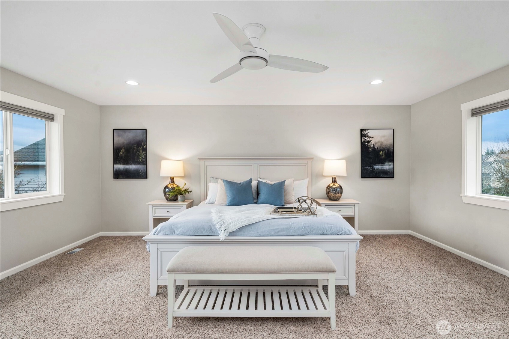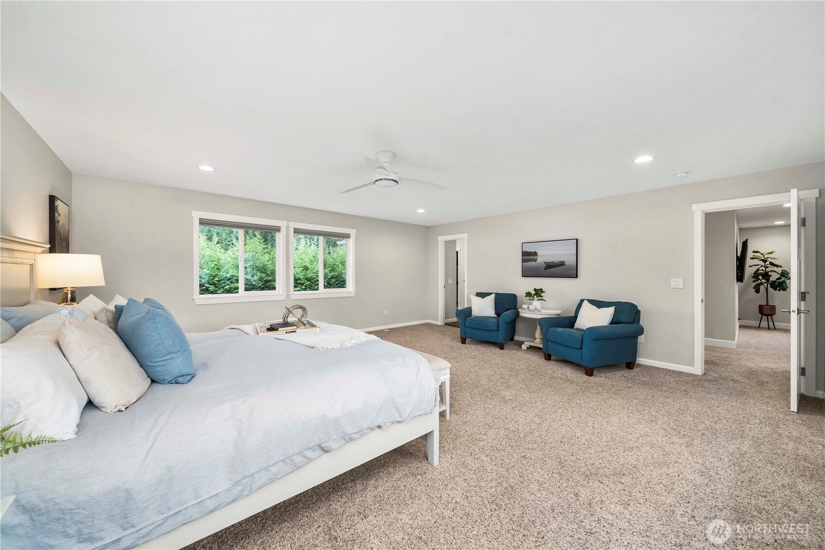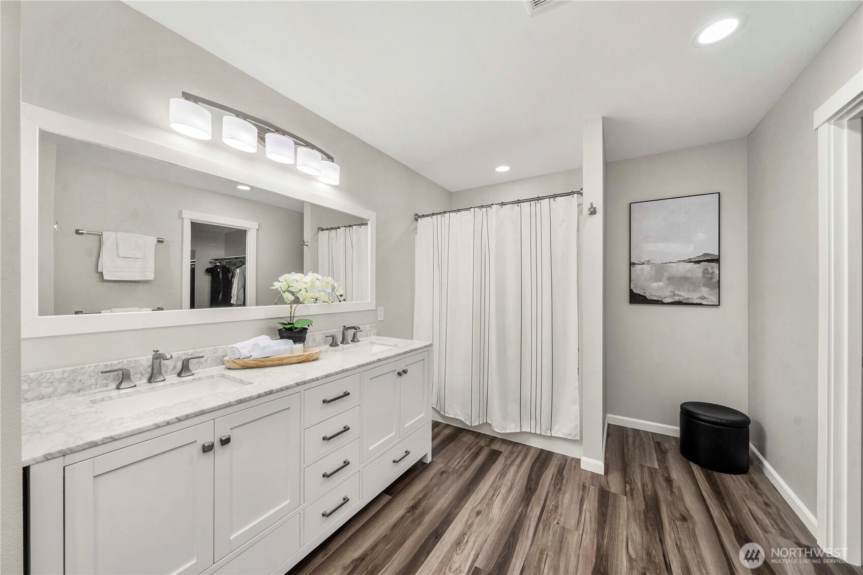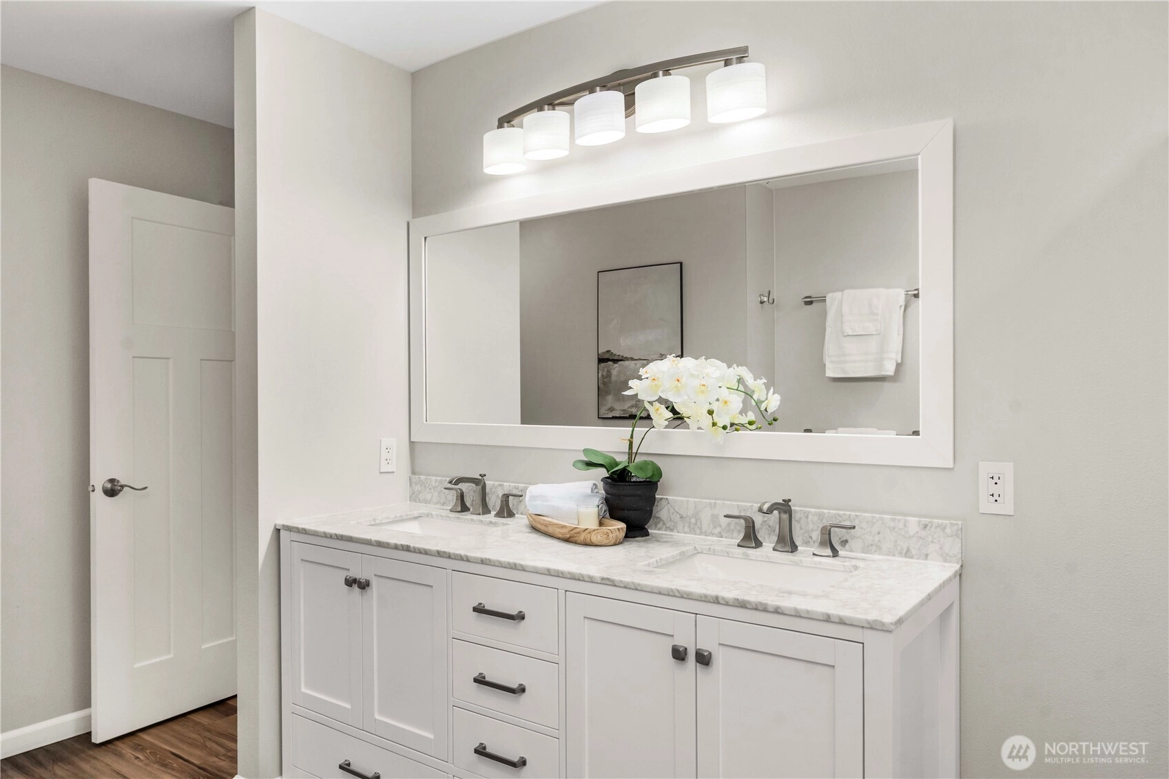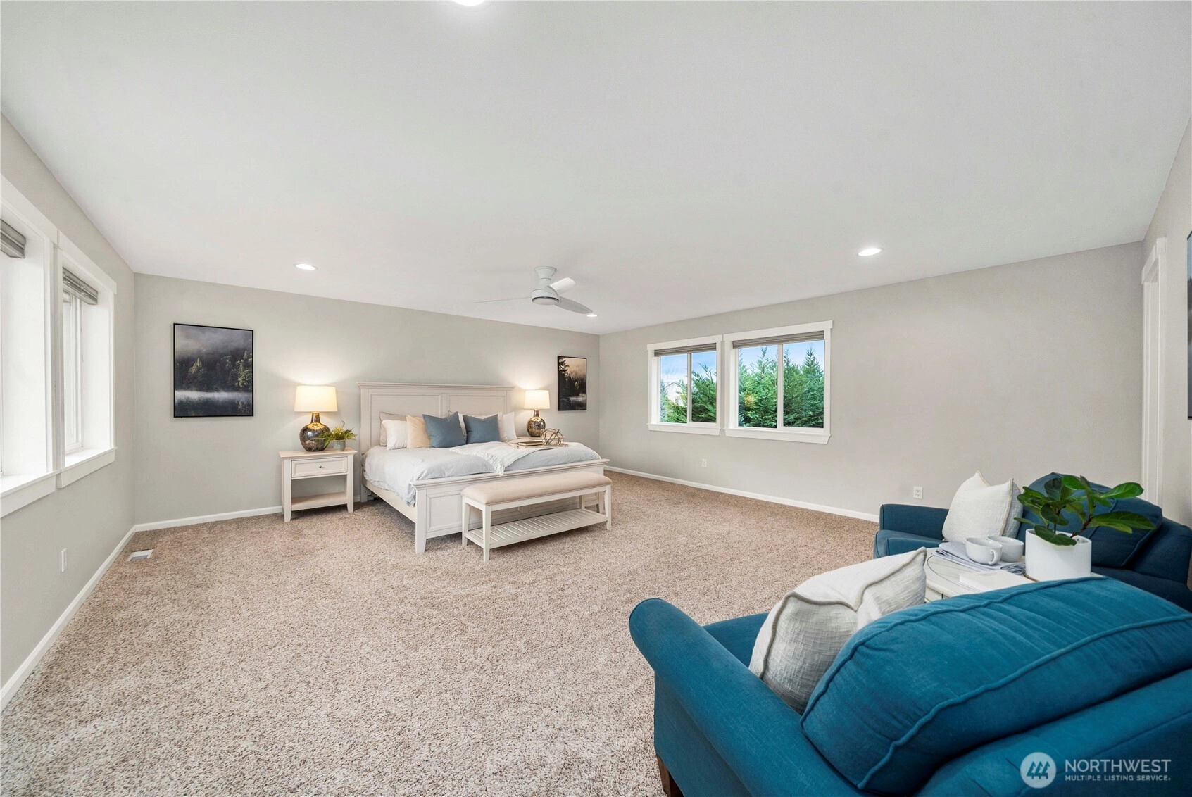 Welcome home to Katesridge! This well-kept retreat offers room to live and grow with 4 bedrooms, a bonus room, and 3 full baths, including a main-floor bed and bath. Great natural light keeps the main level bright, while the living room’s cozy gas fireplace and custom built-ins, speaker system and smart lighting make it a true gathering spot. The updated kitchen shines with quartz countertops and an easy flow to the private backyard. Updated baths and LVP flooring add everyday comfort. Outside, enjoy a fully fenced yard, raised beds, Wi-Fi sprinklers, dog run, and an extended patio with firepit area, all tucked on a quiet cul-de-sac. EV-ready 3-car garage. Quick trail access to Lake Wilderness, with parks, schools, and amenities steps away.