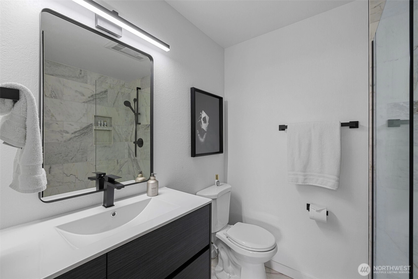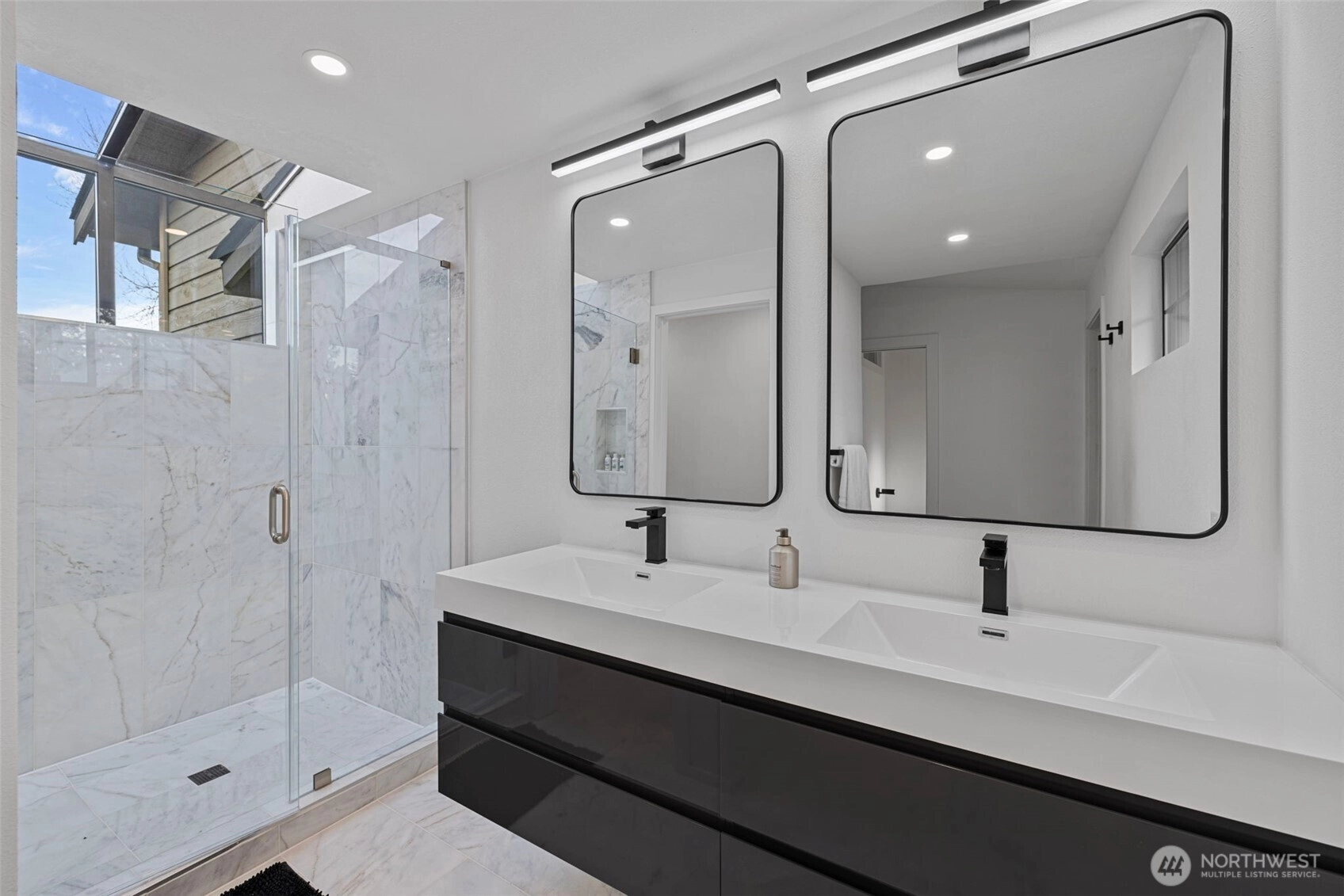 Discover stunning water views and sophisticated modern finishes in this lakefront condo in Lake Stevens, featuring two luxurious owner’s suites and the flexibility of upper and lower living rooms. Just a short stroll from Old Lake Stevens, this home offers a lifestyle as serene as its surroundings—enjoy morning coffee on the rear deck while watching the resident eagles nest, then launch a paddleboard from the quiet cove for a peaceful glide on the lake. Thoughtfully remodeled from top to bottom, the spa-inspired bathrooms showcase Carrera marble that beautifully complements the elegant fireplace. Exterior updates include fresh paint completed in 2025, ensuring this home is as turnkey as it is inviting.