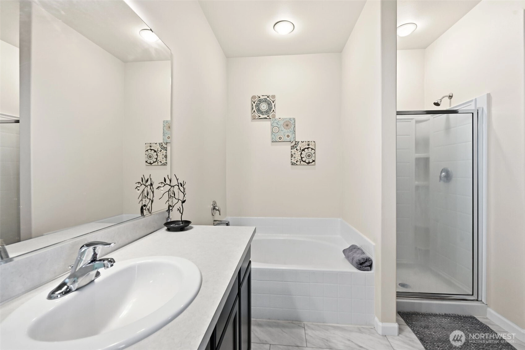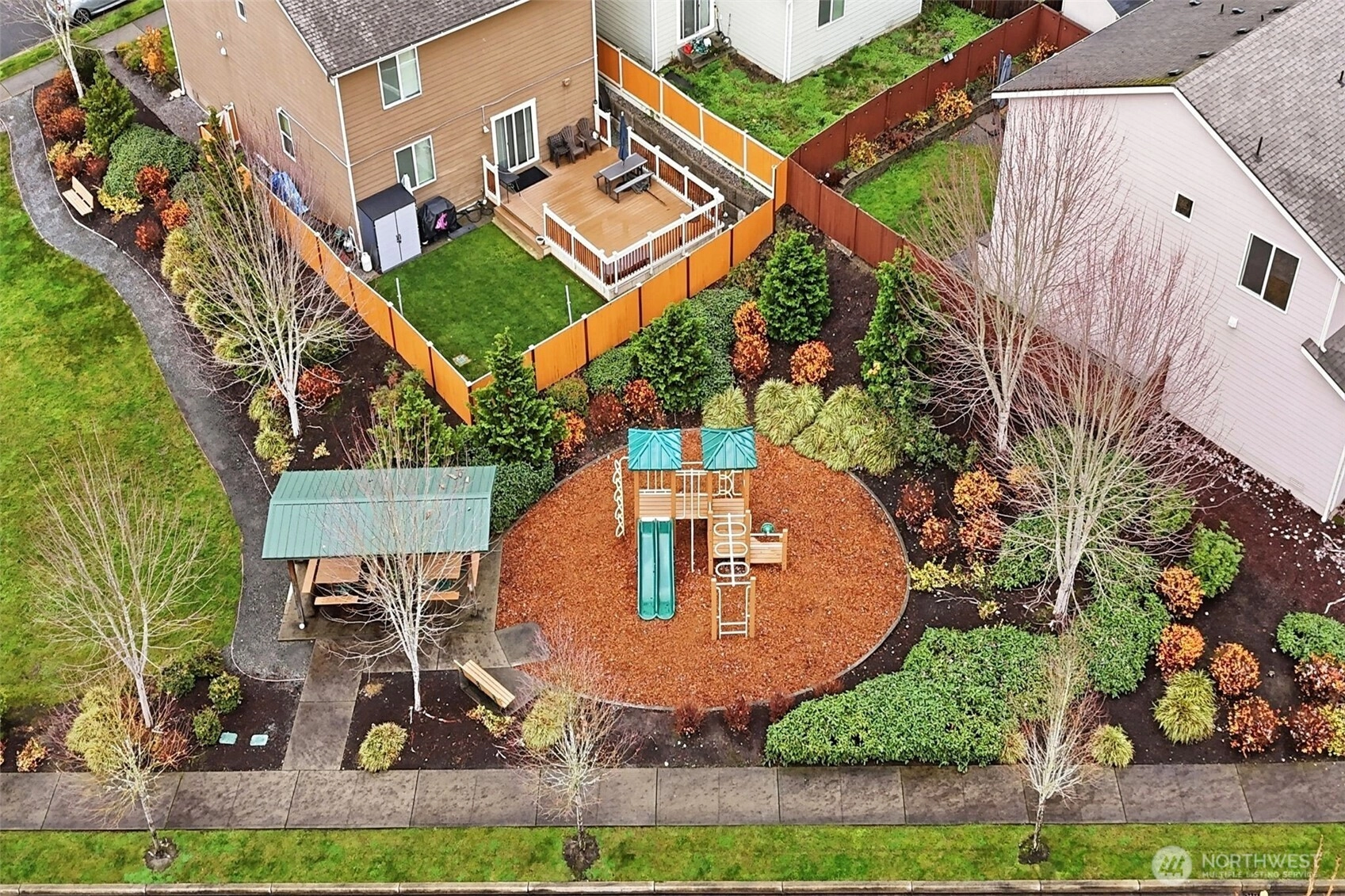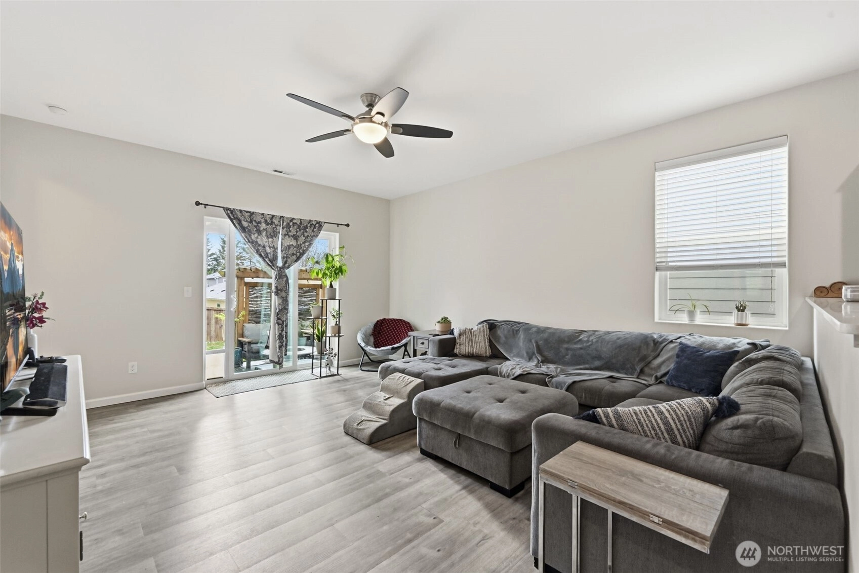 This home in Gregory Park has been impeccably maintained and is move-in ready. Featuring an open floor plan with vaulted ceilings, energy efficient appliances, spacious countertops and ample storage in the Kitchen. The primary bedroom is complete with a private full bathroom and large walk-in closet. The backyard is fully fenced and was professionally landscaped in 2021 adding a custom-built retaining wall to level the yard and create a quaint garden space. A beautiful pergola adds privacy and charm to the patio area, inviting you to gather and relax. In April 2025 the interior was freshly painted, and a forced air heat pump was installed keeping this home cool and comfortable in the summer months. Minutes from Hwy 9, I-5 and town center.
