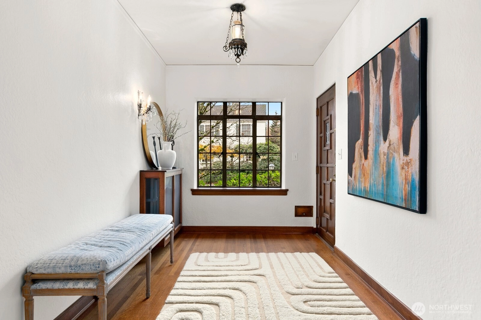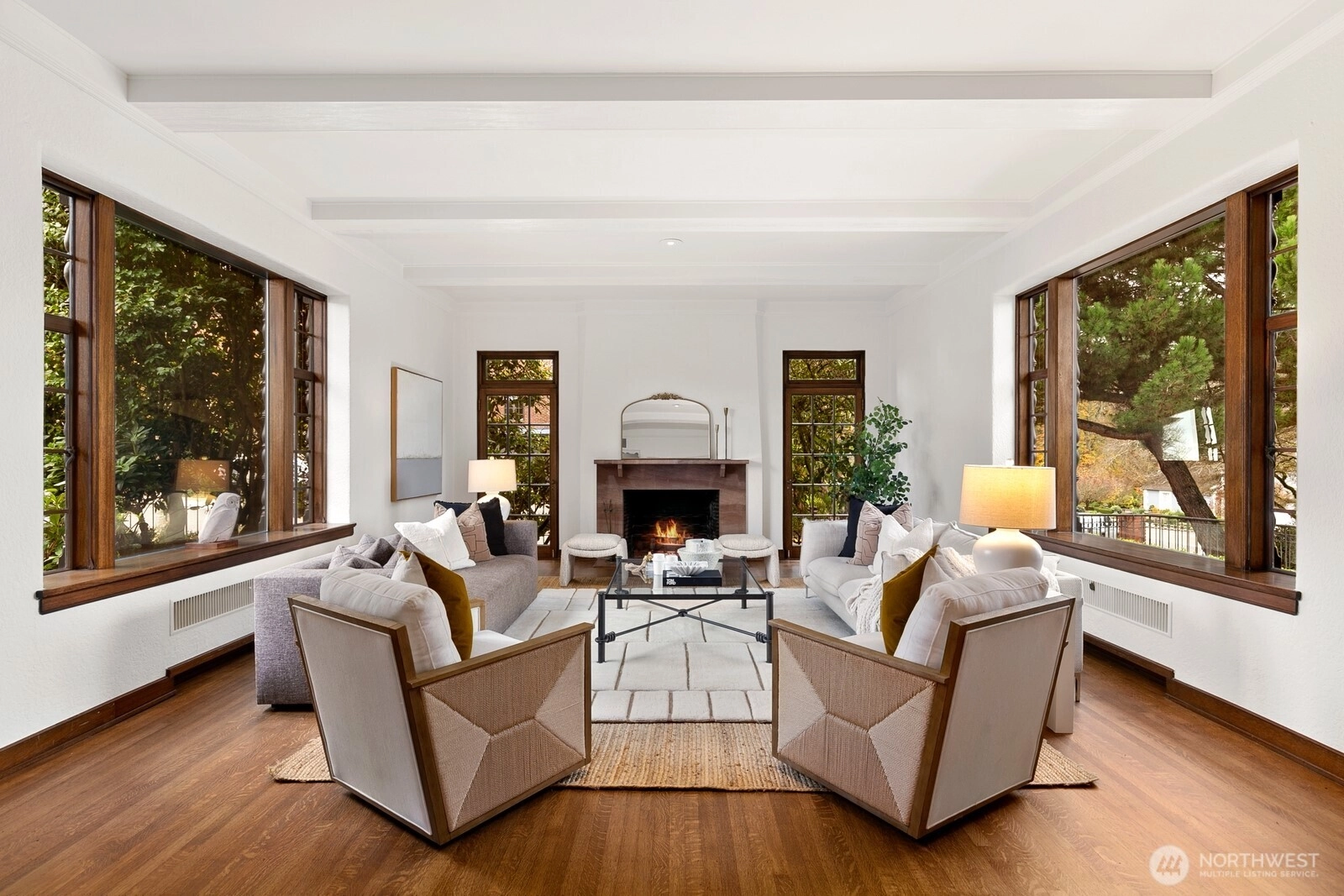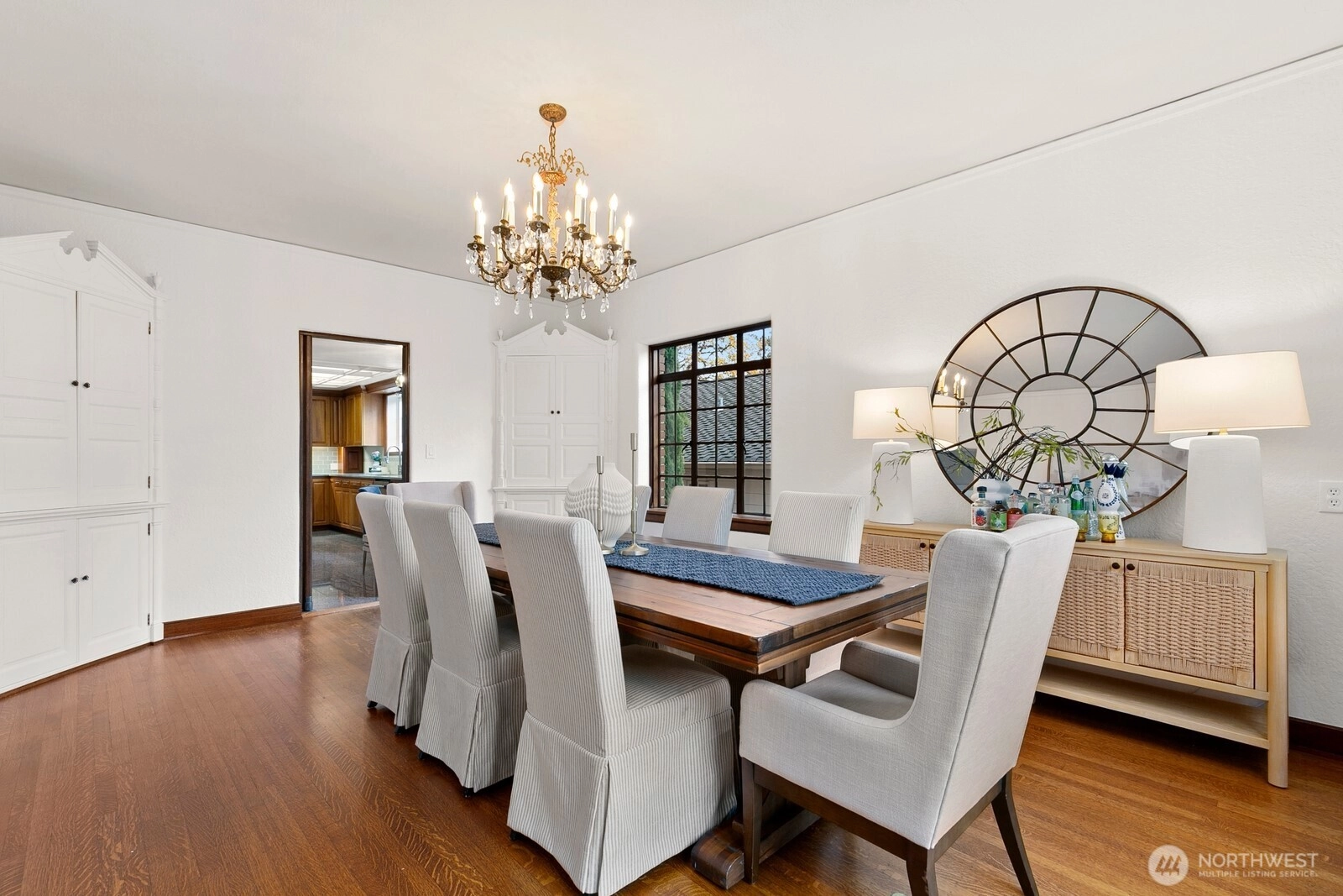 Discover the timeless elegance of this 1928 Tudor grande dame in Broadmoor's exclusive gated community. Step inside to experience the warmth of Siberian Oak floors throughout, leading to an elegant iron and oak staircase that serves as a stunning focal point. The inviting ambience is enhanced by a beautifully crafted leaded glass oriel window that bathes the space in natural light. The main level boasts a large living sunken room and dining room enhanced by a crystal chandelier. home office with a charming Tudor balcony overlooking the gardens. Gorgeous oak doors and detailed woodwork reflect the craftsmanship of the era, while the exterior showcases a captivating mix of brick and slate. Experience the allure of this architectural gem!