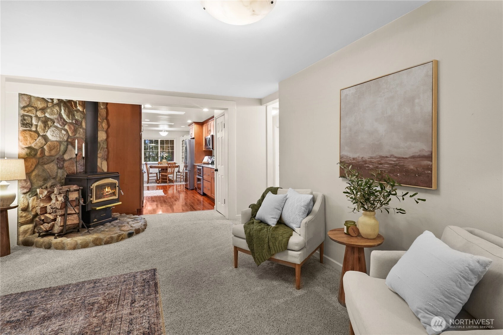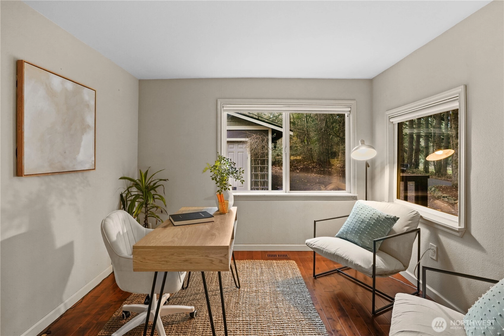 Nestled on 1.7 acres across two private lots, this charming, well-maintained home has been lovingly cared for by the same owner for 30 years. Enjoy thoughtful updates, a large functional kitchen, a home office, and two spacious bedrooms opening to a deck overlooking the property. A cozy wood-burning fireplace and AC provide year-round comfort. Outside features include a large back deck, covered front porch, wood shed, and detached garage with shop and covered tractor/toy space. The fully fenced yard offers ample room for a garden. Quiet, secluded, and a short walk to the beach, yet close to Gig Harbor and Key Center amenities. It is the perfect place to call Home.
