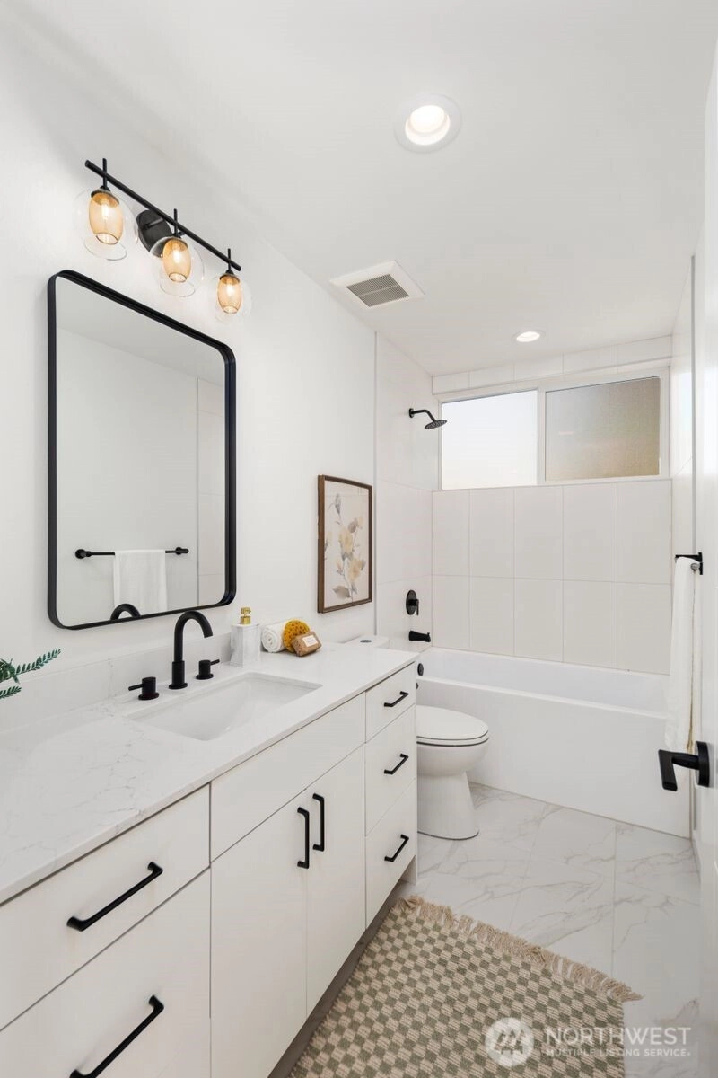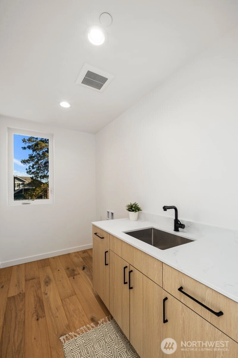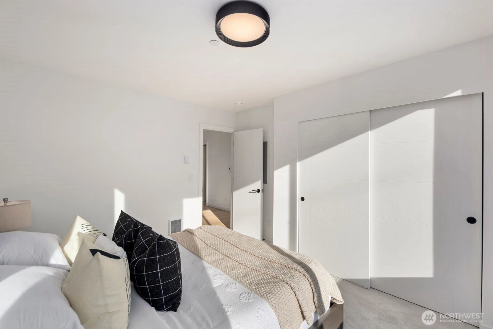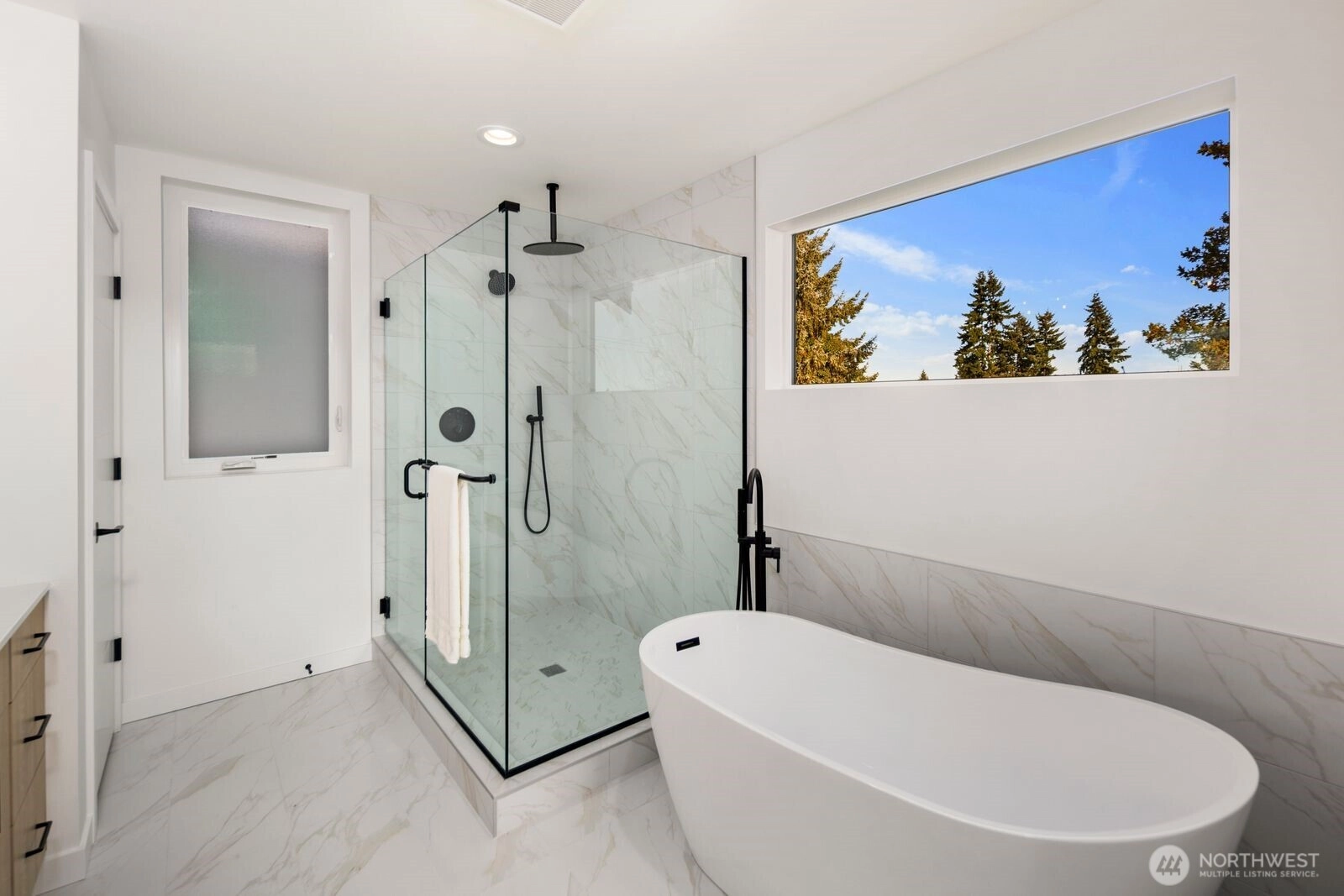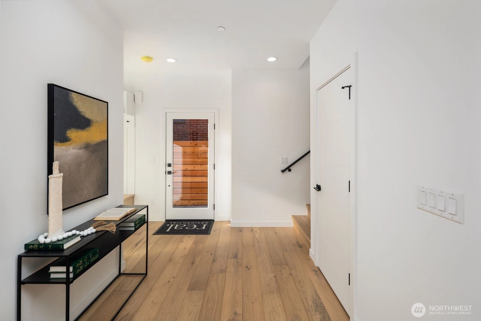 Uniquely tailored for the lifestyle centered around Green Lake and Phinney Ridge, this home offers a gracious floorplan with four bedrooms and elevated design throughout. The centerpiece kitchen features a walk-in pantry, coffee bar, additional beverage storage and more. The primary suite glows with southwest light and includes a deluxe en-suite bath with a walk-in shower, and heated floors. Three additional upper-level bedrooms are complemented by a full detailed bath and an upper-level laundry with a prep sink. Ascend to the rooftop deck for sweeping territorial vistas and a stunning view of Mount Rainier. Off-street parking is EV-ready. Just a short walk to the Green Lake loop, Woodland Park, Phinney Ridge shops, and more.