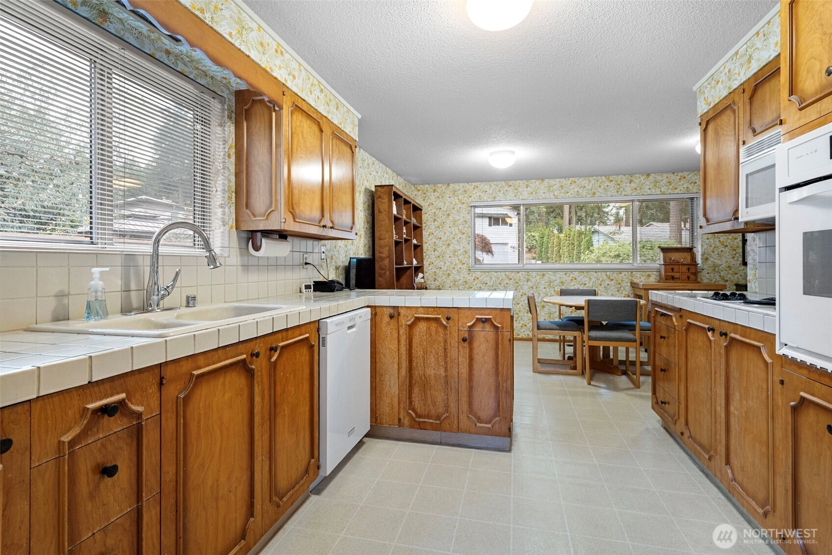 Classic Fircrest brick split-level home on incredible, OVERSIZED, well-maintained lot. Captured vintage charm w systems that have been fondly & meticulously taken care of. 2 generous sized bedrooms on the upper level, 1 w an en suite bath. Large, eat in kitchen w pantry space & wet bar. Downstairs, 2 addt'l bedrooms, laundry/utility room, living space & HUGE rec space! Walk out to one of the largest backyards in Fircrest. Mature landscaping, beautiful fir trees, fully fenced. Lifetime roof product, new gutters w lifetime warranty, new furnace & water heater, & updated plumbing. Close to heart of Fircrest & all that it offers: Fircrest Park, new Community Center, Whittier Elementary w play fields & pickleball courts, Golf Course, & Tot Lot!