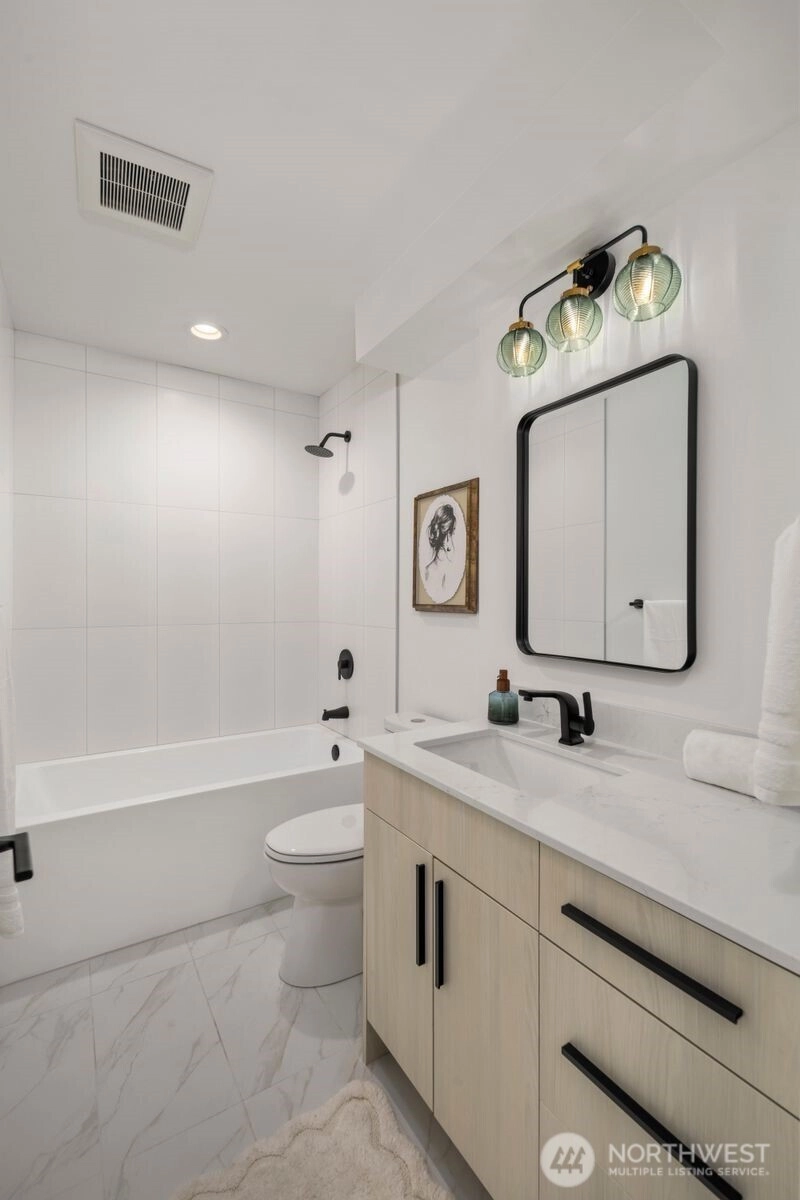 Greenway Homes presents three new homes all lifestyle centered around Green Lake and Phinney Ridge, this home offers a gracious floorplan with two bedrooms and elevated design throughout. An open kitchen and living level with ample storage and space to entertain. The primary suite glows with southwest light and includes a deluxe en-suite bath with a walk-in shower, and heated floors. Main level full bathroom also with heated floors, bedroom and utility closet. Ascend to the rooftop deck for sweeping territorial vistas and a stunning view of Mount Rainier. Off-street parking is EV-ready. Just a short walk to the Green Lake loop, Woodland Park, Phinney Ridge shops, and more.