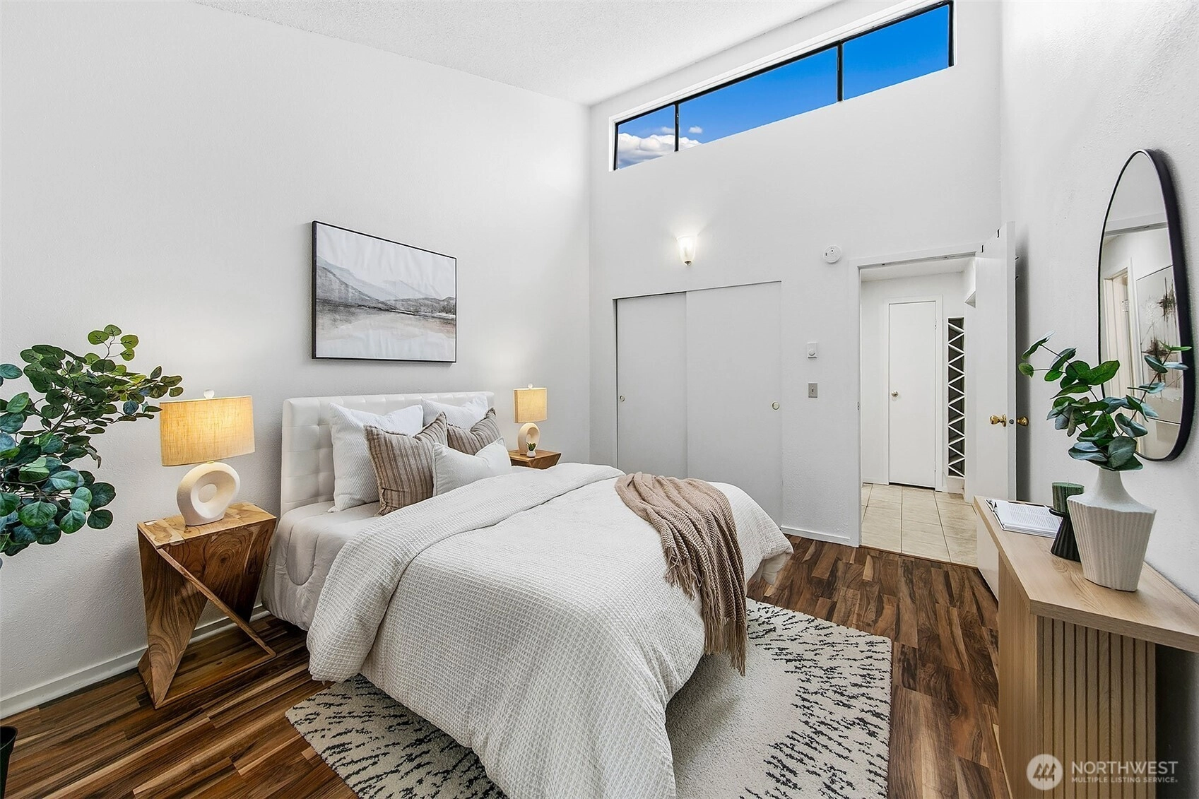 Welcome to Sixty-01! Top floor 1 bed 1 bath condo with vaulted ceilings, open kitchen and open living space. Assigned covered parking space with extra parking for guests, and convenient access to main road. Enjoy all resort style amenities including community clubhouse, fitness center, sauna, billiards room, tennis & volleyball courts, 4 swimming pools, 3 lakes, 83 acres of trails/parks, and gated entry. Minutes to Microsoft, Google, Meta offices and highway 405 & 520. No rental cap! Seller is a licensed real estate broker.