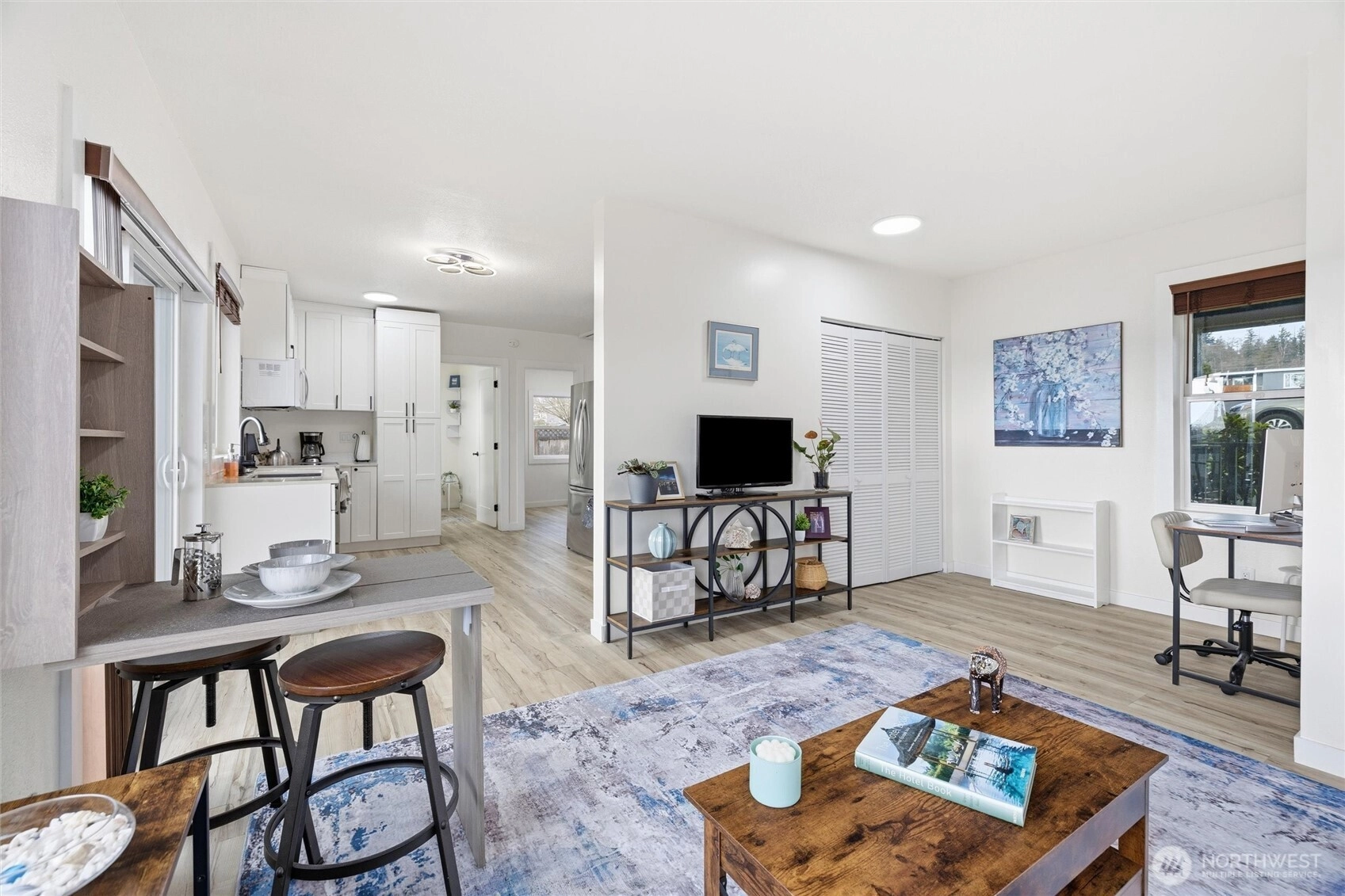 Completely renovated from top to bottom, this 2-bed, 2-bath home offers modern comfort in a quiet neighborhood with stunning water views. Enjoy peace of mind with all-new plumbing, updated siding with fresh exterior paint, a brand-new deck, LVP flooring, new lighting, and excellent insulation throughout. The redesigned kitchen features quartz countertops, soft-close cabinetry, a dishwasher, a garbage disposal, and a washer/dryer combo for convenience. Newer mini-split system offering efficient heating and AC. Outside has an impressive collection of fruit trees—apple, plum, and cherry—plus raspberries, blackberries, and rhubarb for your own backyard harvest. A truly move-in-ready home with thoughtful upgrades and picturesque surroundings.