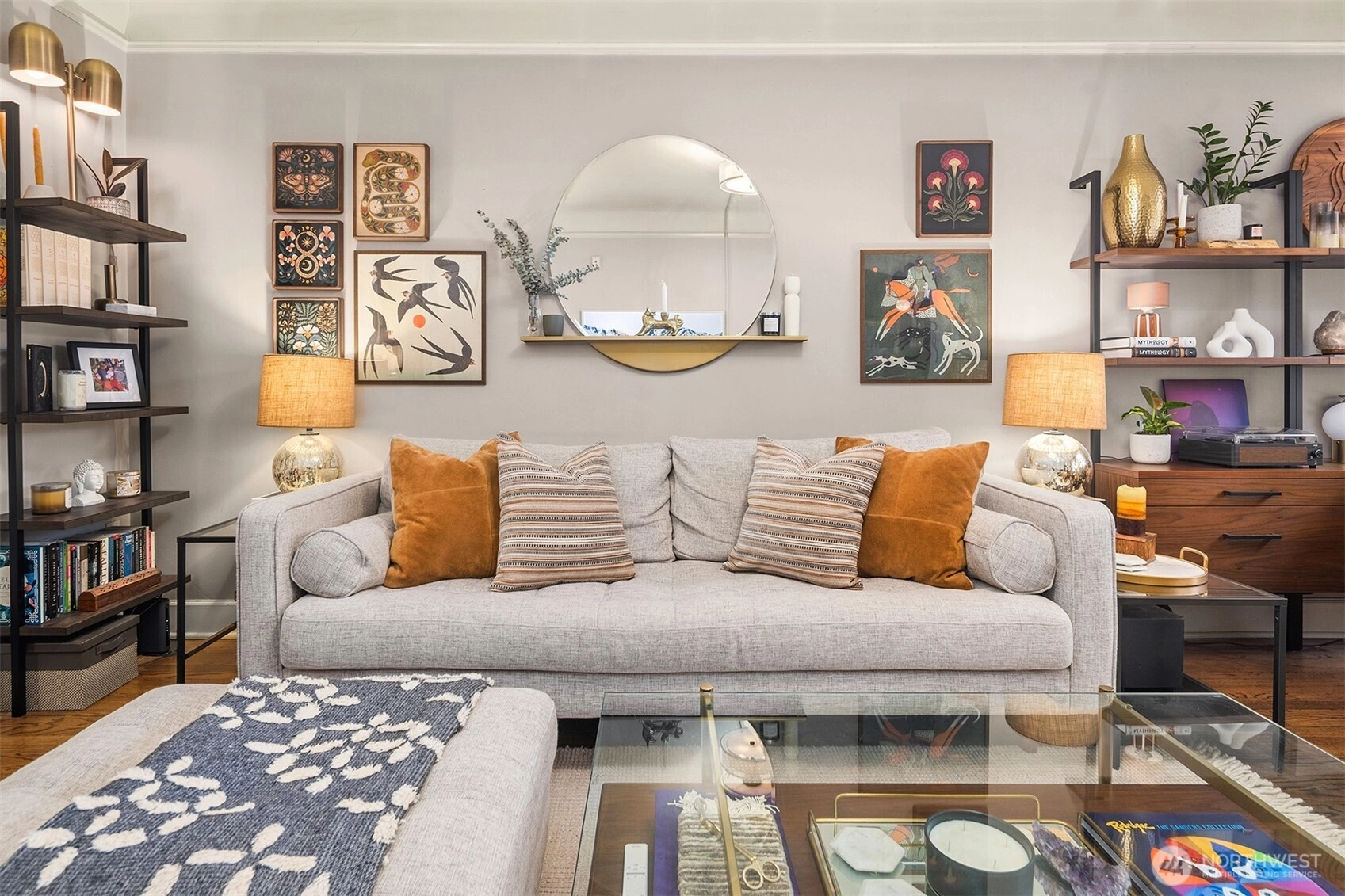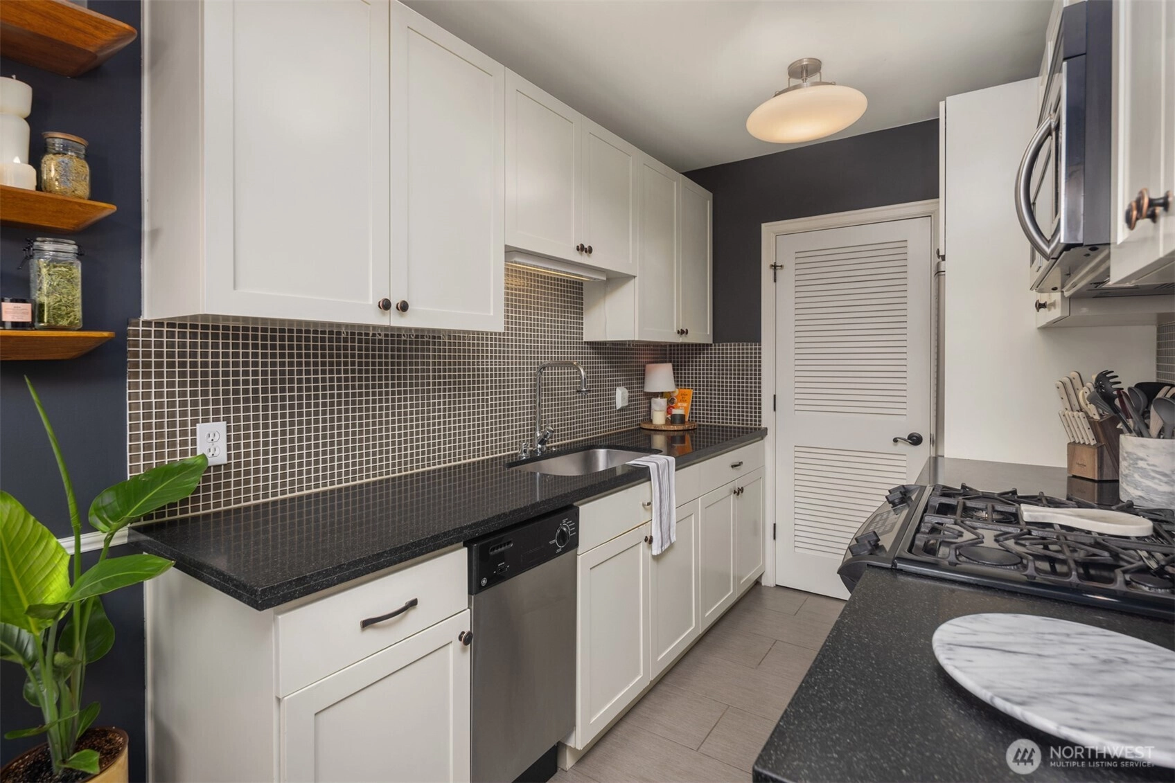 Ever so gorgeous, discover the De Lorges ~ In the heart of Broadway on Capitol Hill, this alluring 1928 art deco showpiece dazzles with intricate limestone details, elegant period lighting & charming ivy accents. Fully renovated in 2008, the building exudes vintage charm & historical integrity while enjoying the comforts & longevity of modern system upgrades. Grand lobby & exquisite halls complete with a Bostwick gated elevator. Brilliant open bedroom layout lives large with timeless style. Coved ceilings, arched doorways, lofty windows, rich hardwoods, ornate millwork, antique hardware & full bath with original hex tile floor. Granite & shaker kitchen with glass tile backsplash, gas range, dining nook & laundry closet + bonus storage room!