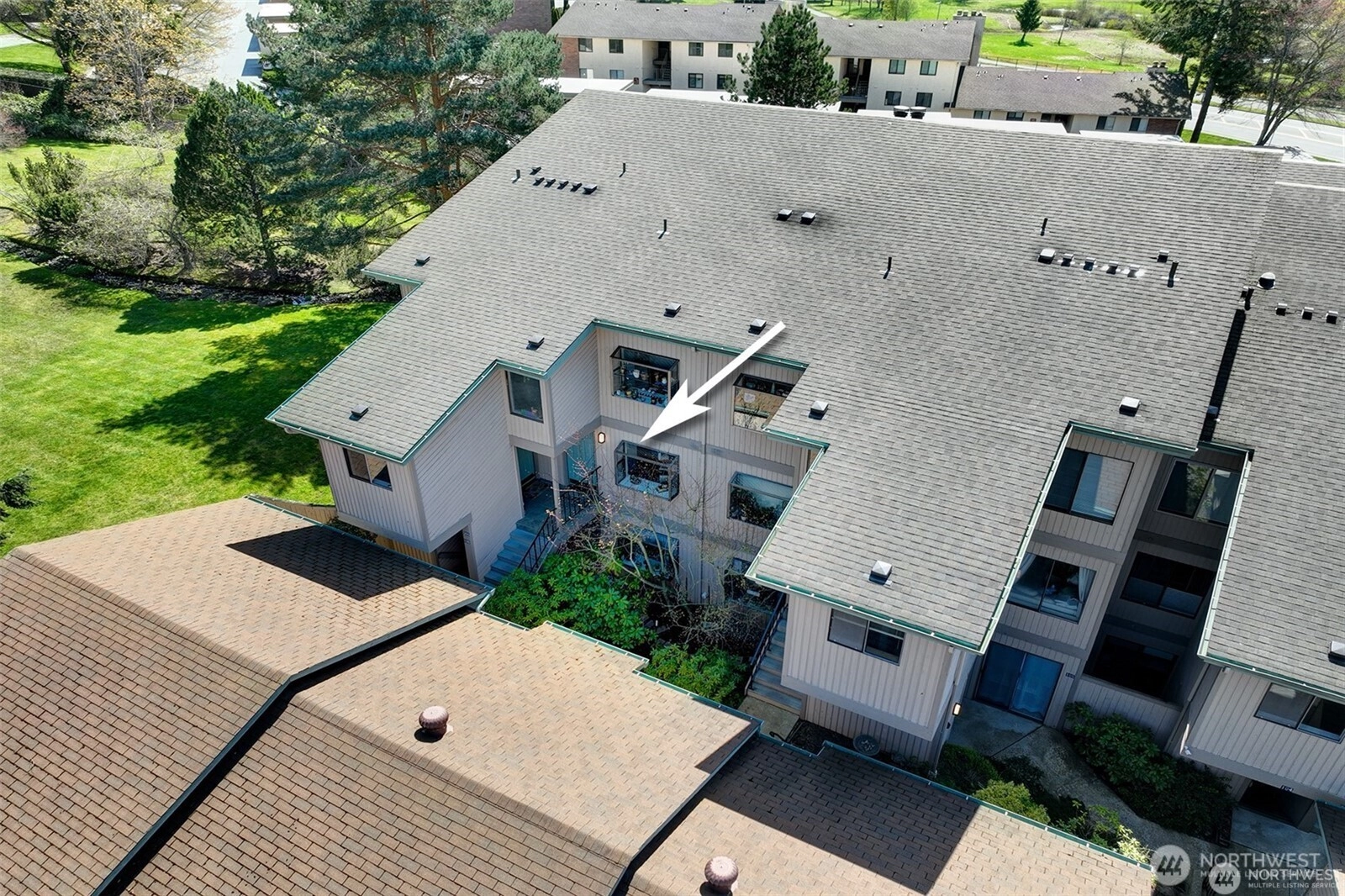 Resort-style living at Ballinger Point Condominiums, where peaceful trails and beautifully kept grounds create a daily sense of escape. Designer remodel of this 1,092 SF 2-bed, 2-bath home features a stylish kitchen, modern baths, high-end flooring, and in-unit laundry. The elegant step-down living room with fireplace opens to a covered deck ideal for slow mornings or quiet evenings. Natural light abounds. Excellent storage, including deck storage & a 231 SF garage. Set in a 4-acre park-like setting with ample guest parking. Quiet yet convenient near the Light Rail, I-5, & parks. Includes a private garage plus a dedicated off-street parking space & access to a pool, clubhouse, exercise room, & tennis court.