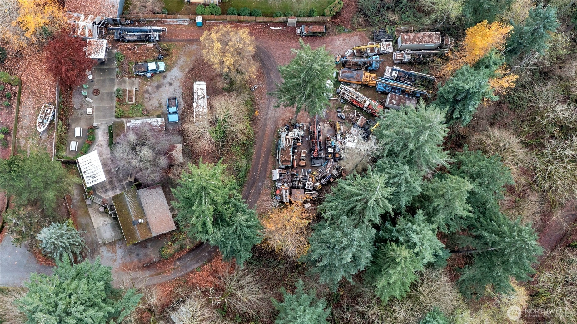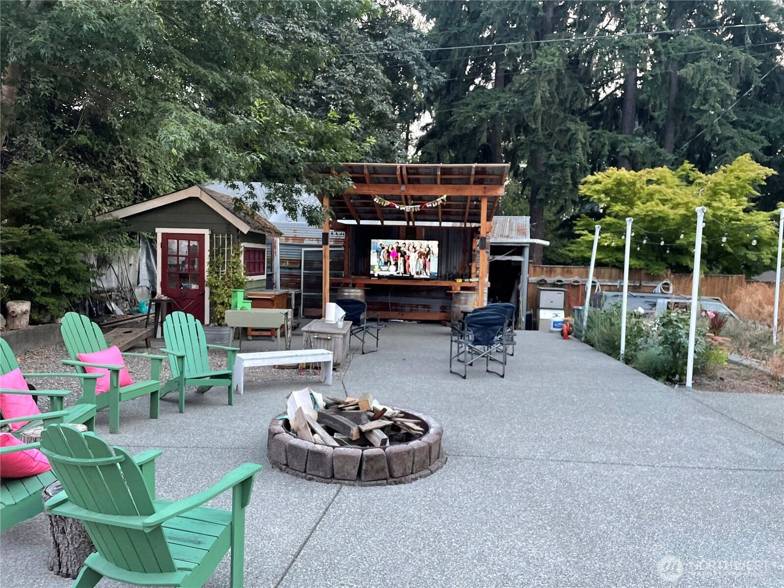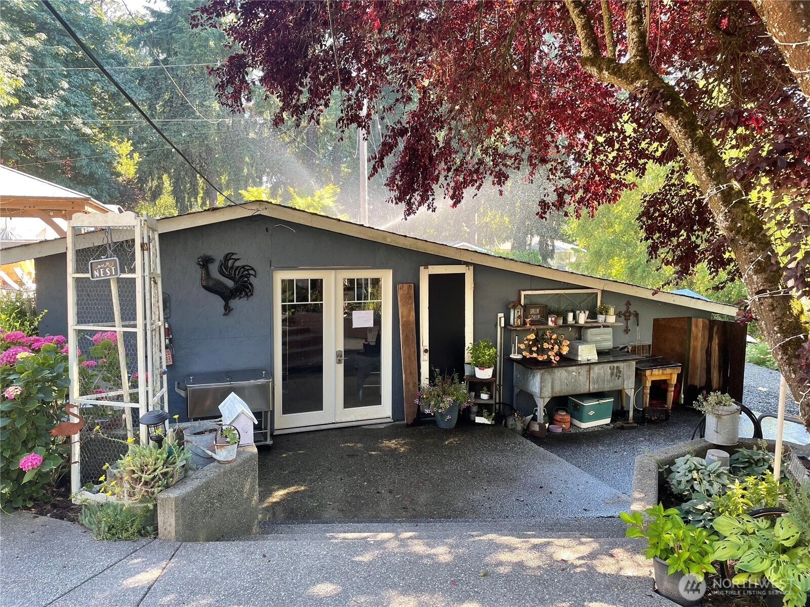 You will love this charming cottage-style home set on a private, rustic 1.5-acre lot at the end of a quiet street in a beautiful neighborhood. This 2-bedroom, 1.75-bath retreat features a spacious kitchen with eating area, a lower-sunken living room with a cozy wood-burning fireplace insert, and a generously sized primary bedroom. Just steps from the home is a fantastic outbuilding—perfect for an office, hobby or game room—connected by an expansive stamped-concrete patio, ideal for entertaining. The property offers potential for subdivision or redevelopment (buyer to verify). Seller in the process of removing vehicles and equipment. Over $50,000 invested in grounds improvements. Roofs will likely need replacement. So much potential here!