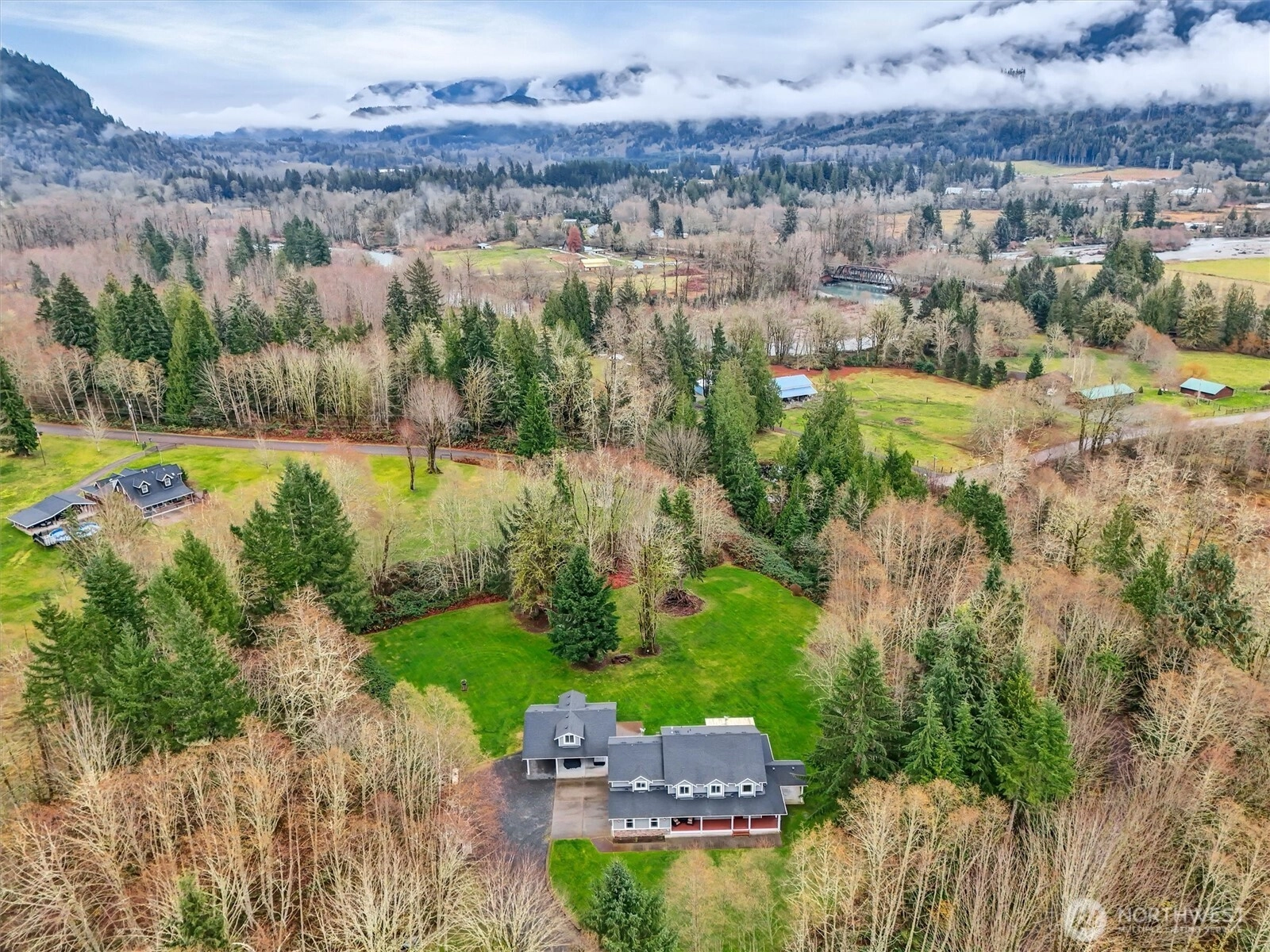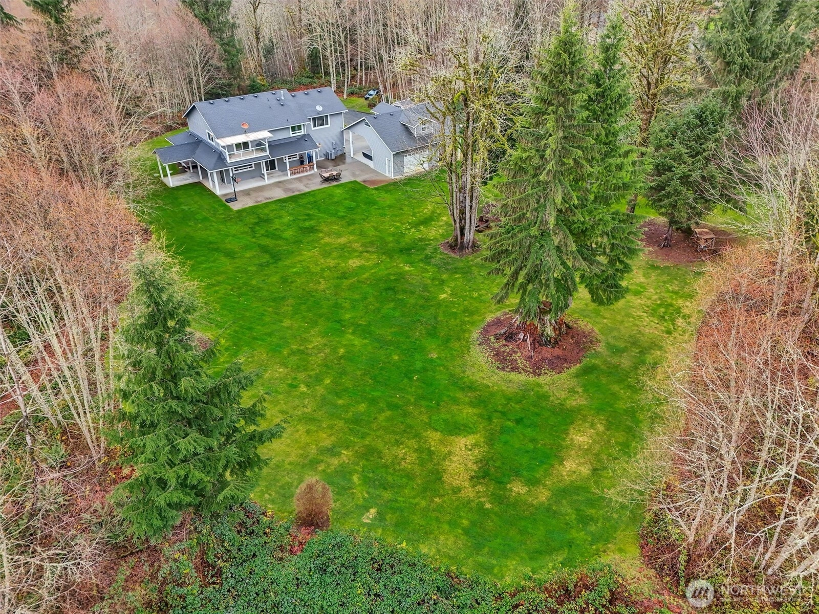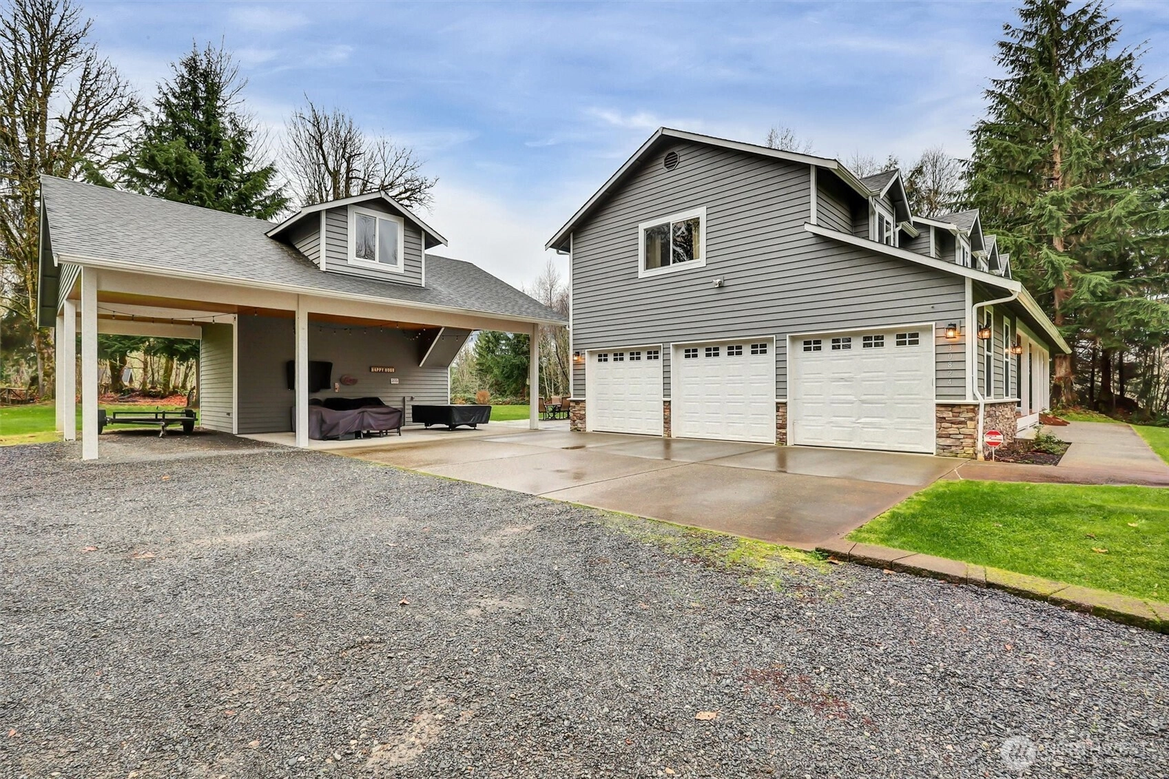 [PEACEFUL + PNW PERFECT] Wide lawns, covered porches and sweeping acreage set the tone for this welcoming 10+ acre retreat. Inside, the open kitchen flows into a BRIGHT living room with large windows framing your private surroundings, plus a dining room and spacious utility room. Upstairs are three bedrooms and HUGE bonus room with HOME THEATER that stays. Enjoy covered outdoor spaces, an attached 3-car garage + a detached workshop with storage above + carport. Quiet, scenic and comfortably connected. [ROOM TO ROAM]
