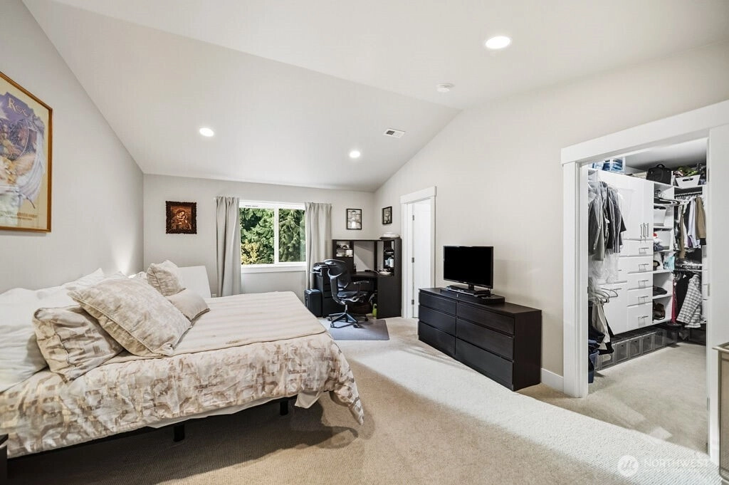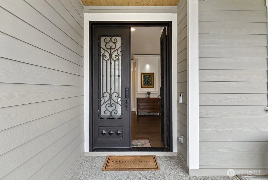 Welcome to Chelsea Park, one of Gig Harbor's premier neighborhoods. This elegant home blends timeless architectural details with modern comfort and convenience. 8-foot iron doors lead into a large foyer adorned with crown molding, accent cove lighting, and wainscoting in the dining room and office. A Great room with oversized windows and gas fireplace leads out to a covered deck also with fireplace. The chef's kitchen features slab granite countertops and custom cabinetry. Upstairs are 4 bedrooms including the Primary suite with 5-piece bath, and 2 flex rooms. The property backs onto a greenbelt, with lush lawn, garden beds, and fruit trees. Close to Gig Harbor High school, commuter routes for Tacoma & Seattle/Tacoma airport.