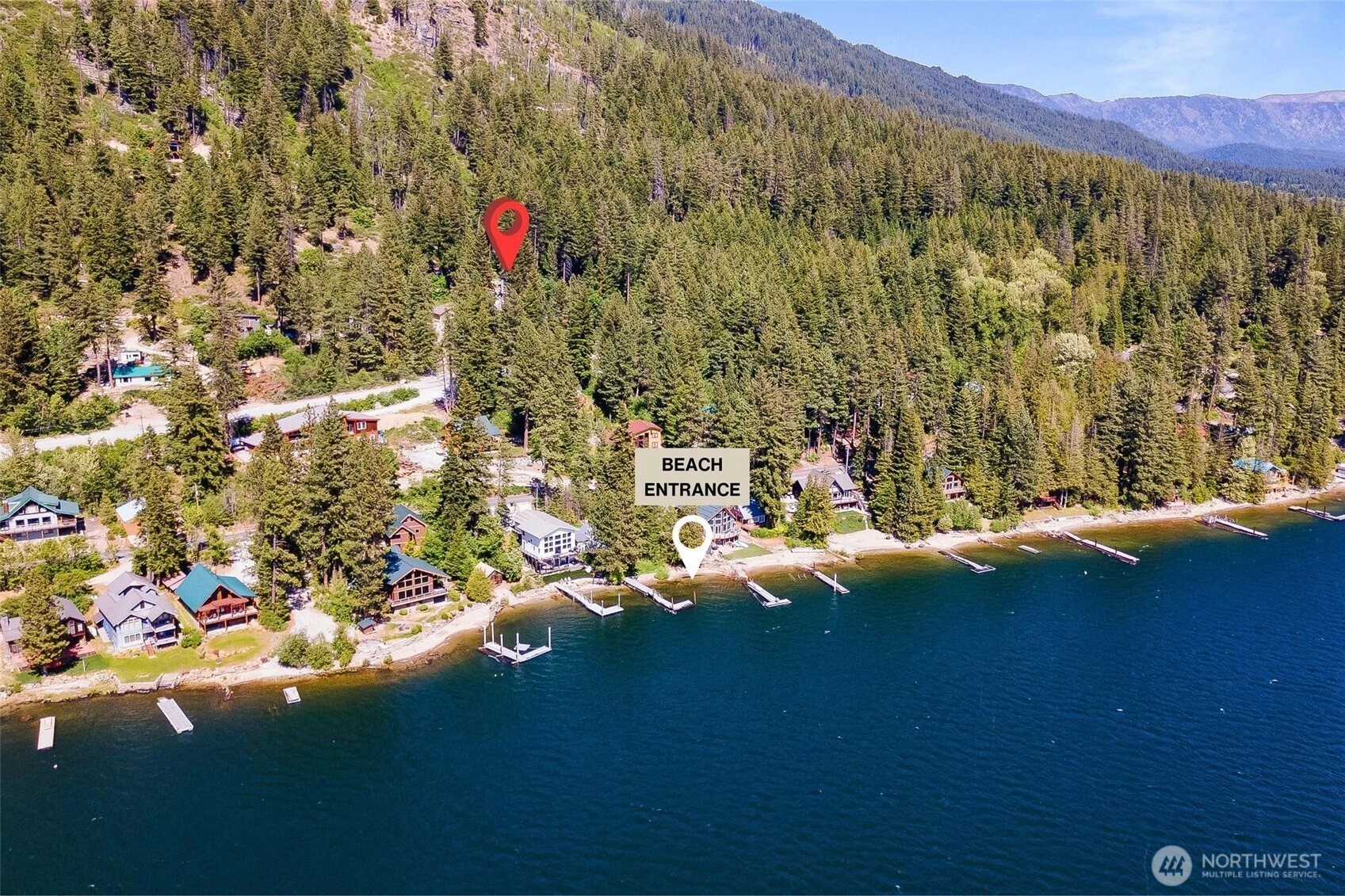 Nestled by Lake Wenatchee, this retreat offers a tranquil escape not far from fish lake, and just 40 mins from Stevens Pass & Leavenworth. Ideal for outdoor enthusiasts, the home blends comfort with functionality. With a metal lifetime roof & 500 sqft deck, enjoy outdoor living year-round. Cozy up by the fireplace or control the climate with the mini-split system. Meticulous design features a sturdy 2 by 10 front wall frame adorned with expansive windows framing picturesque lake views. LVP flooring, & real wood accents. Fully finished heated garage with an electric car outlet. The private deeded trail grants exclusive beach access to the new homeowner. Welcome to a haven where nature meets luxury. Don't miss out, experience serenity now.