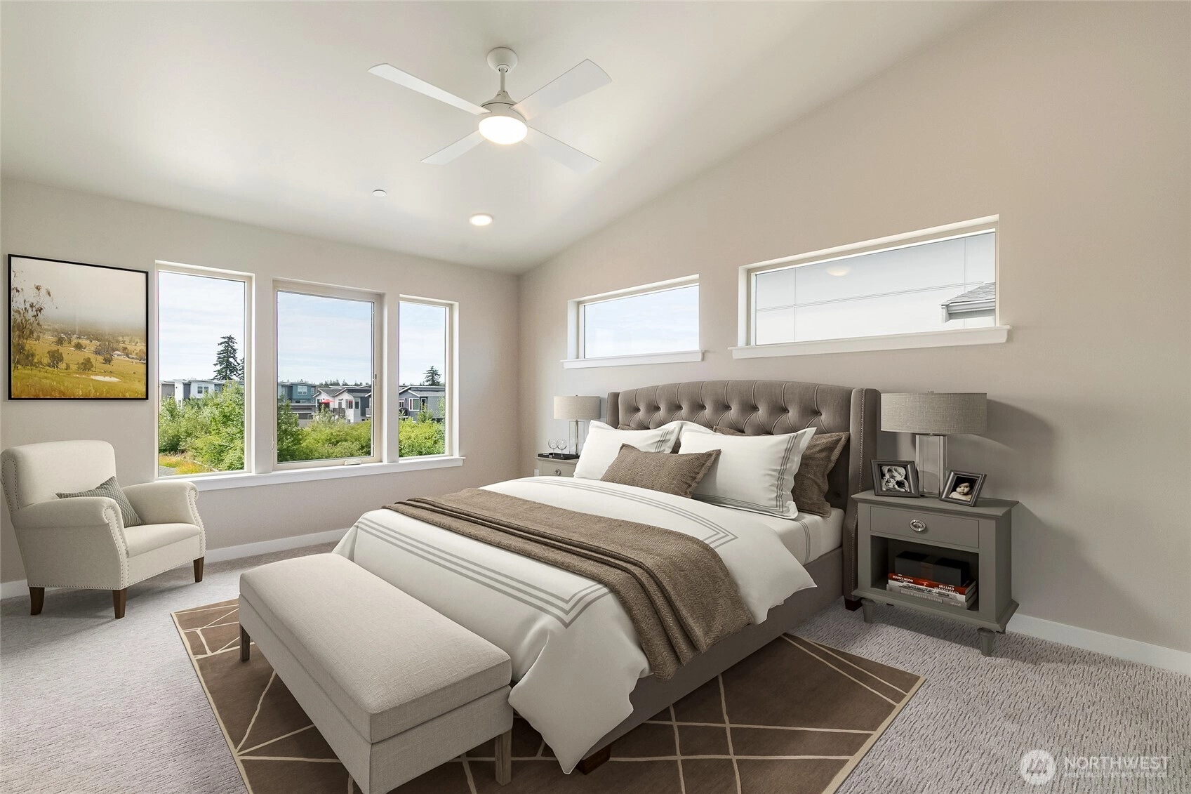 Welcome to Northview 2 in Cordata, Bellingham's premier solar home community! This stunning 2-story contemporary home features an open and spacious floorplan, a custom kitchen with sleek quartz countertops, and a primary suite with a private ensuite boasting a double sink and walk-in closet. Enjoy two additional bedrooms plus a versatile den/office that can serve as a possible fourth bedroom. Built with sustainability in mind, it offers efficient mini-split heat pumps with A/C, a low-maintenance yard, a covered patio, and EV charger prewiring. Take in mountain and golf course views. Includes a 2-car garage. Your dream home awaits—secure yours today!