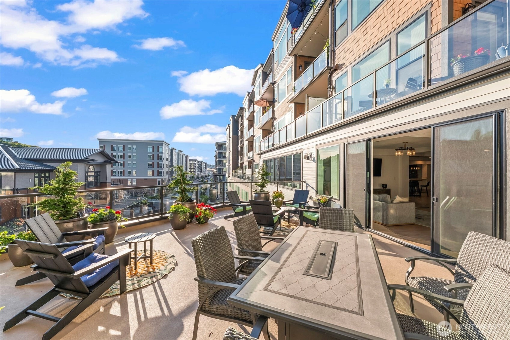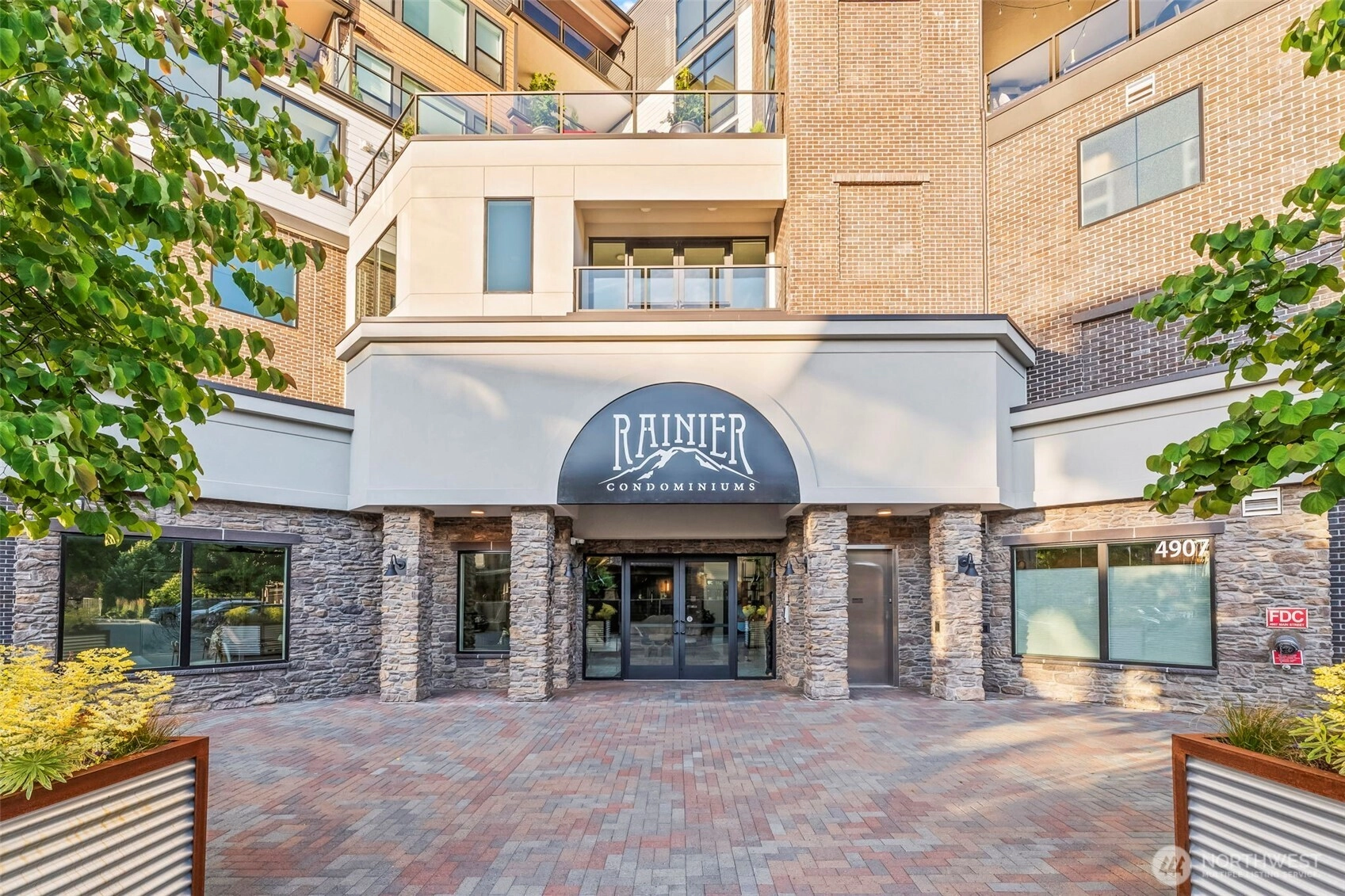 Experience the Point Ruston lifestyle from this exceptional condo in the coveted Rainier Building. Featuring an open layout w/ 9' coffered ceilings, wide-plank flooring, motorized blinds, living room w/ cozy fireplace flowing seamlessly into chefs kitchen w/ white cabinets, SS Bosch appliances, quartz counters & separate dining- perfect space to entertain. Serene primary suite w/ walk-in closet, spa-quality bath w/ heated tile floors. Laundry w/ sink- w&d included. TWO covered decks to relax from showcasing city lights, cascades & sunsets. Includes 2 reserved parking spaces (1 is EV) & a storage unit. Enjoy unmatched accessibility to shopping, dining, entertainment, trails, bike/kayak storage & more! LID is paid. Tax abatement through 2030.