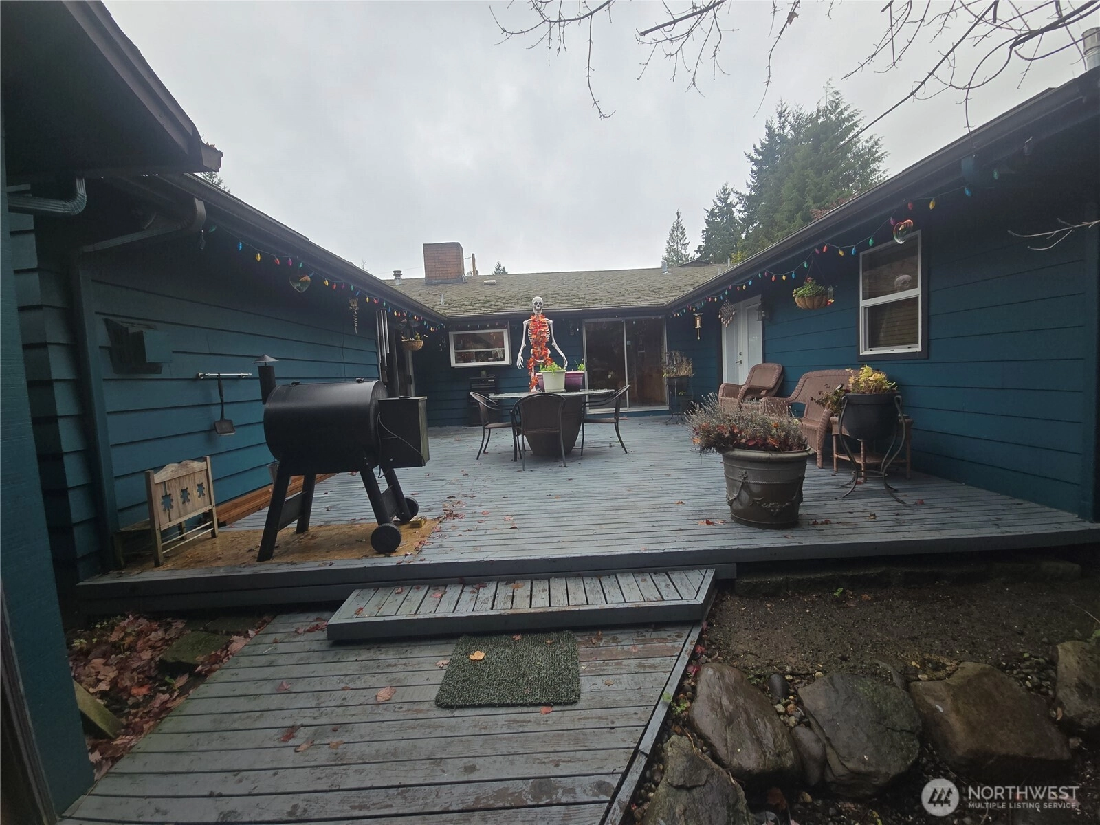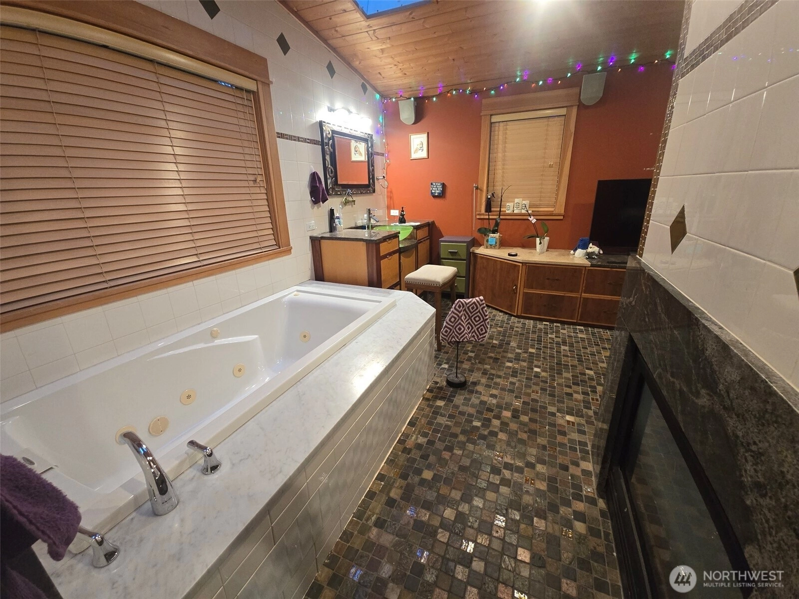 Beautiful 2400 sq ft Rambler at the end of cul-de-sac! 3-Bed 2 Bath Edmonds Rambler with a gorgeous, vaulted ceiling primary bedroom & bathroom with His & Hers walk-in closets, gas see through fireplace, heated tile floors, separate jetted tub and shower. Gourmet kitchen with NEW Samsung Brushed Stainless Steel Appliances, Beautiful, Rare, Petrified Wood countertops, and pantry! Huge family room with gas fireplace, and a large living room and dining room with a third fireplace and a 20 X 24 ft deck for entertaining! All of this on a fully fenced 12,000 SF lot with 23 ft by 14 ft storage shed/workshop and a beautiful pergola with an outdoor fireplace. Price reduced as Seller is serious about moving soon.