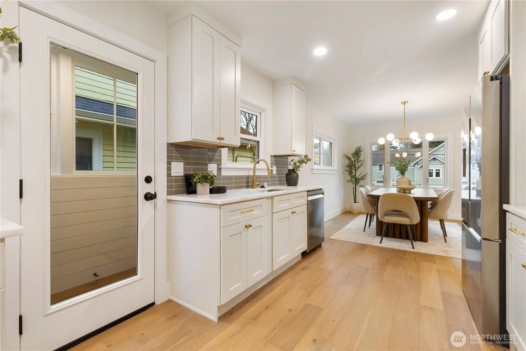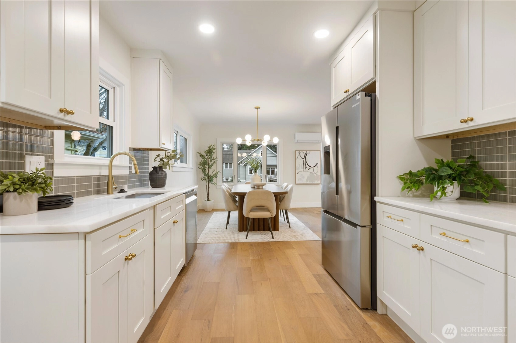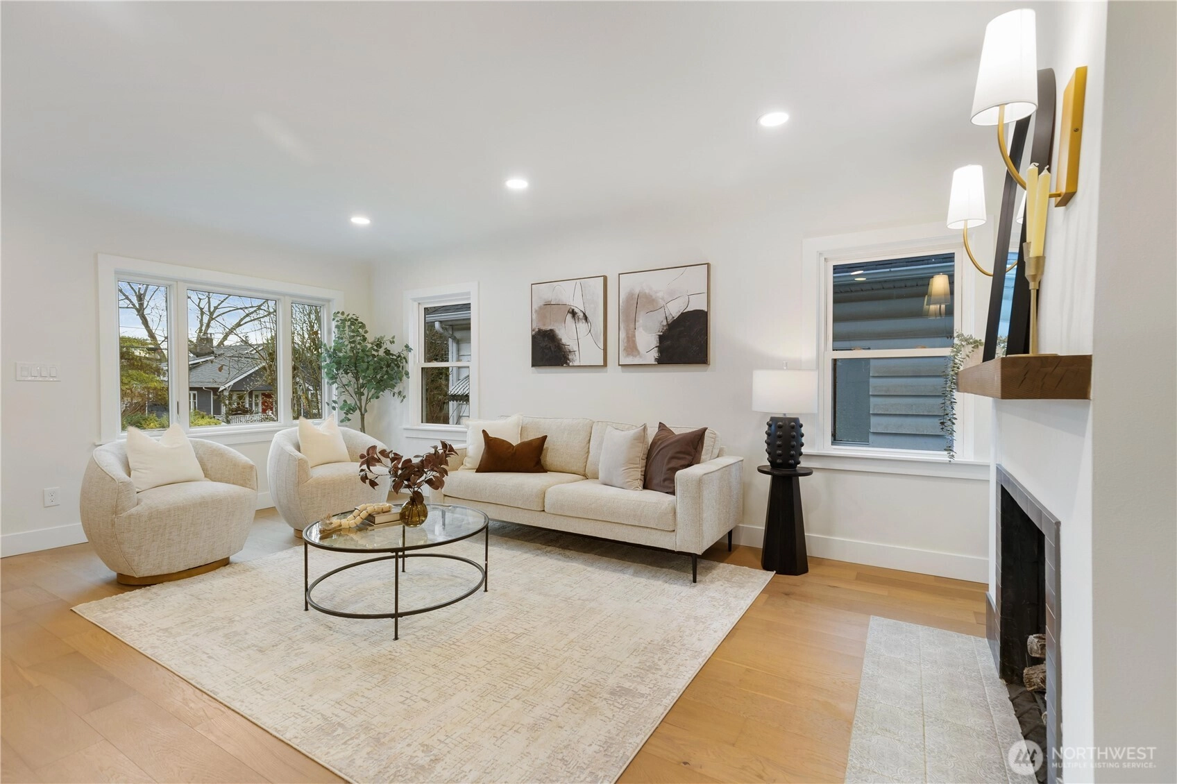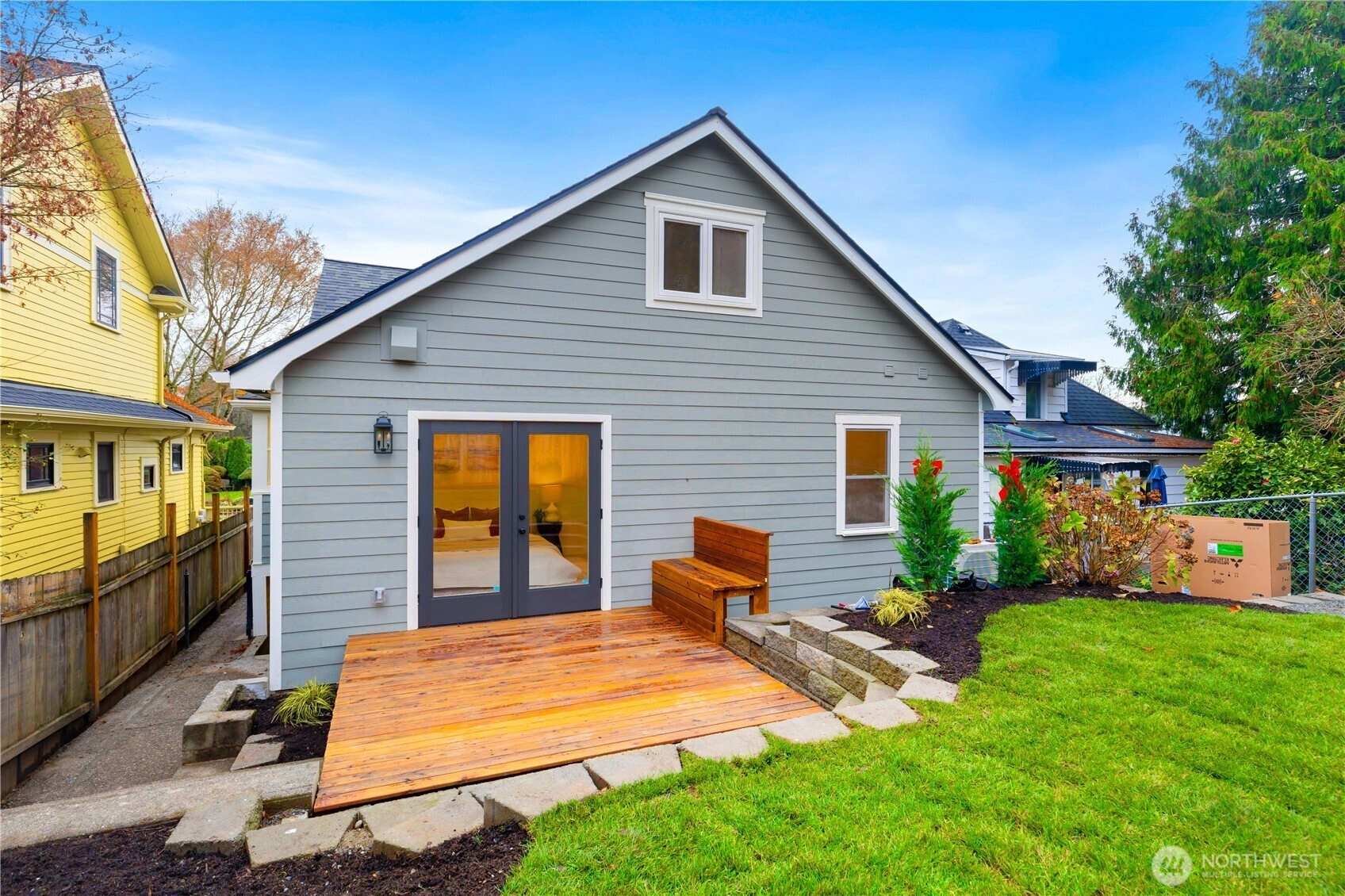 Classic Craftsman meets modern updates in this fully permitted home. Set above the street w/a spacious entry deck - perfect place to enjoy the neighborhood charm. Inside find rich open spaces w/cozy original FP anchoring the airy lvg rm. Dining adjoins timeless kitchen w/new cabs, counters, SS appliances & designer finishes. Sophisticated primary retreat on the main w/lrg walk-in, spa-like BA featuring oversized shower, plus French doors to the freshly landscaped yard & back deck - extending the relaxation & entertainment spaces. 2 beds & full BA up, plus 4th bed, full BA & office down. Lrg bonus w/exterior access—offering tons of flexibility. New electrical, plumbing, mini splits & more! Quiet, tree-lined street, truly move-in ready!