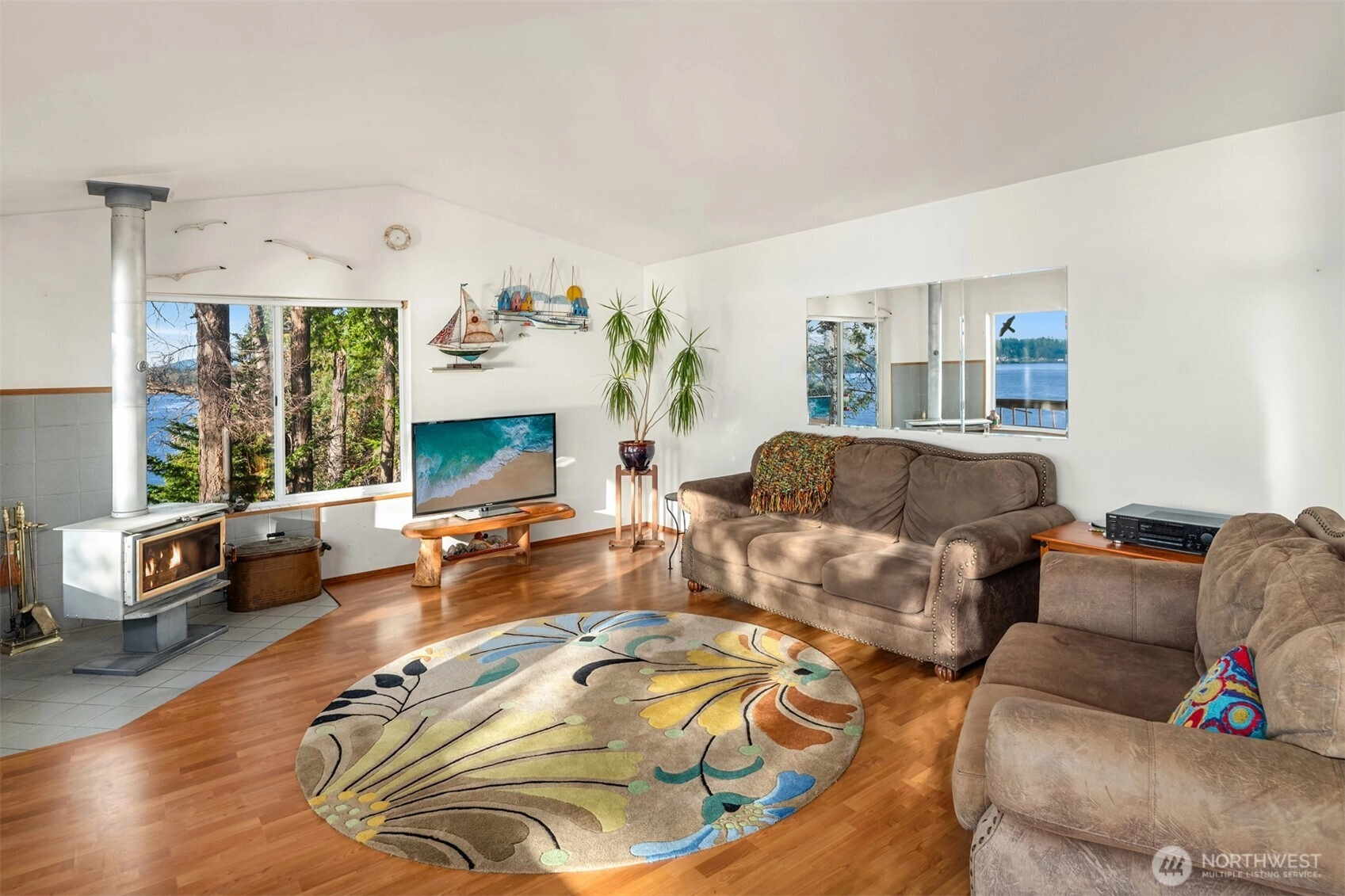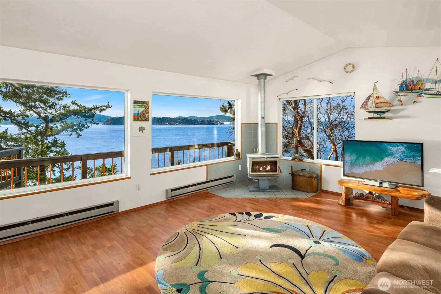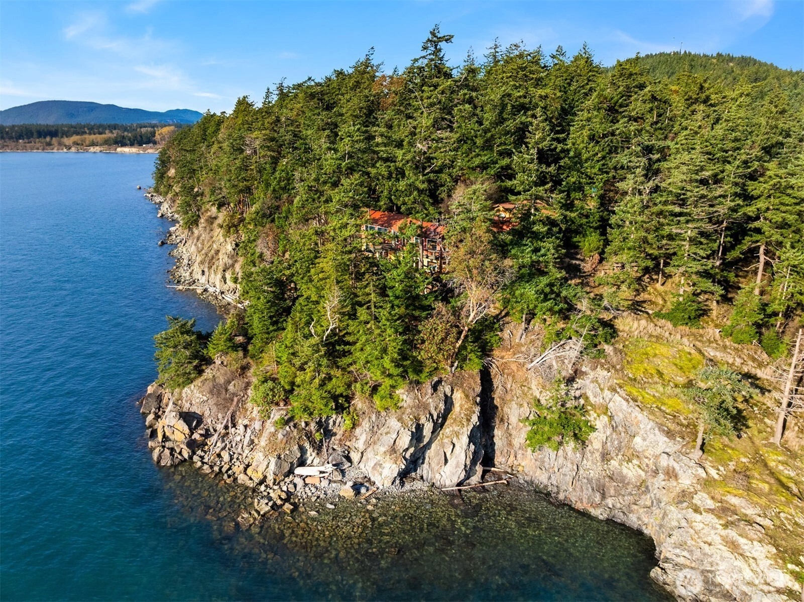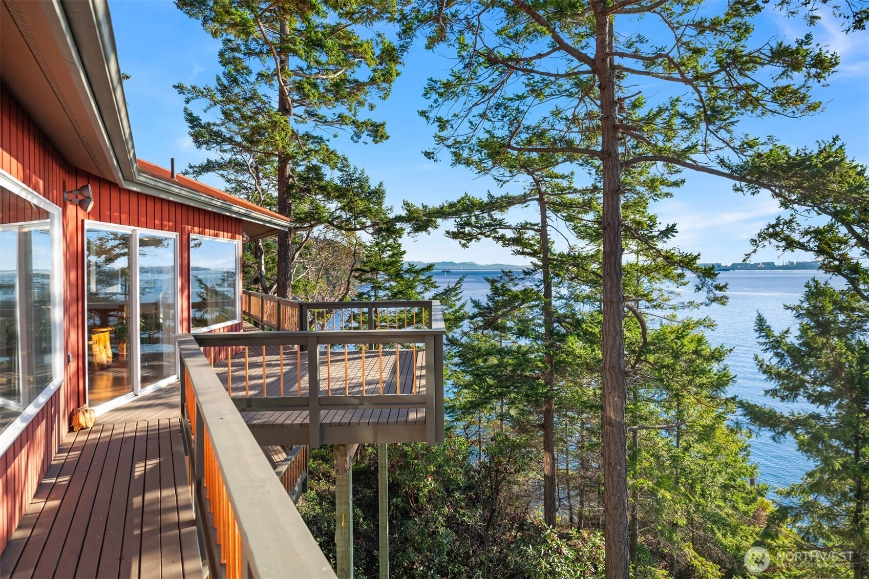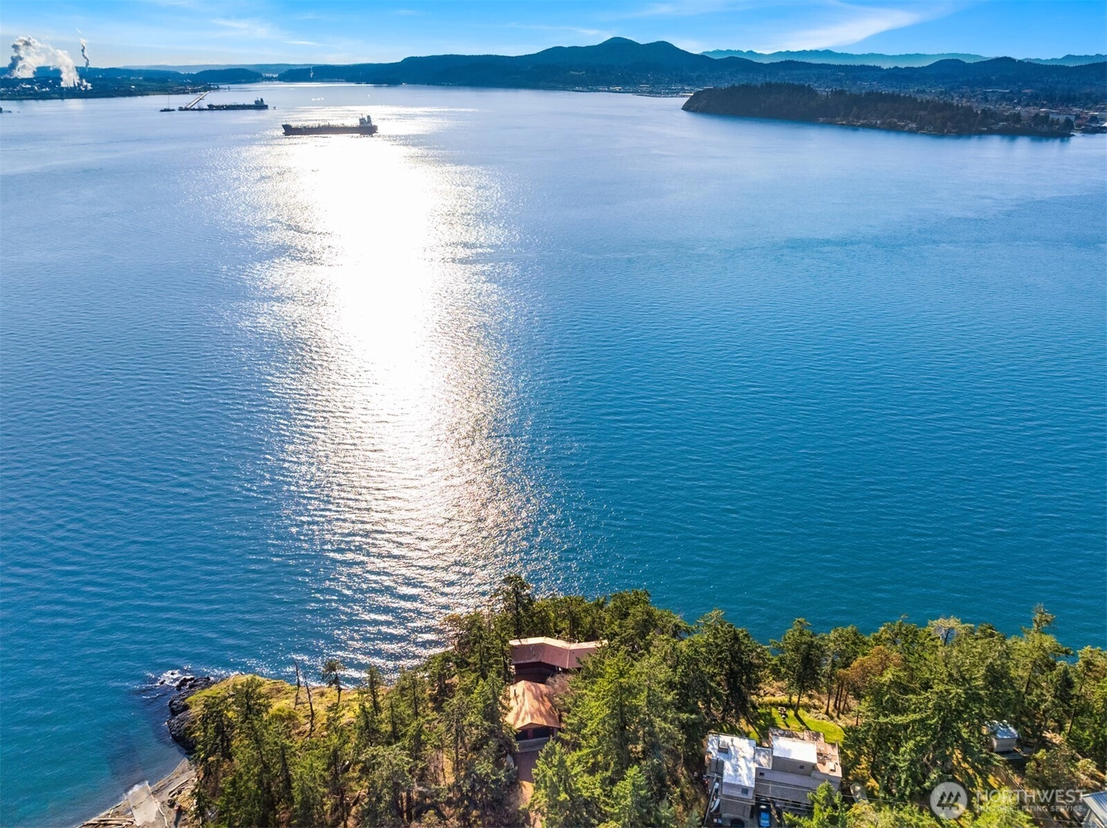 Spectacularly perched atop 150' of dramatic cliffside waterfront on the rocky points at Cooks Cove, this secluded architectural wonder juts out into the vibrant Guemes Channel with mesmerizing 180° views from Padilla Bay & the Cascades to Cap Sante, Mount Erie & the nearby San Juan Islands! A custom contemporary stunner set amid ornamental evergreens with walls of windows & full-lengths decks embracing unrivaled views. Spacious open layout features top floor with cathedral ceilings, living room with woodstove, formal dining with open rail staircase & huge kitchen with island & breakfast nook. Primary suite with jetted tub & walk-in shower. Majestic .59 acre oasis with 728sf garage. Moments to boat launch, beaches, trails & 8 minute ferry!