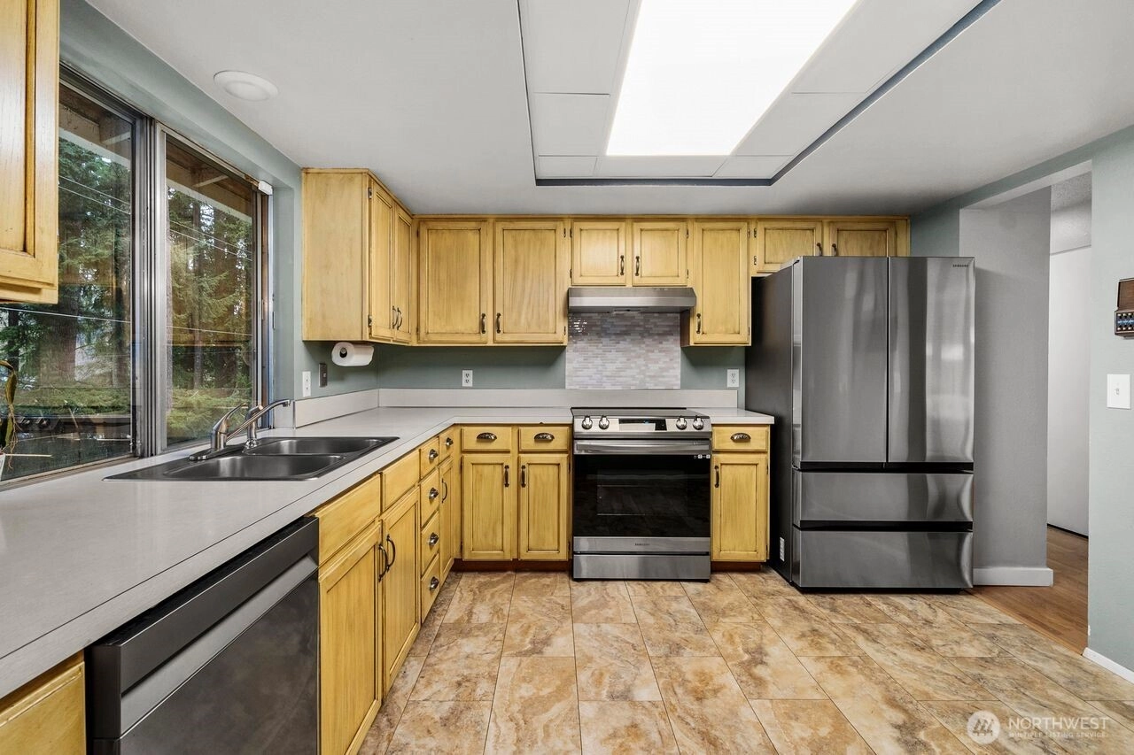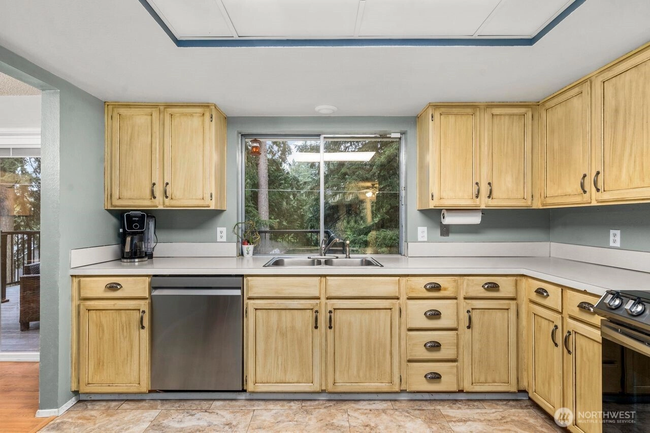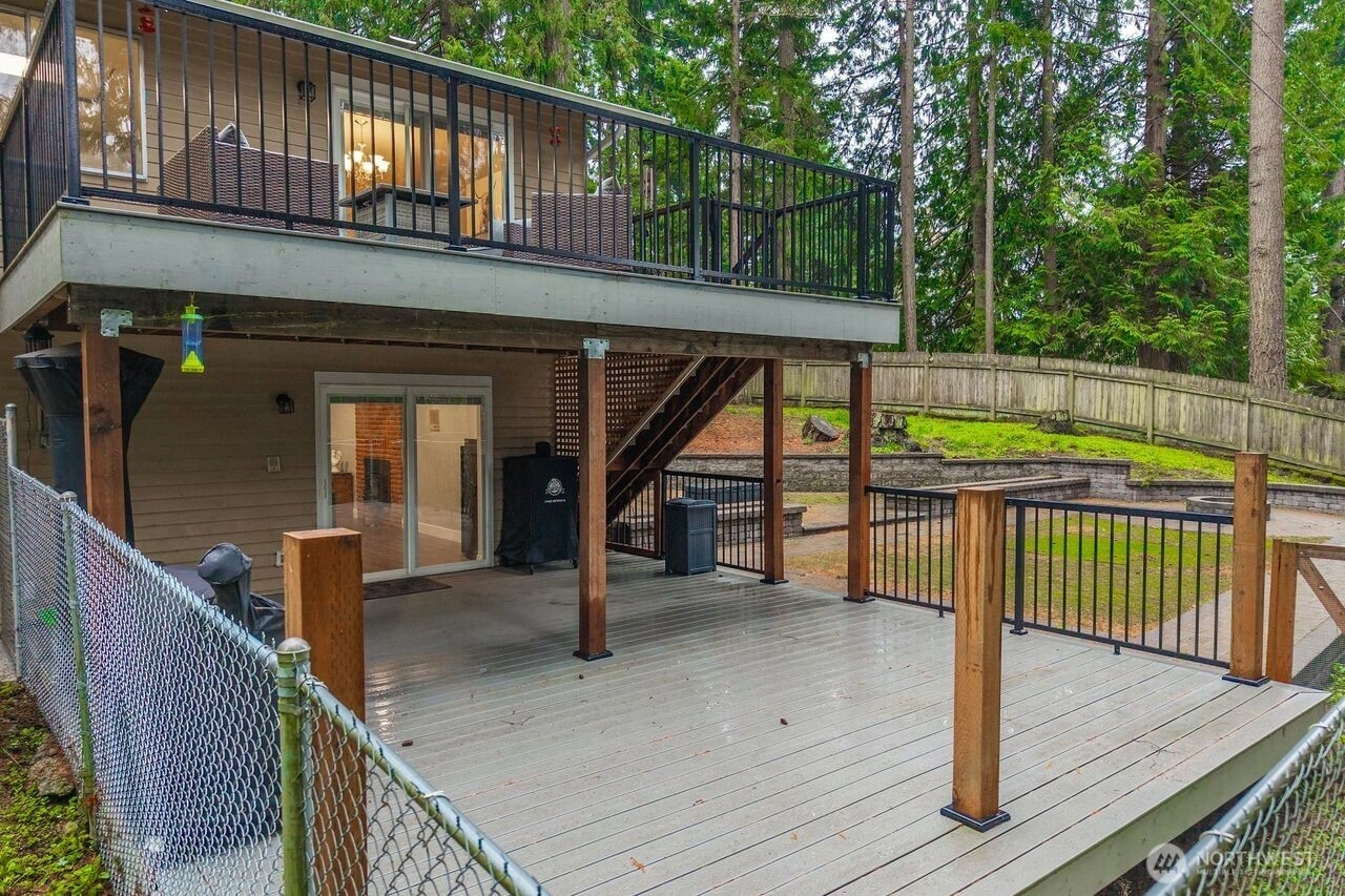 Welcome to your Keyport mini-farm retreat on 1.68 acres. This well cared for split-level home features 3 bedrooms with fresh carpeting, 2 remodeled full baths, a kitchen with eating space and newer stainless appliances, bright dining area, and a spacious living room with fireplace. The lower level offers LVP flooring, a large family room with new fireplace insert, wet bar, and a combined 3/4 bath and utility room. Upgrades include a newer roof, heat pump, electric panel, Andersen windows, and Trex decking. Outside enjoy gardens, fruit trees, fenced & cross fenced pasture, barn, chicken coop, hardscaped side yard w/artificial turf, firepit, and stock tank pool. Designated EV outlet. Near Keyport, Bangor, Bremerton Naval Shipyard, & ferries.