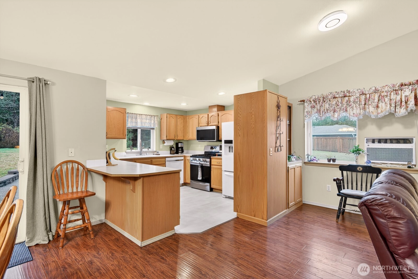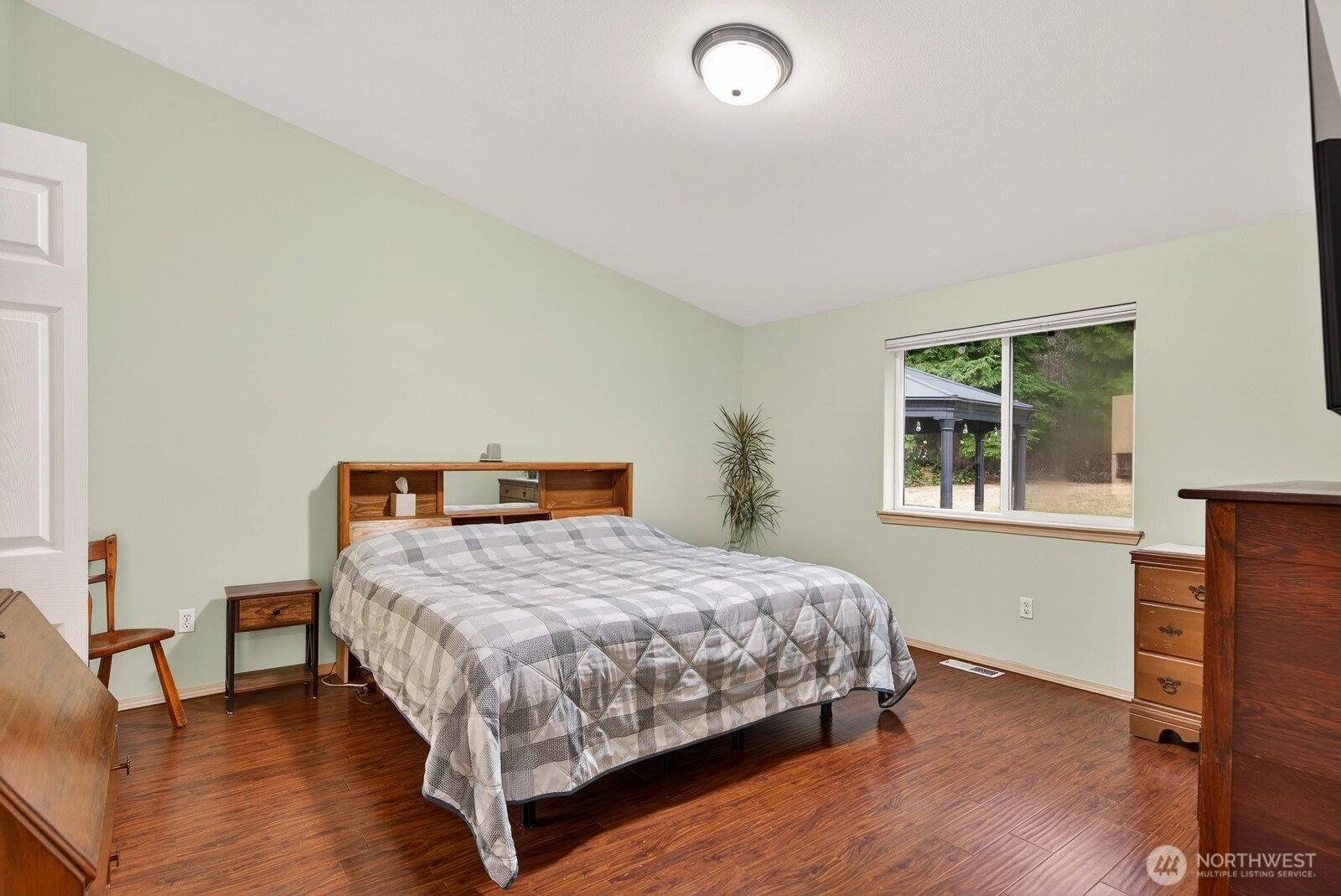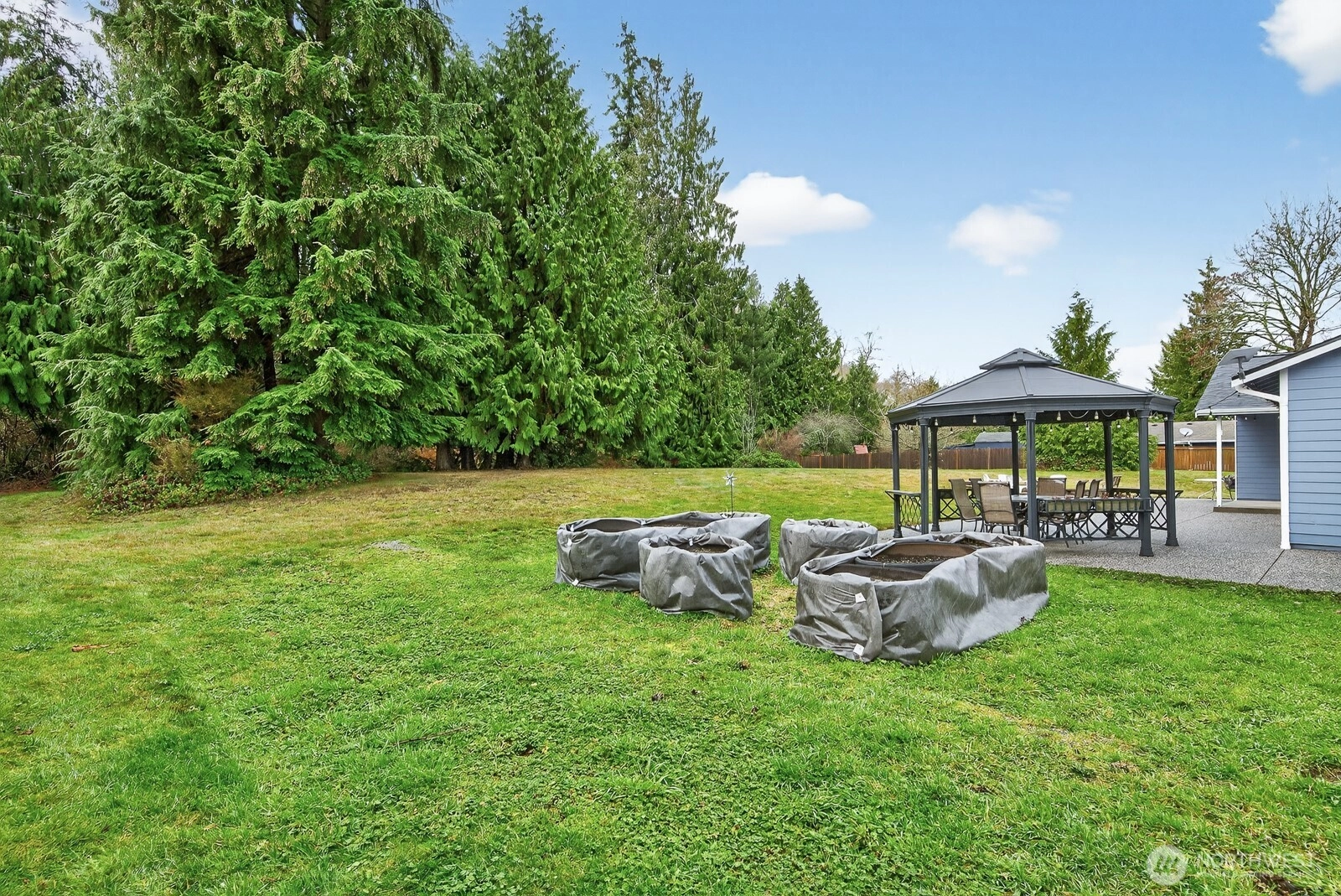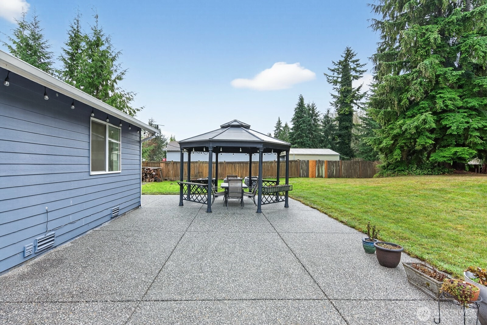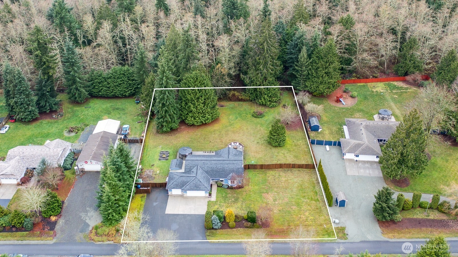 Rambler on a very usable one acre lot in a great community! This 3 bed 2 bath home has an inviting living room that is open to the kitchen & dining with vaulted ceilings, laminate floors & a propane fireplace. Spacious primary bedroom with double sinks in the bathroom & a walk-in closet. Brand-new roof! Nice 3 car garage with 220V pwr. incl. 40A elect. car charger & a 30A RV plug outside. Come enjoy the awesome backyard with a big concrete patio, firepit, gazebo & lots of space to garden & play! Very desirable community of 9 homes with a paved, dead-end street just 10 min from I5. There's a list of items that stay, including a 2020 John Deere riding mower! Possible room for a shop? And the larger 4 bed septic ready for future home addition.