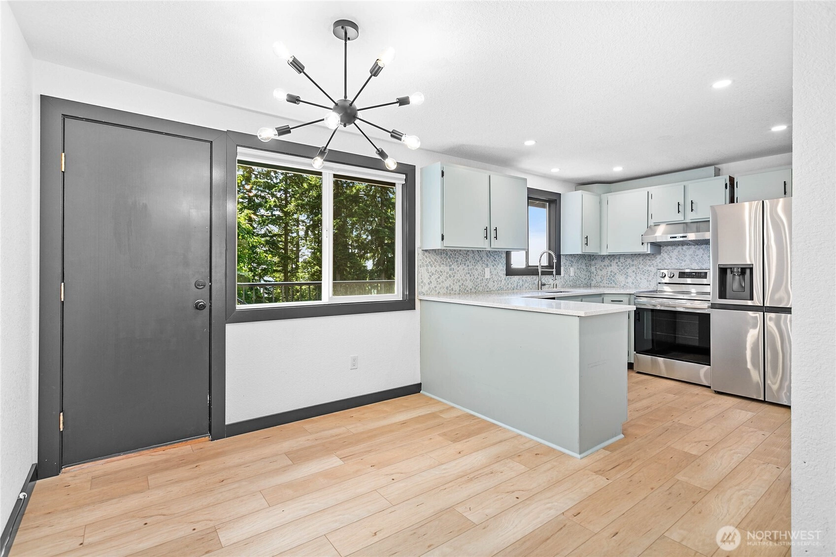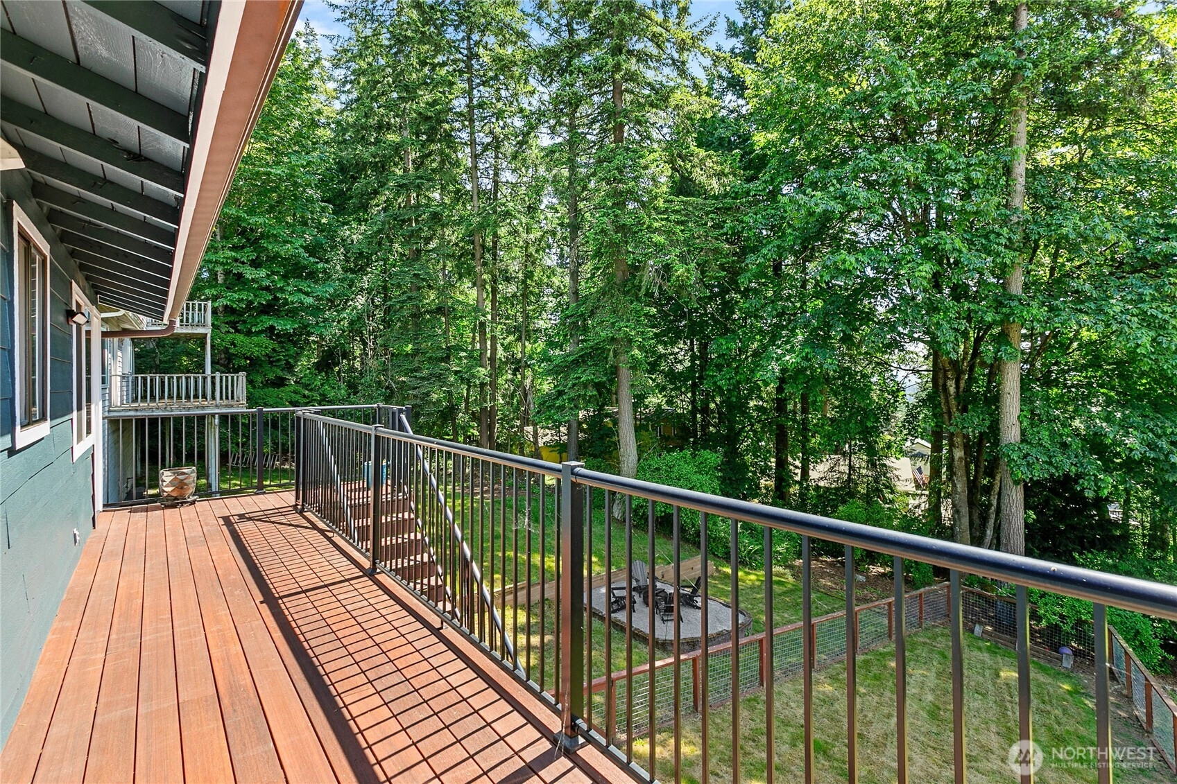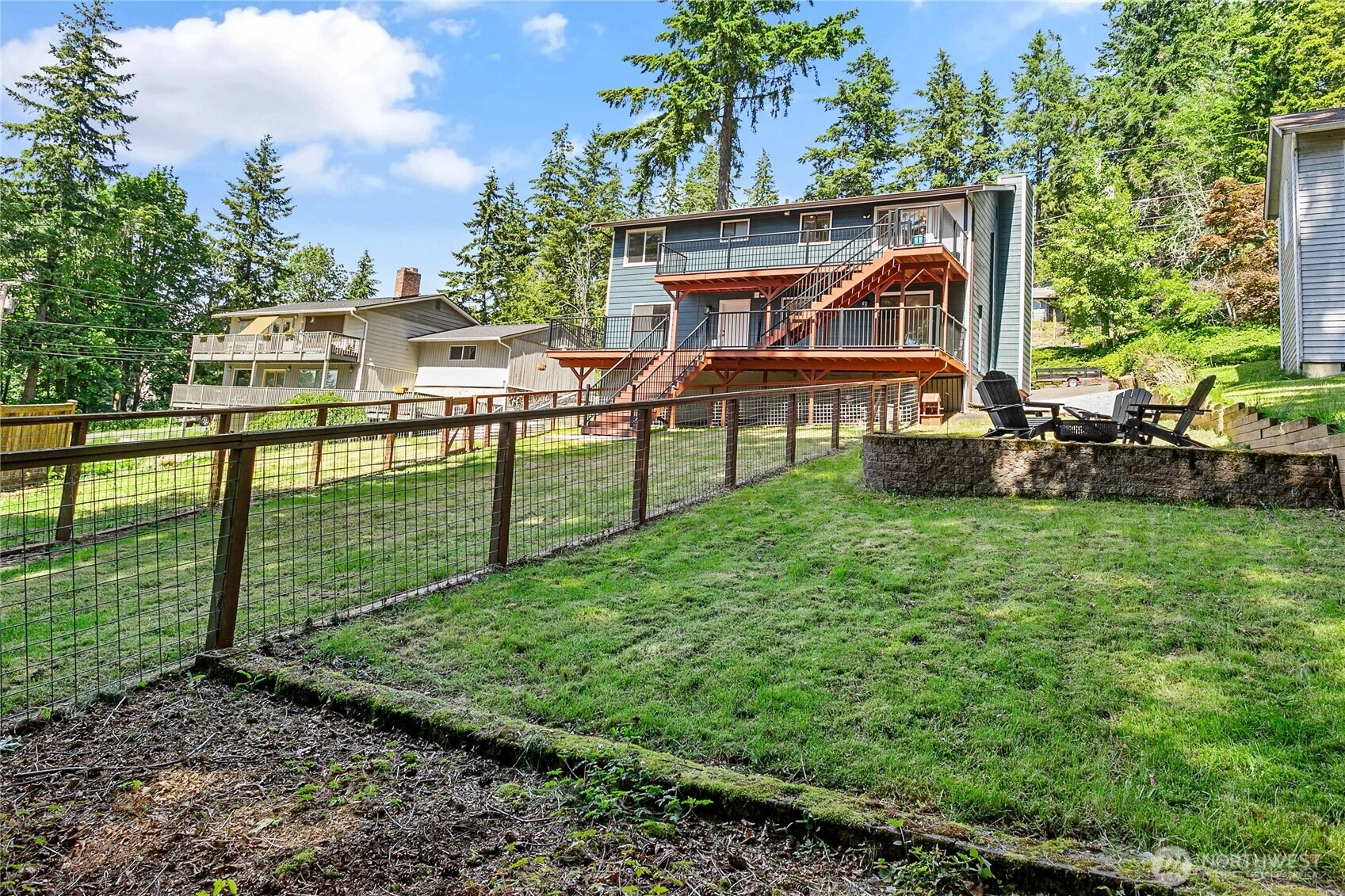Free lender credit with preferred lender (1% of loan amount). Nestled in Emerald Lake, this fully renovated 1/3-acre gem offers modern comfort and privacy. Newly paved driveway with ample parking and oversized garage. Enjoy territorial views from the two-story Trex deck with access from both levels. Downstairs, a large yard with dog run, fire pit, garden beds, and space for entertaining. Inside features Mitsubishi heat pump A/C up and down, LVP flooring, quartz counters, stainless appliances, tiled baths, new windows, and fresh paint inside and out.