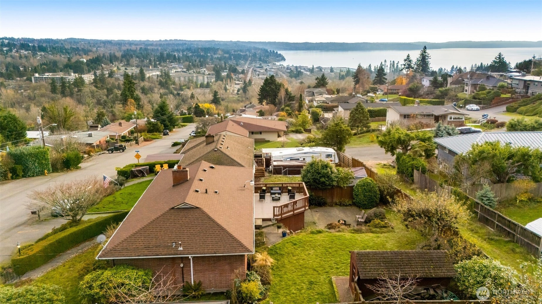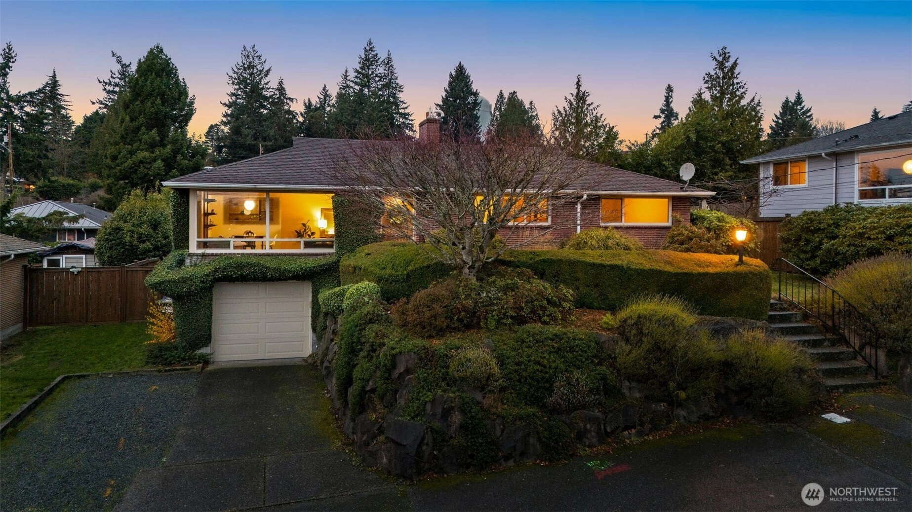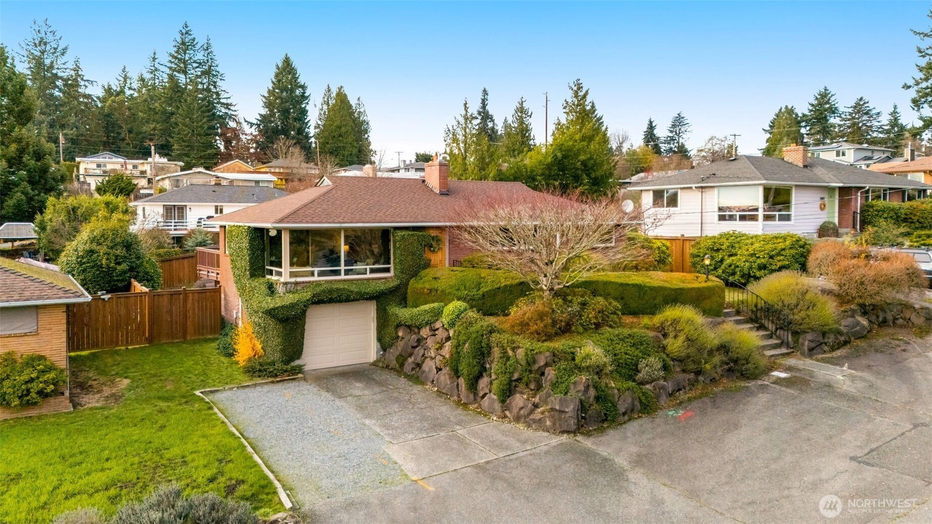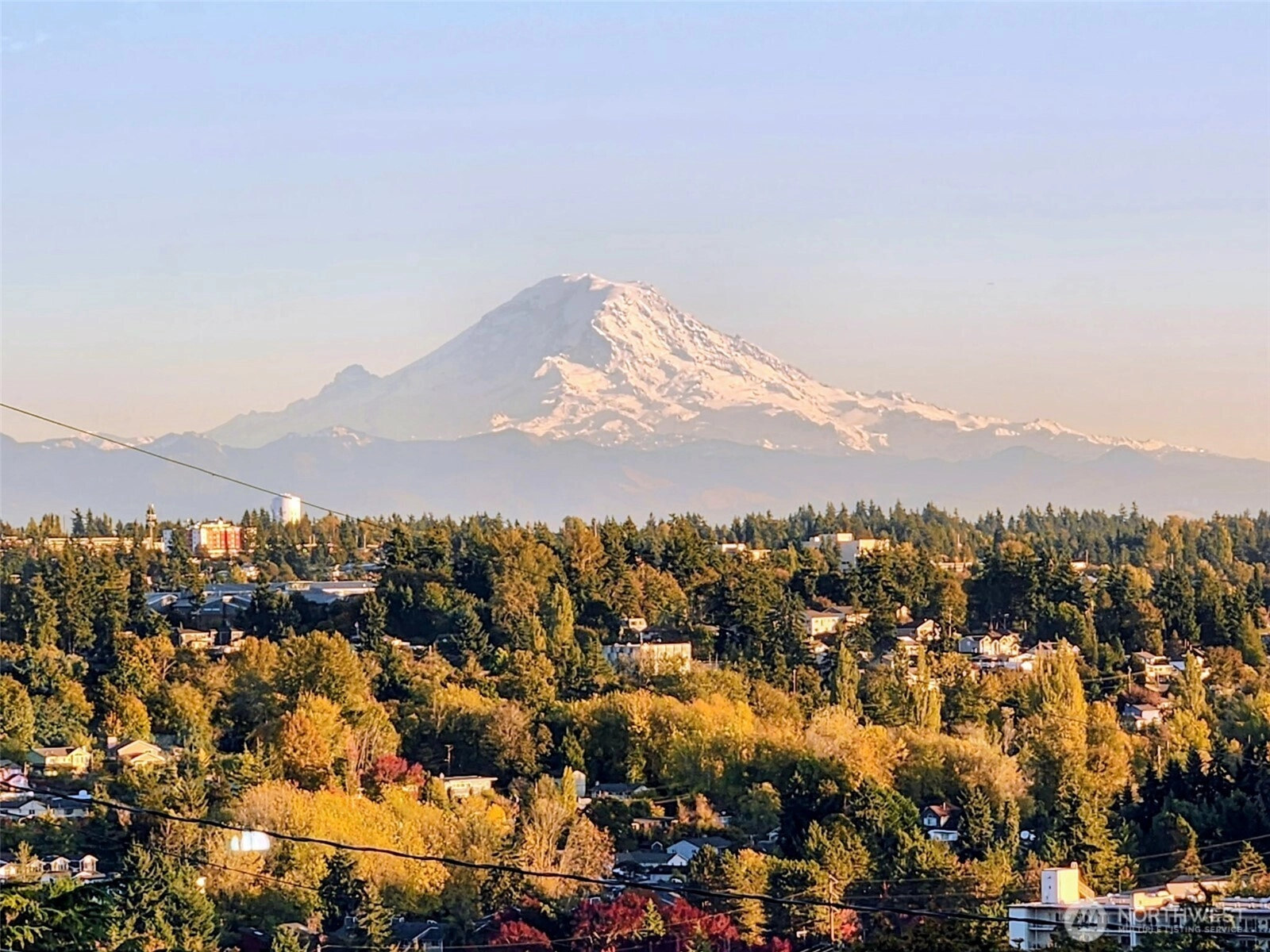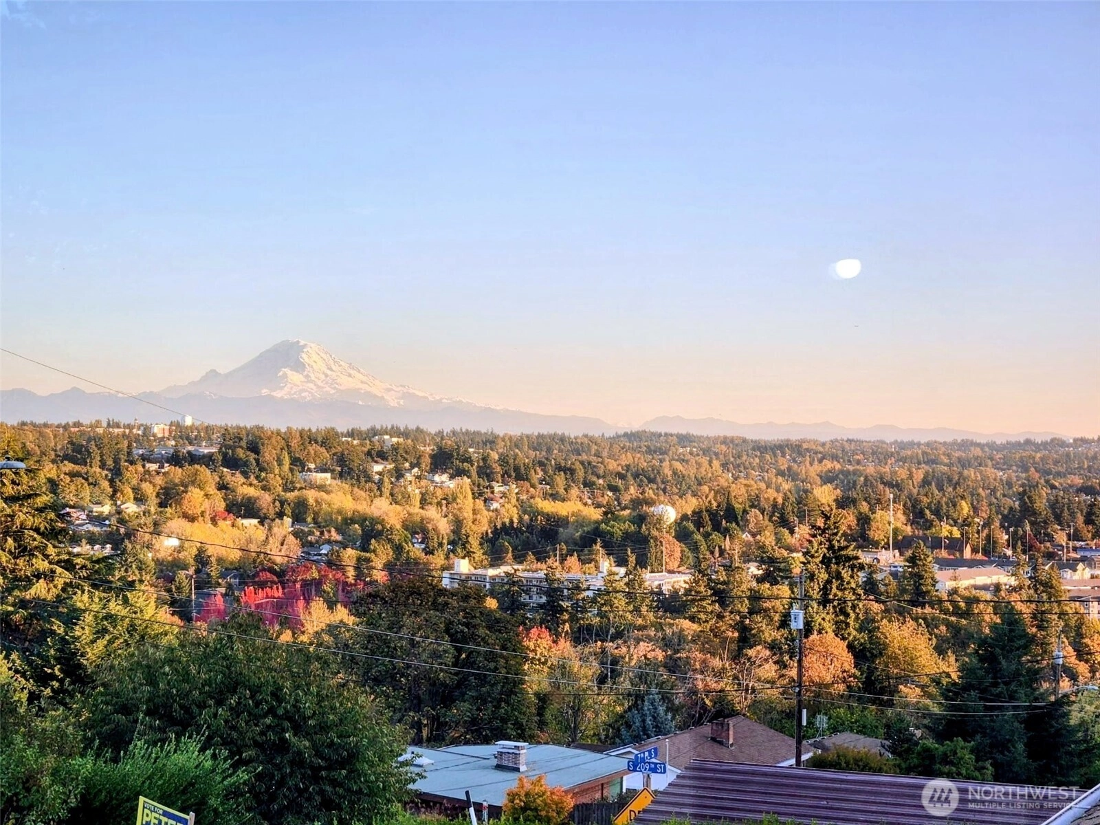 V I E W MCM home in coveted North Hill neighborhood! Wake up to coffee and sunrises over Mt Rainier out the corner picture windows from the living room; and settle into your evening with sunsets over the Sound on the back deck. Enjoy Seabreezes off the water, natural sunlight, and mid-century vibes in this 1953 home. Hardwood floors on the main level with 3 bedrooms & fun retro bath. Head downstairs to bonus rec room w/2nd fireplace, laundry, and 3/4 bath, plus storage and attached garage parking. Fenced backyard offers mature plantings, western sunlight, grassy lawn, patio, potting shed, and entertaining deck. Just mins to downtown Des Moines, Normandy Park, SeaTac airport, and Angle Lake Lightrail station. The Mountain is Out!