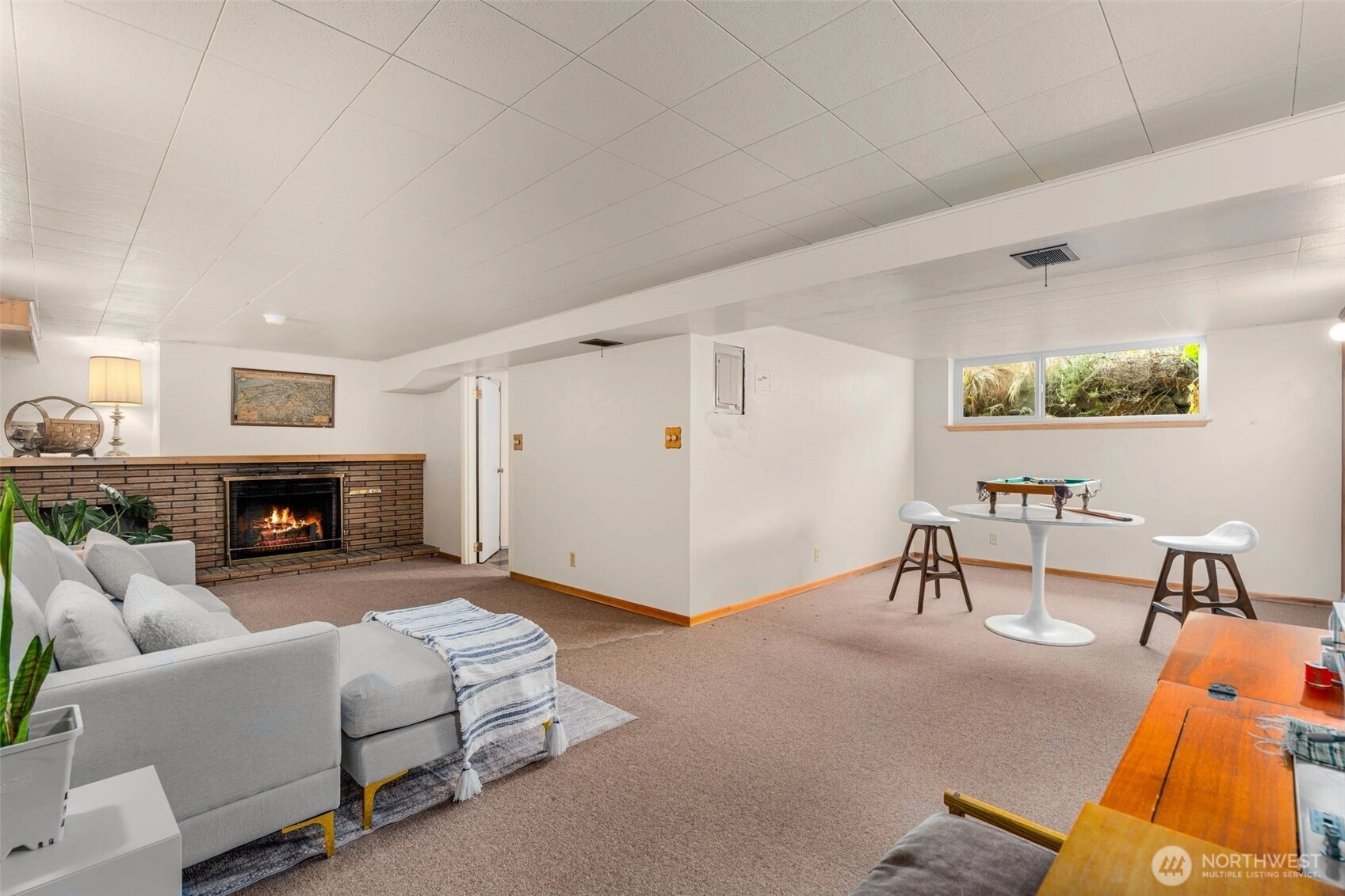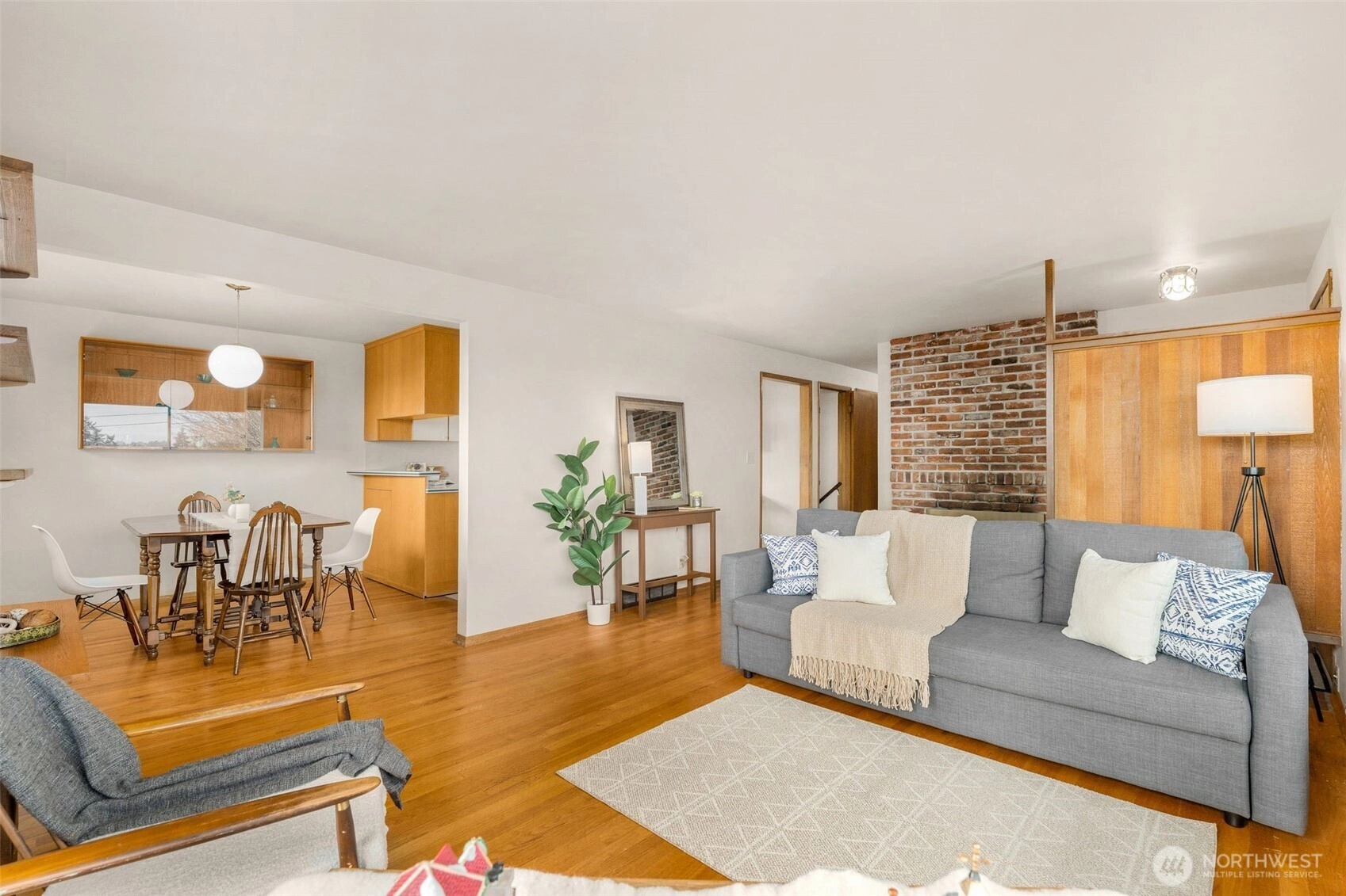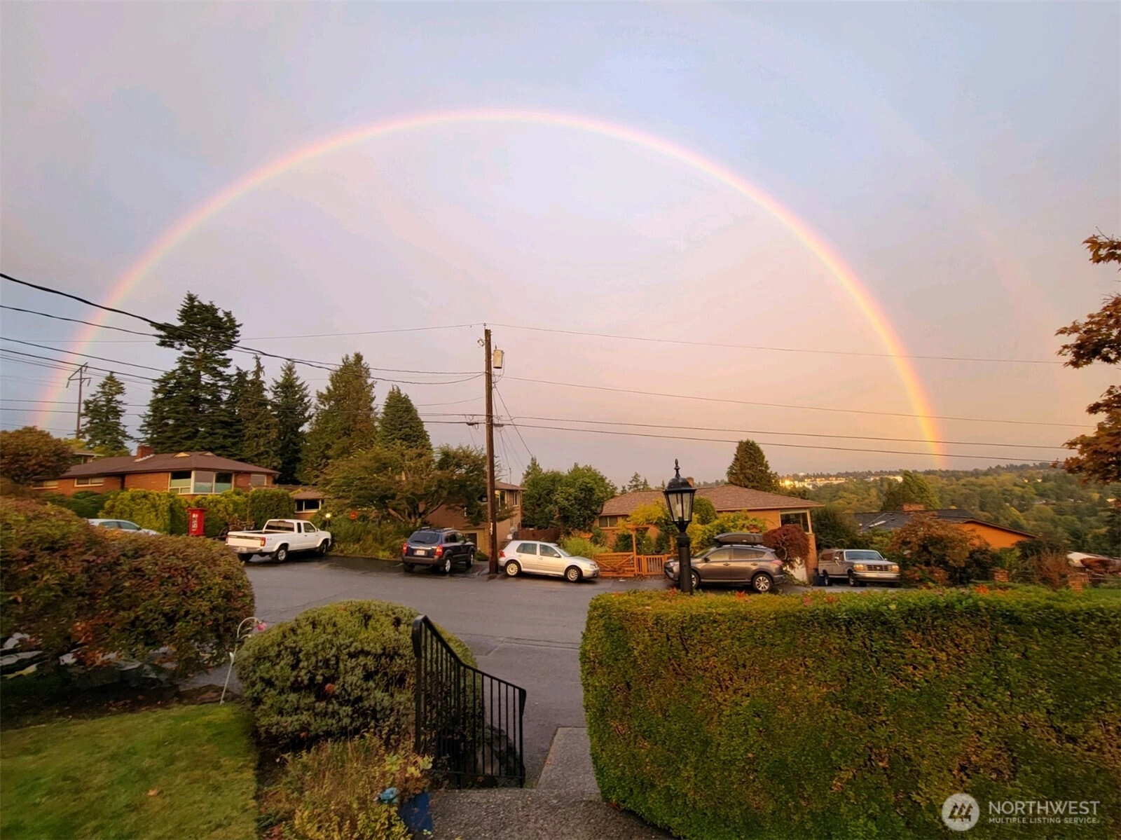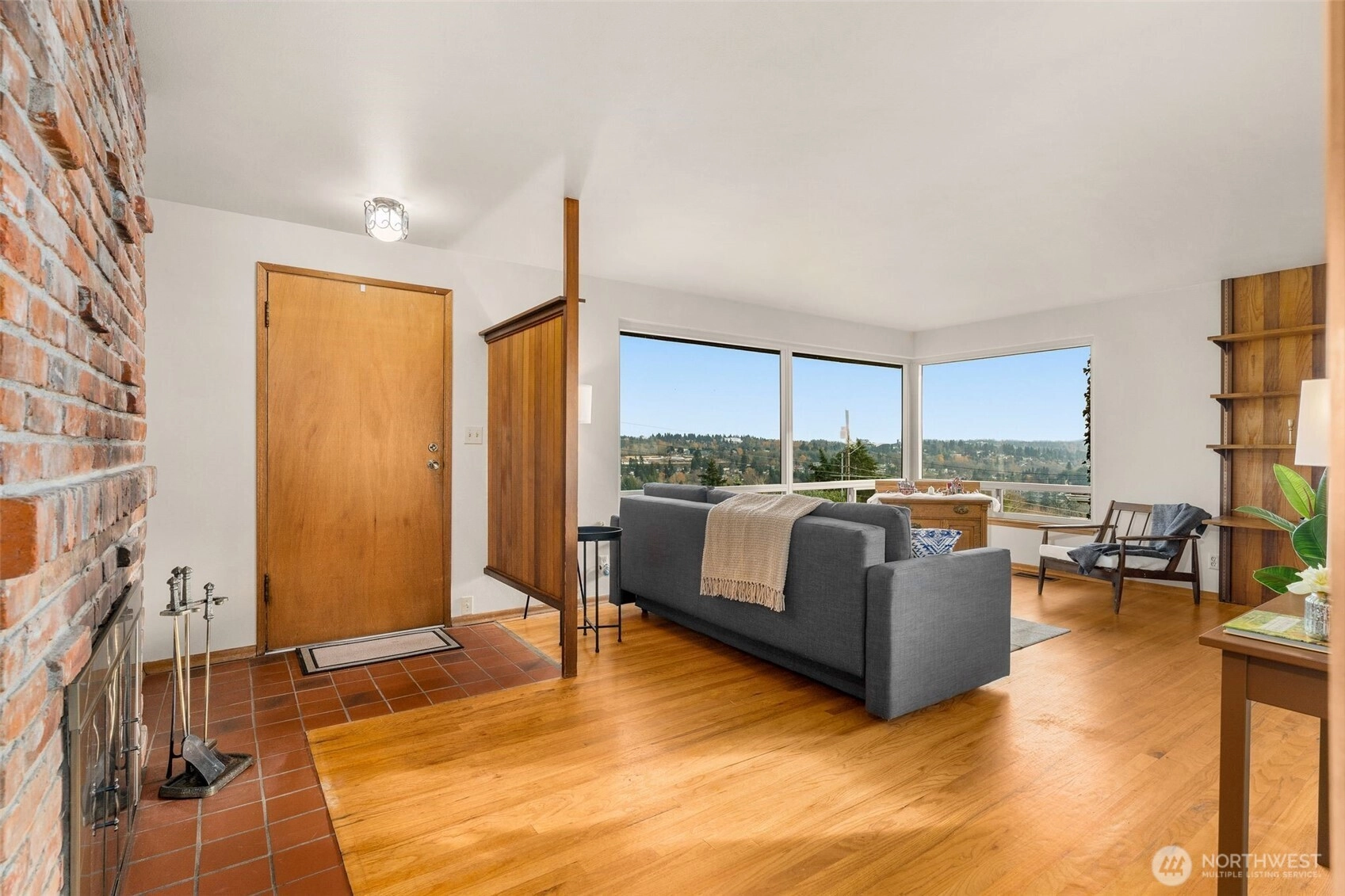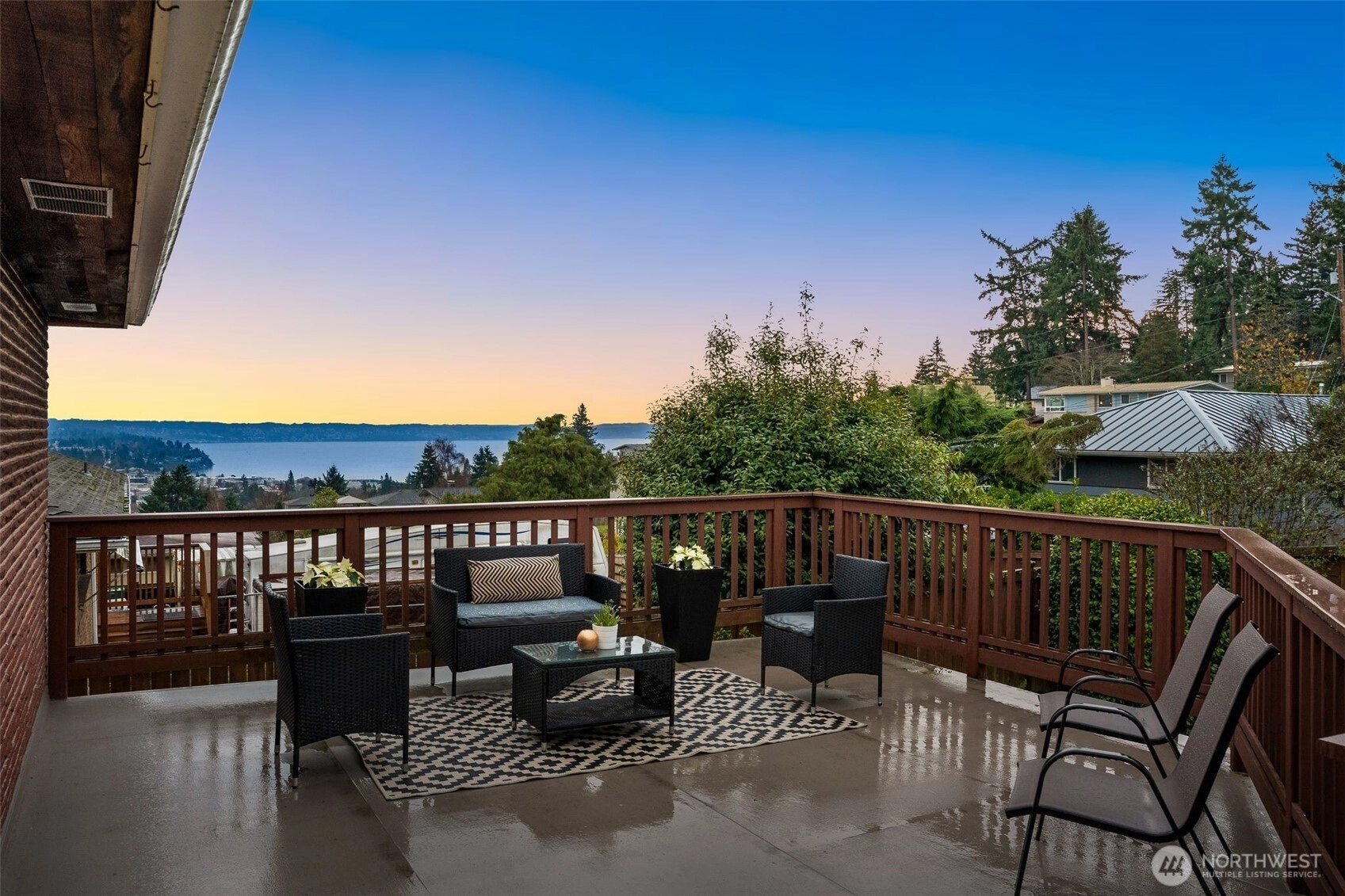 V I E W MCM home in coveted North Hill neighborhood! Wake up to coffee and sunrises over Mt Rainier out the corner picture windows from the living room; and settle into your evening with sunsets over the Sound on the back deck. Enjoy Seabreezes off the water, natural sunlight, and mid-century vibes in this 1953 home. Hardwood floors on the main level with 3 bedrooms & fun retro bath. Head downstairs to bonus rec room w/2nd fireplace, laundry, and 3/4 bath, plus storage and attached garage parking. Fenced backyard offers mature plantings, western sunlight, grassy lawn, patio, potting shed, and entertaining deck. Just mins to downtown Des Moines, Normandy Park, SeaTac airport, and Angle Lake Lightrail station. The Mountain is Out!