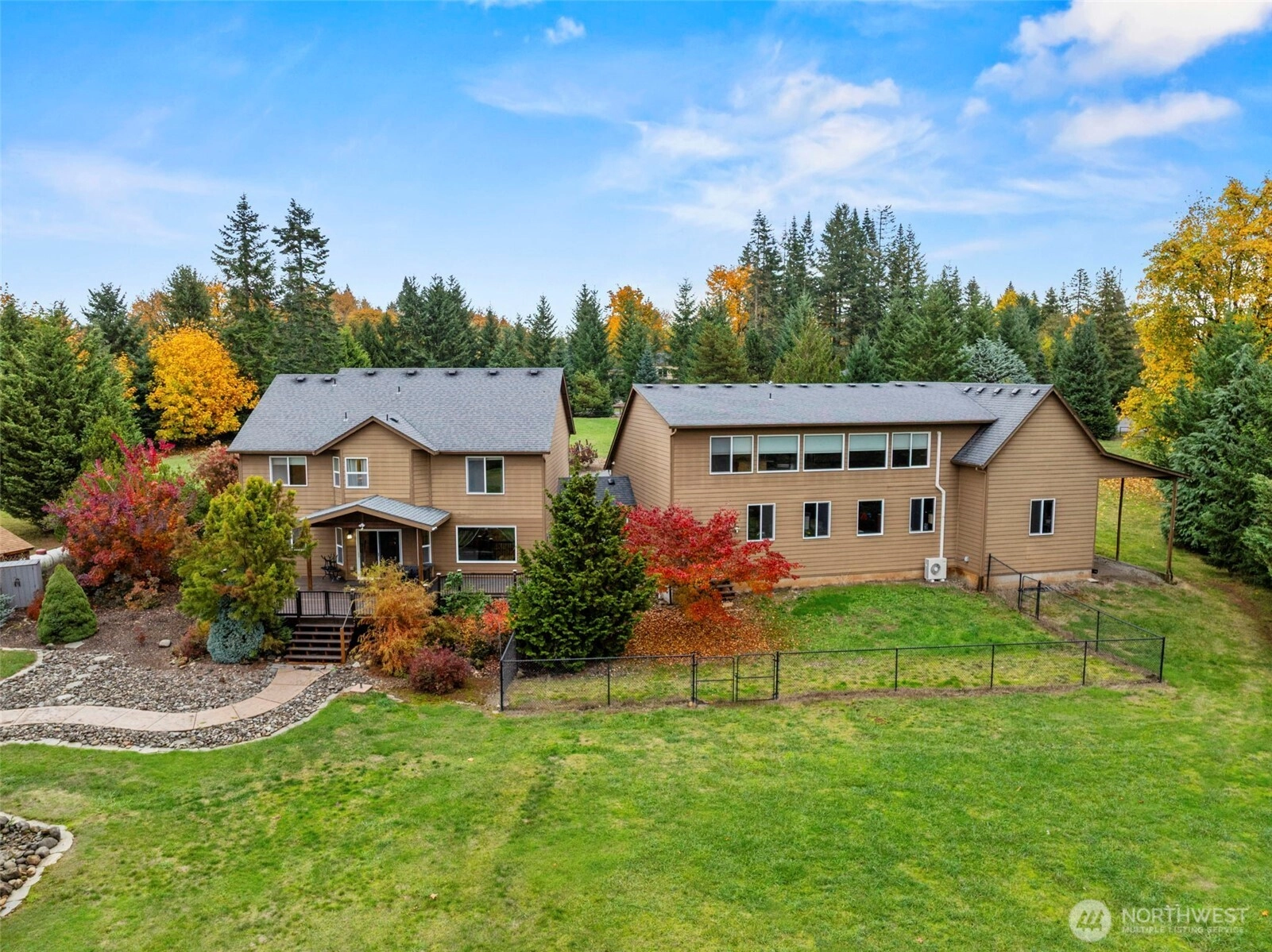 Gorgeous home on 5 acres. Main home has 2477sf with an additional 1200sf ADU. Beautiful kitchen with special ordered Italian backsplash. Granite countertops, new cabinets, pull out drawers and tile flooring. Extra large propane stove. Primary bedroom has a walk in closet. Primary bath has 2 separate vanities, large jetted tub and double shower. ADU is attached to the main home. It has stairs with a chair lift for easy accessibility. This is a one bedroom apartment style set up with it's own kitchen, washer/dryer, bathroom with heated tile floors. Also, has 650sf of storage tucked away in a closet. Outside is partially fenced and has a 30' circular stone firepit. Sprinklers front and back yard and 2 beautiful water fountains.