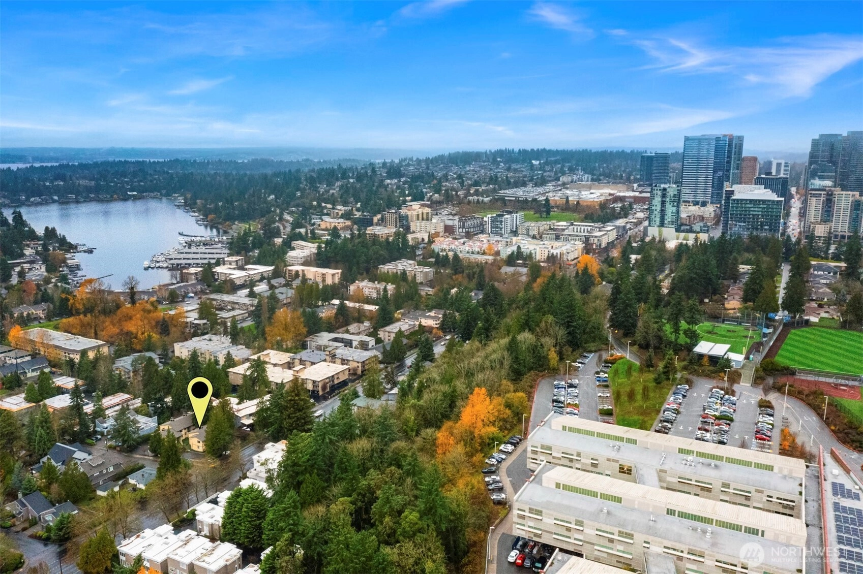 A peaceful Bellevue retreat, this rare top corner 3BR condo blends natural light, privacy, and effortless everyday living. The open living and dining area with a cozy wood-burning fireplace and sliding door to a private deck creates an inviting setting for morning coffee or relaxed entertaining. Two walk-in closets, three assigned parking spaces, and storage lockers add everyday ease. A new roof and gutters were replaced in December 2021. Low HOA dues covering most utilities keep monthly costs predictable. Across the street from Bellevue High and close to parks, shops, transit, and major highways, this home is also in the top Bellevue school district.