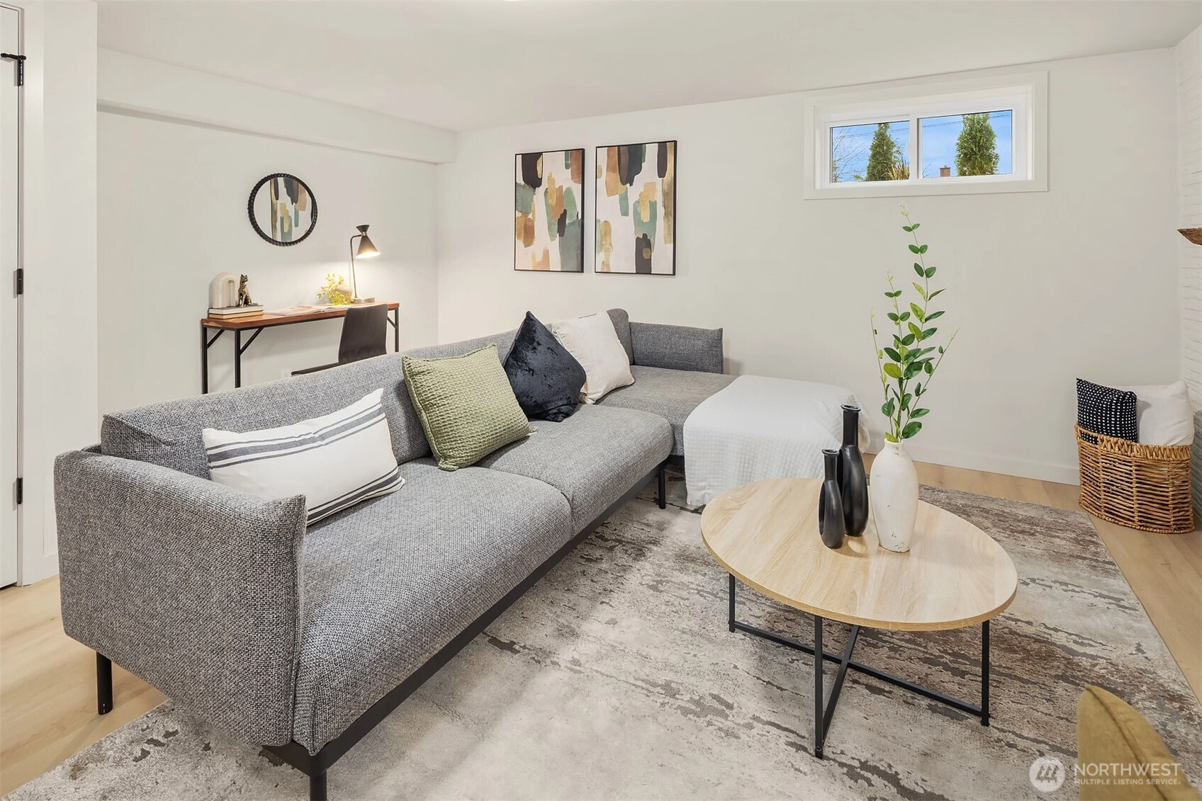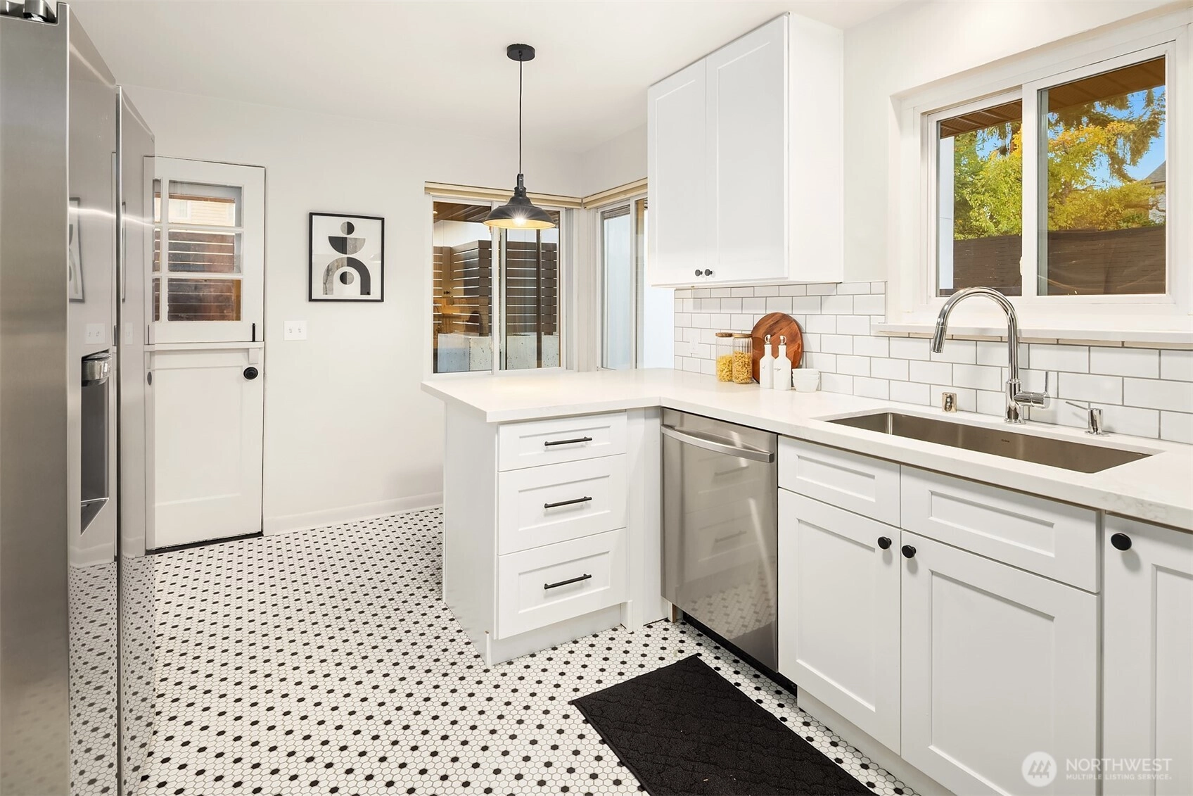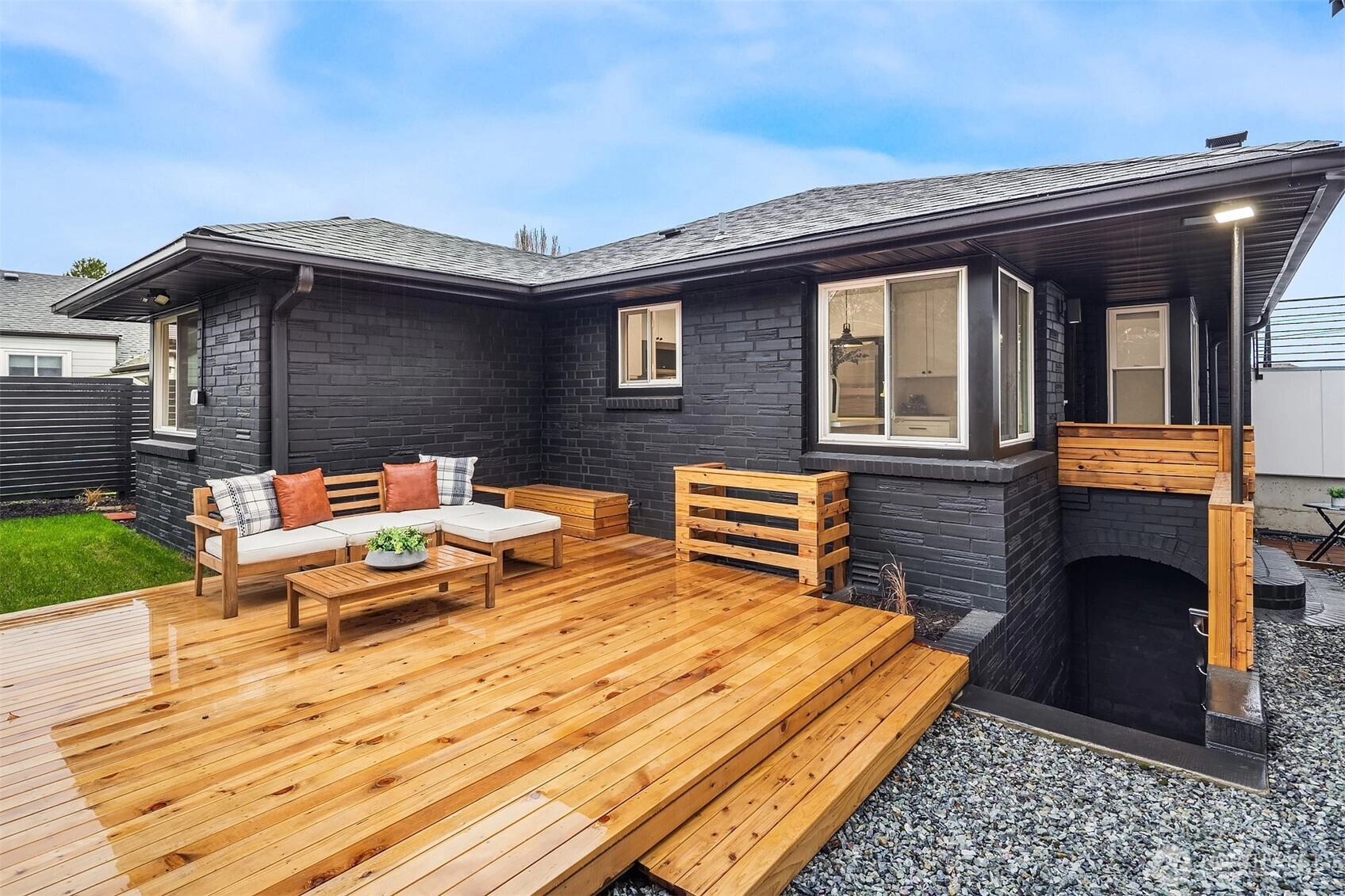 This 3+bedroom, 1.75 bath stunner fuses mid century w/a moody, modern edge. Black-on-black accents & striking finishes elevate every space. A formal dining room anchors the main level, framed by newly refinished original hardwoods & sunlight pouring in. The lower level offers a 3rd bedroom, bath, family room, & dual wine/cold storage—perfect for entertaining or retreat. Outside, the vibe stays bold featuring a gorgeous wood patio for gatherings & large fully fenced yard. New cabinets, appliances, fixtures, floors & fresh paint. All done in a palette that feels refined & unmistakably bold. Minutes to Jefferson golf, easy access to I5—plus walking distance to renowned restaurants, coffee spots, and neighborhood bars. Moody. Modern. Classic.
