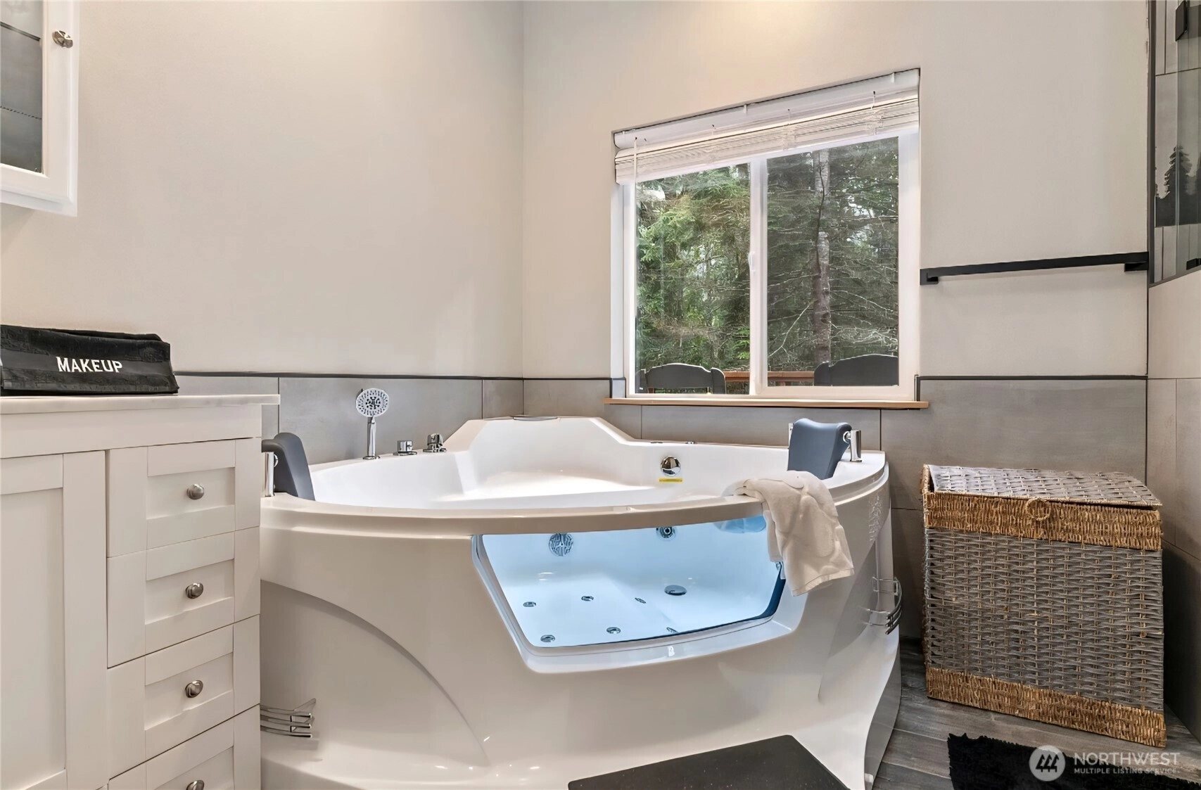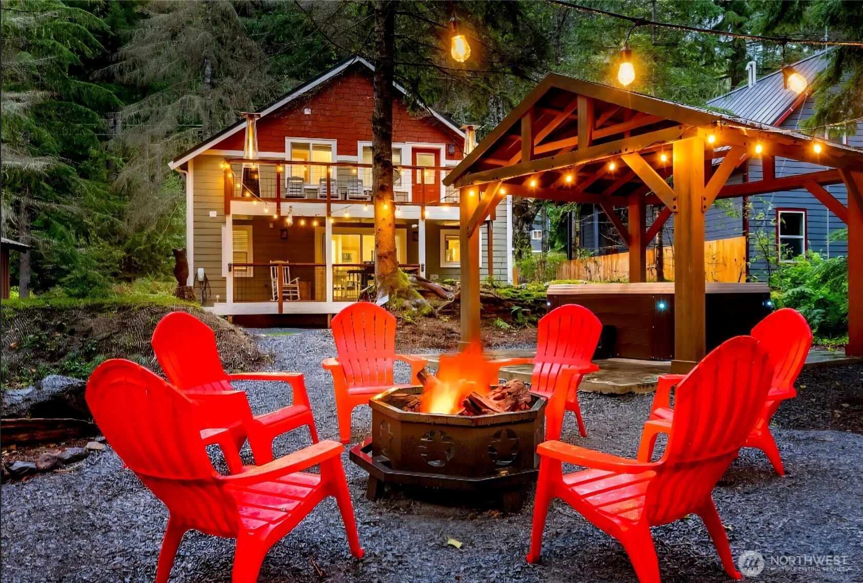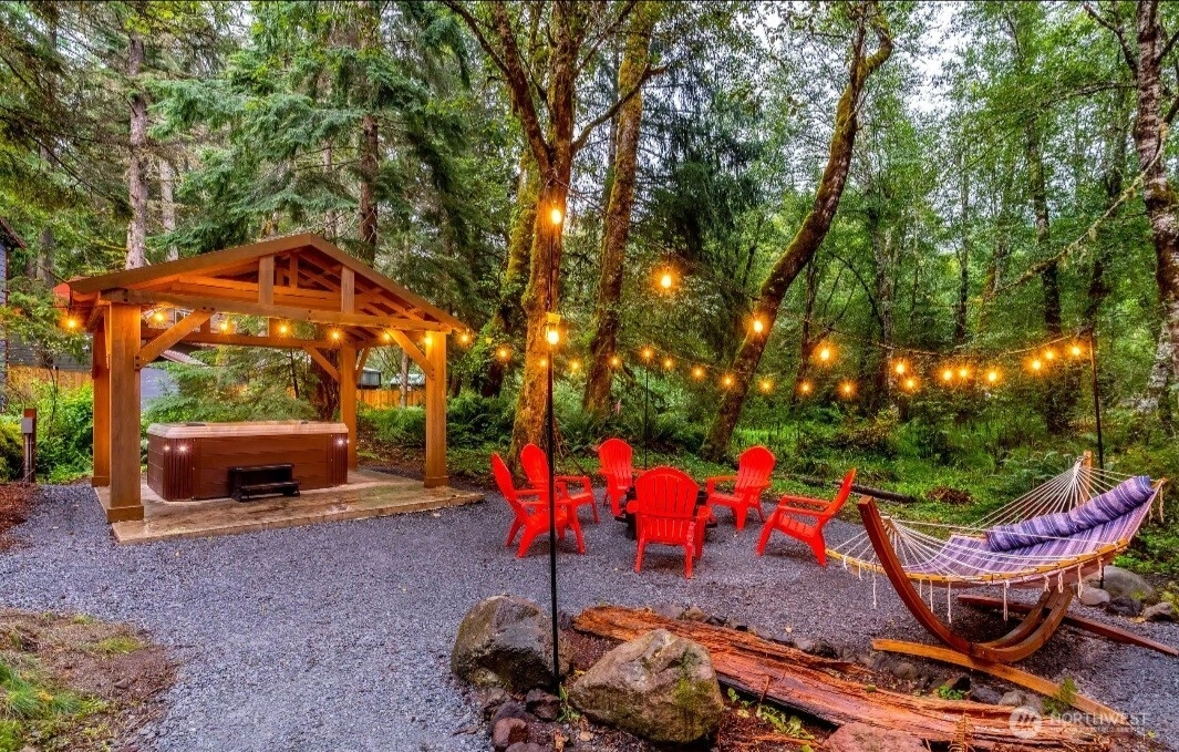 Beautiful Vacation cabin close to Mt Rainier, Custom kitchen and Bath with Jetted tub. Cabin sits on a nice private creek front lot with covered hot tub, fire pit and trails.