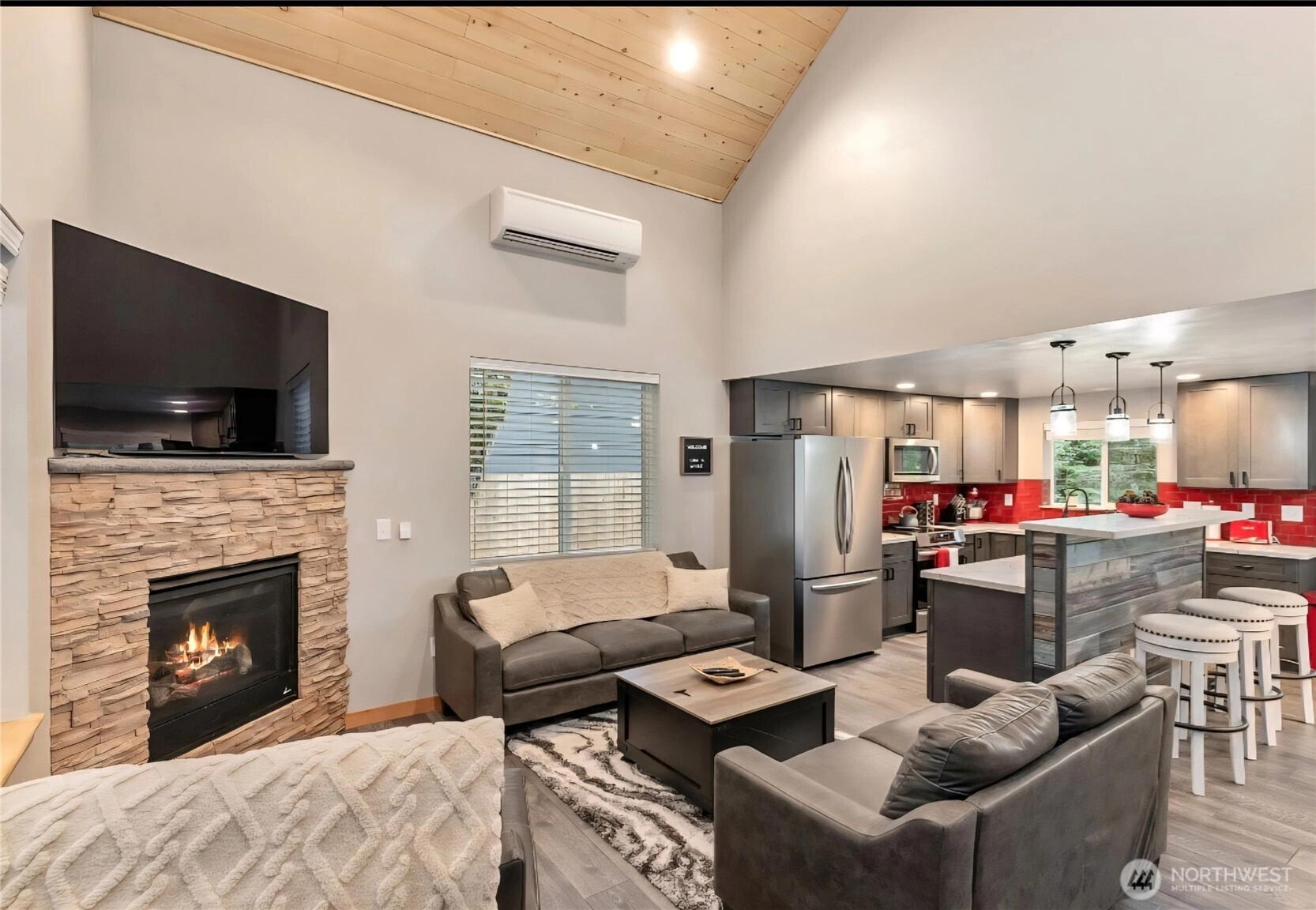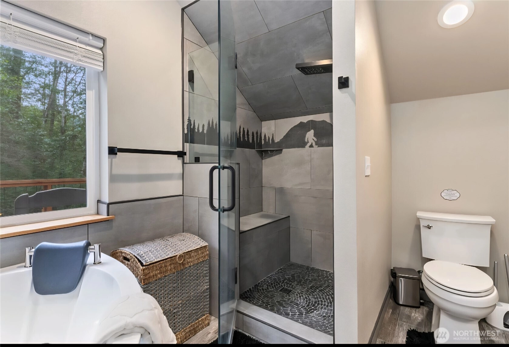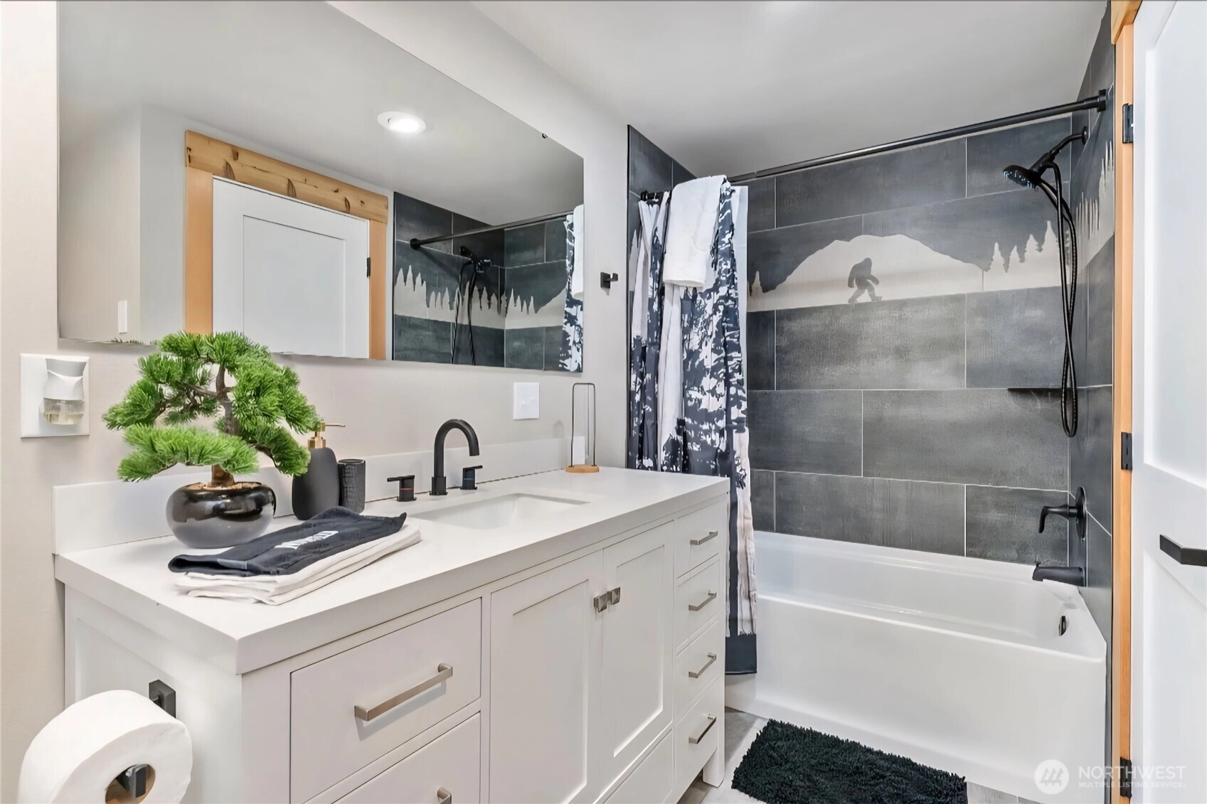 Beautiful Vacation cabin close to Mt Rainier, Custom kitchen and Bath with Jetted tub. Cabin sits on a nice private creek front lot with covered hot tub, fire pit and trails.
