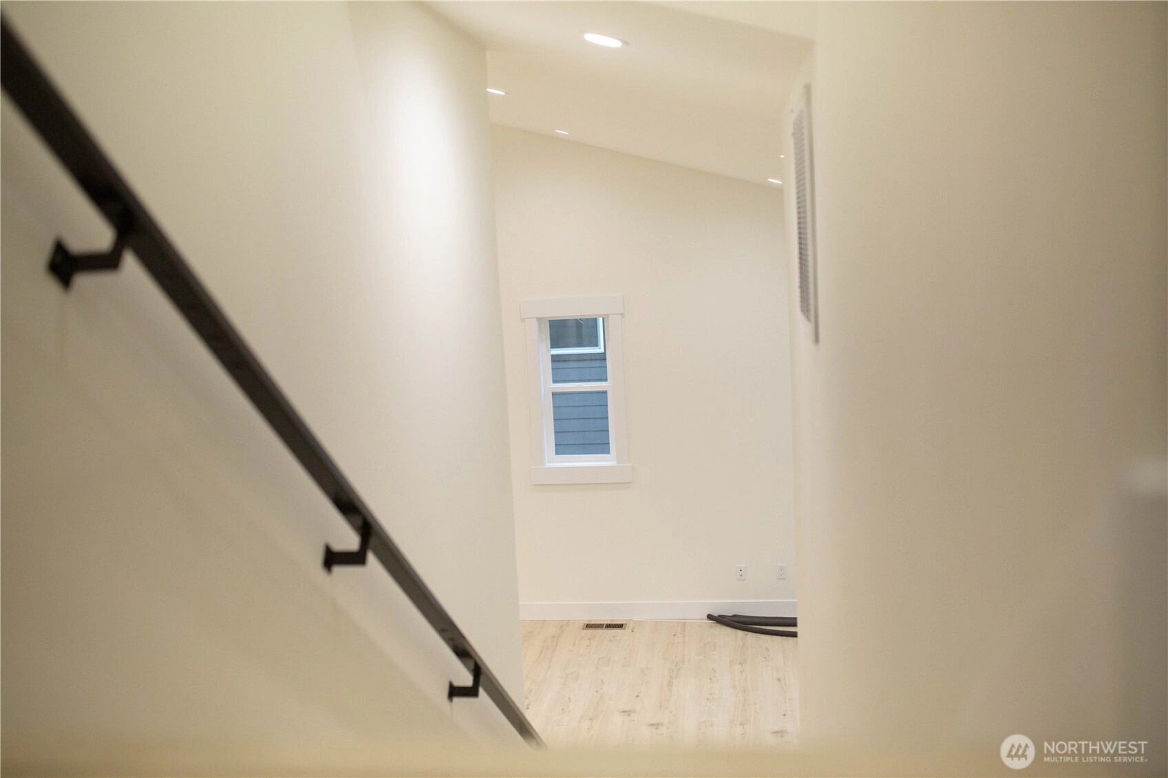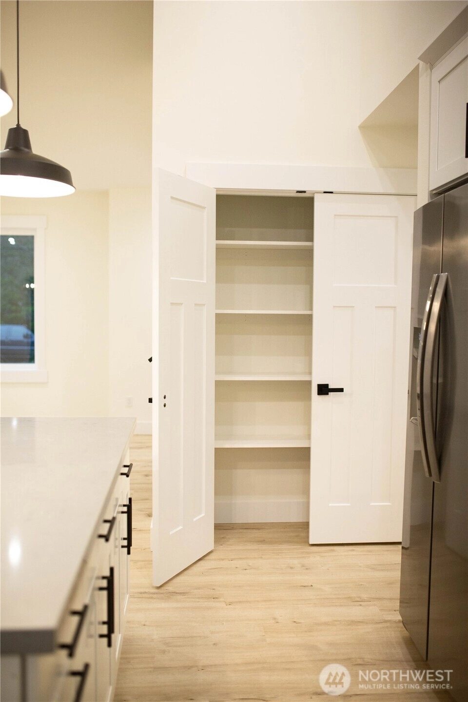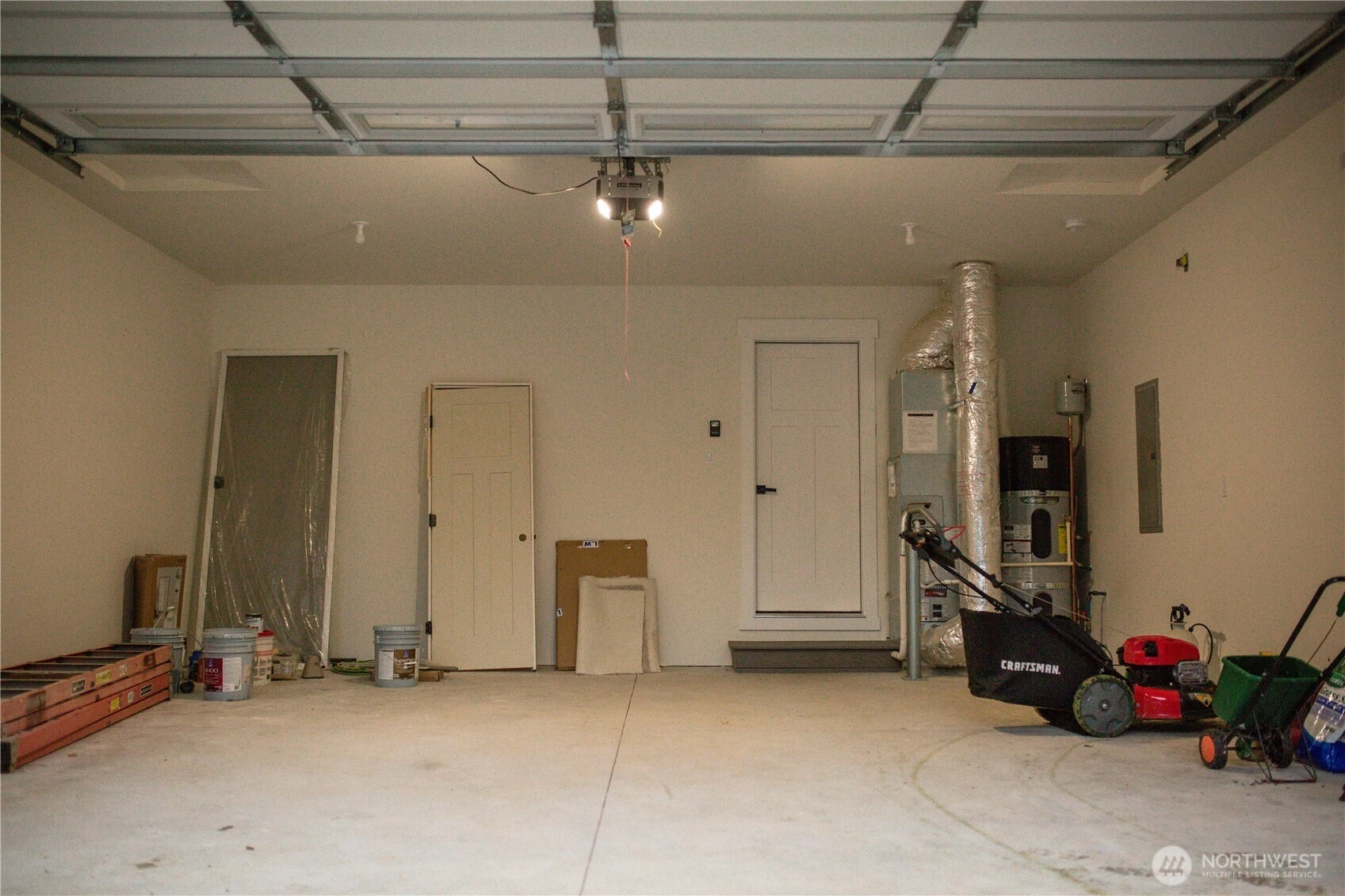 This newly built home offers modern comfort with gorgeous tall vaulted ceilings in the living and dining areas. Just off the living room, you'll find a convenient half bath, a walk-in pantry, and a separate storage area for added functionality. The kitchen features white shaker-style cabinets, stunning gray quartz countertops, and a matching backsplash that creates a clean and sophisticated look. The primary bedroom is located on the main floor and includes a full ensuite bathroom and a generous walk-in closet. Upstairs, the two additional bedrooms share a spacious full bathroom with a vanity topped in the same elegant gray quartz. Enjoy a grassy backyard perfect for outdoor activities. Hurry—this well-thought-out home will not last!
