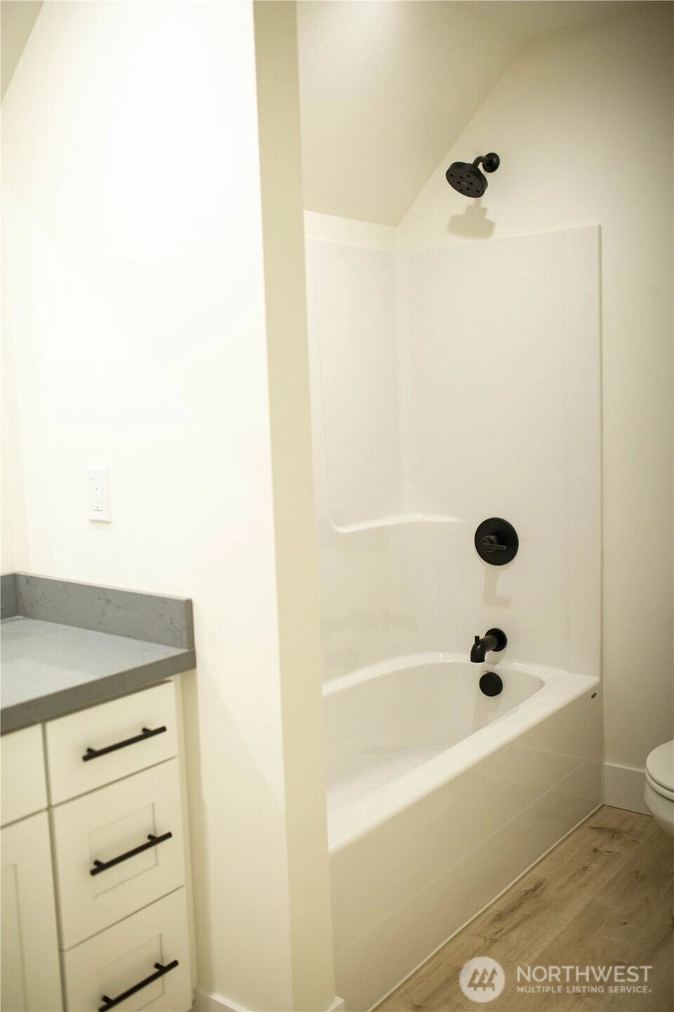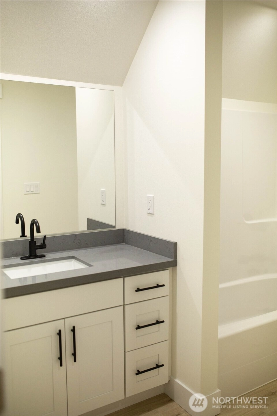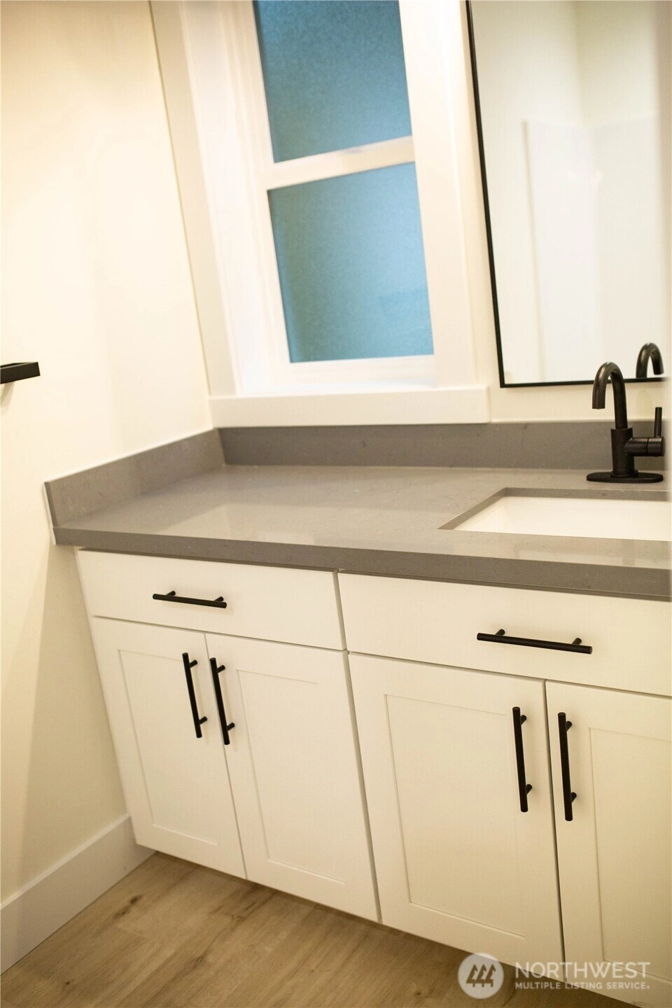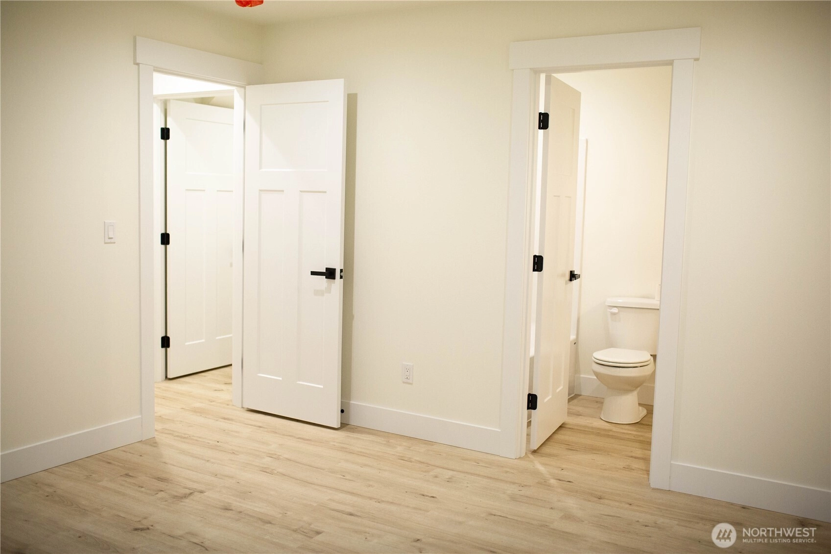 This newly built home offers modern comfort with gorgeous tall vaulted ceilings in the living and dining areas. Just off the living room, you'll find a convenient half bath, a walk-in pantry, and a separate storage area for added functionality. The kitchen features white shaker-style cabinets, stunning gray quartz countertops, and a matching backsplash that creates a clean and sophisticated look. The primary bedroom is located on the main floor and includes a full ensuite bathroom and a generous walk-in closet. Upstairs, the two additional bedrooms share a spacious full bathroom with a vanity topped in the same elegant gray quartz. Enjoy a grassy backyard perfect for outdoor activities. Hurry—this well-thought-out home will not last!