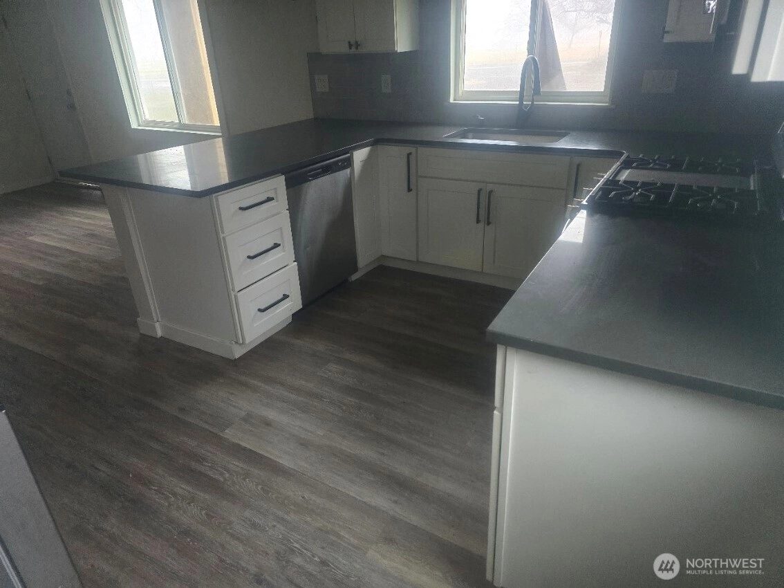 Recent updates to the home include the completion of essential systems such as electrical, plumbing, and roofing. The kitchen is a highlight, featuring a modern gas range and refrigerator, while the laundry room comes equipped with a newer washer and dryer. The bathrooms have been remodeled within the last three years. For climate control, a ductless heat pump provides cooling during the summer, and the home also boasts newer vinyl windows, insulated walls with sheetrock, and updated lighting throughout.
