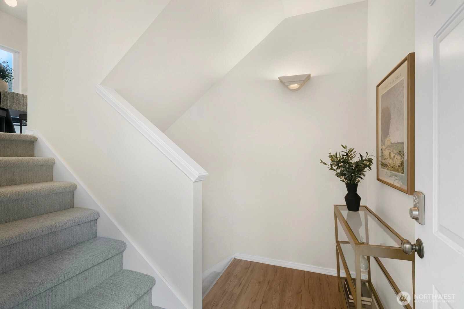 Welcome to Fairway Ridge! Excellent & updated, you will love this End-Unit condo. Living more like a single-family home, you can step into homeownership in a quiet small community, with an unbeatable location. Natural light pours in through large picture windows to accent new flooring, new lighting, cozy gas fireplace, & private deck. Large living & dining area on main, with kitchen & powder room. Both bedrooms up with their own full baths, & generous closet space. Move in with peace of mind, building updates include: new garage door, new siding, newer roof & freshly painted/updated exterior. Private 2-car garage, with plenty of storage space. Conveniently close to new light rail station, parks, dining, Edmonds CC, & Lynwood Golf Course.