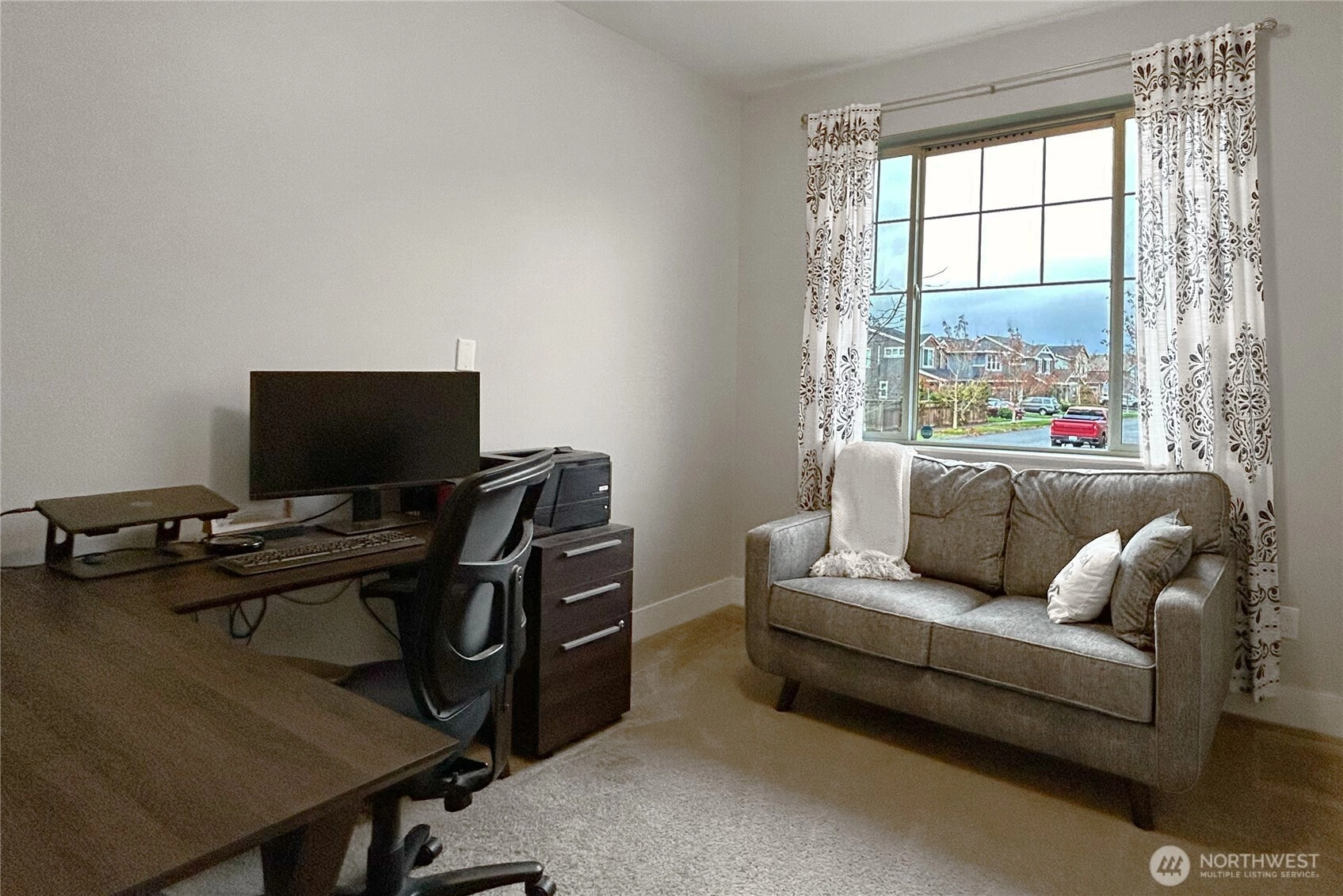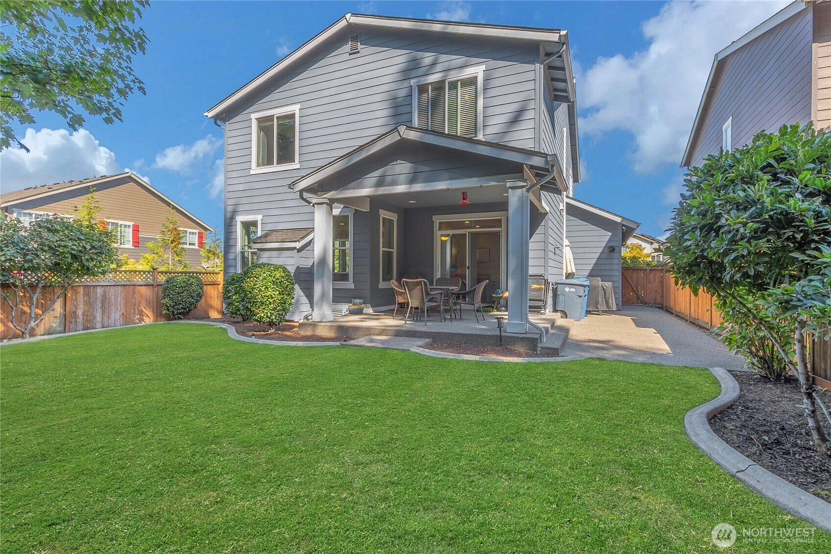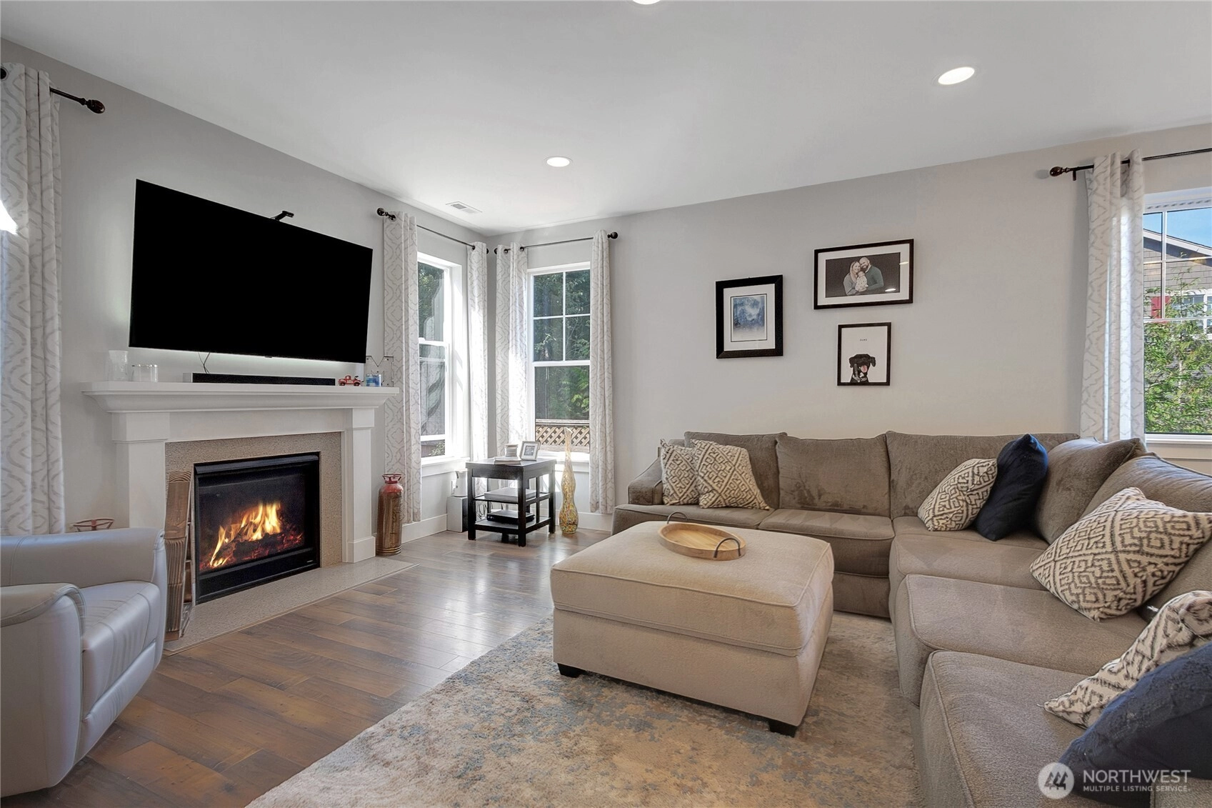Discover this well-cared-for 2,183 sq ft home in Tehaleh, ideally placed along a serene greenbelt with the trailhead just steps away. Inside, the flowing floor plan highlights a modern kitchen with granite counters and stainless appliances, opening to a light-filled living area with a cozy fireplace. Upstairs offers 3 bedrooms and a spacious loft, while the main level features a private office and AC for comfort. The primary suite includes a generous walk-in closet and luxurious 5-piece bath. A covered patio and fully fenced yard create a private retreat, enhanced by lush landscaping and irrigation. EV charging and W/D hook up in garage. Enjoy Tehaleh’s many parks, trails, playgrounds, and amenities right outside your door!