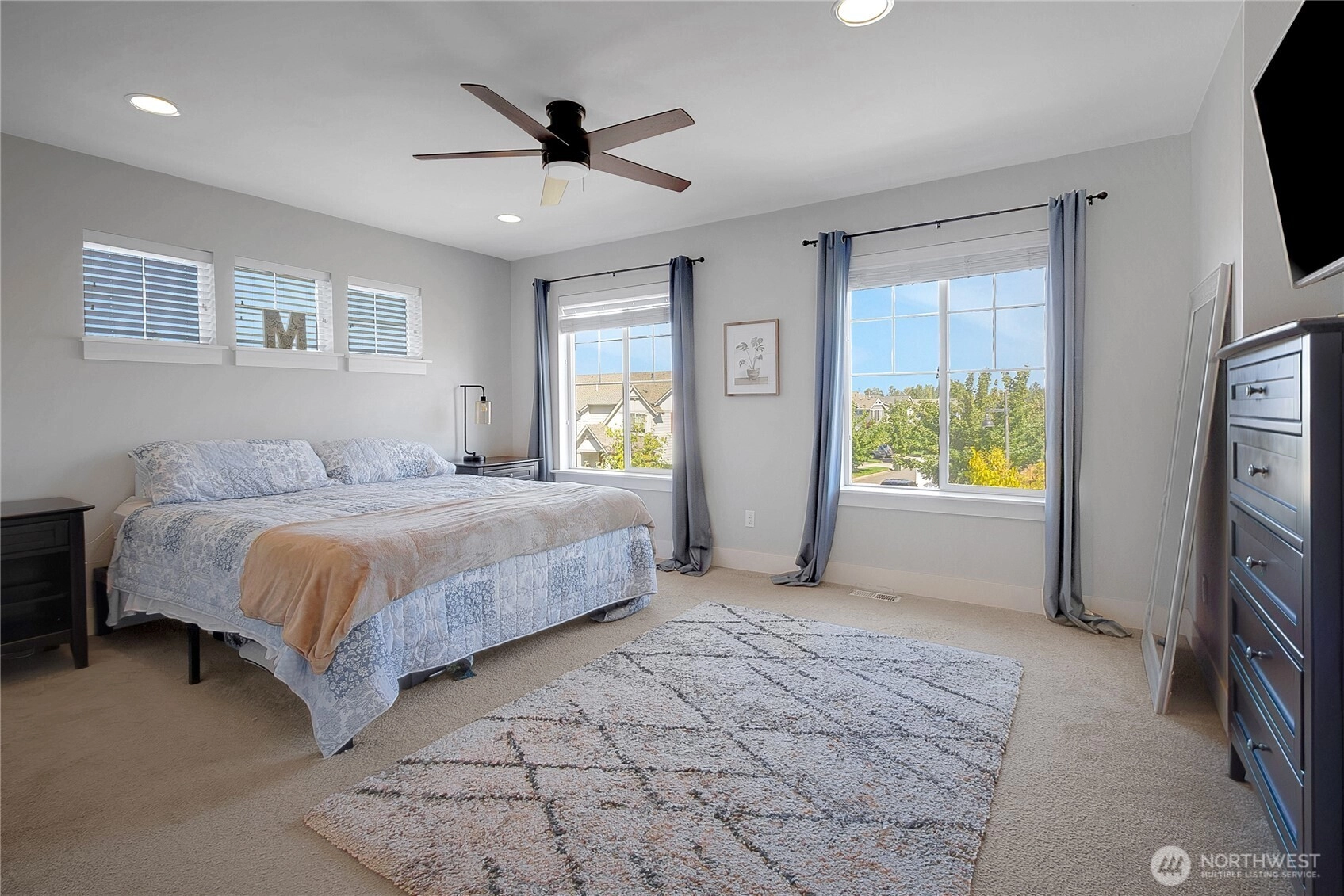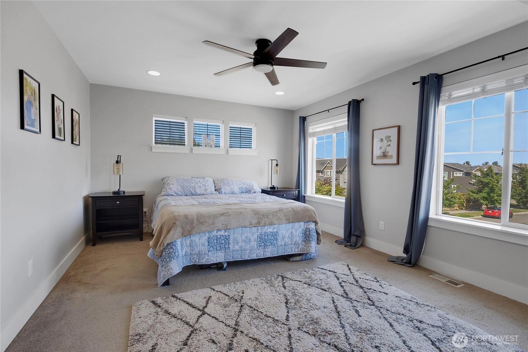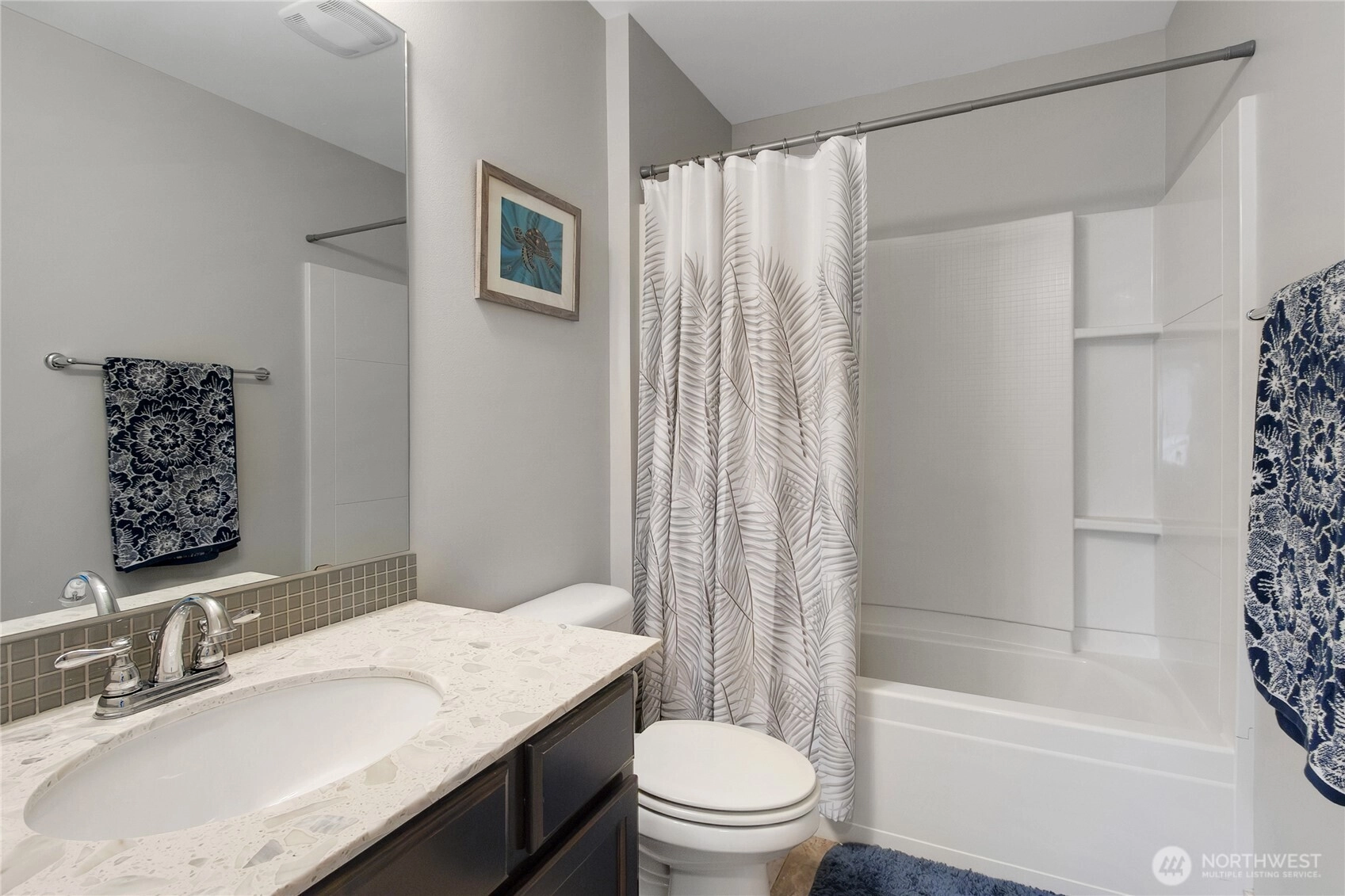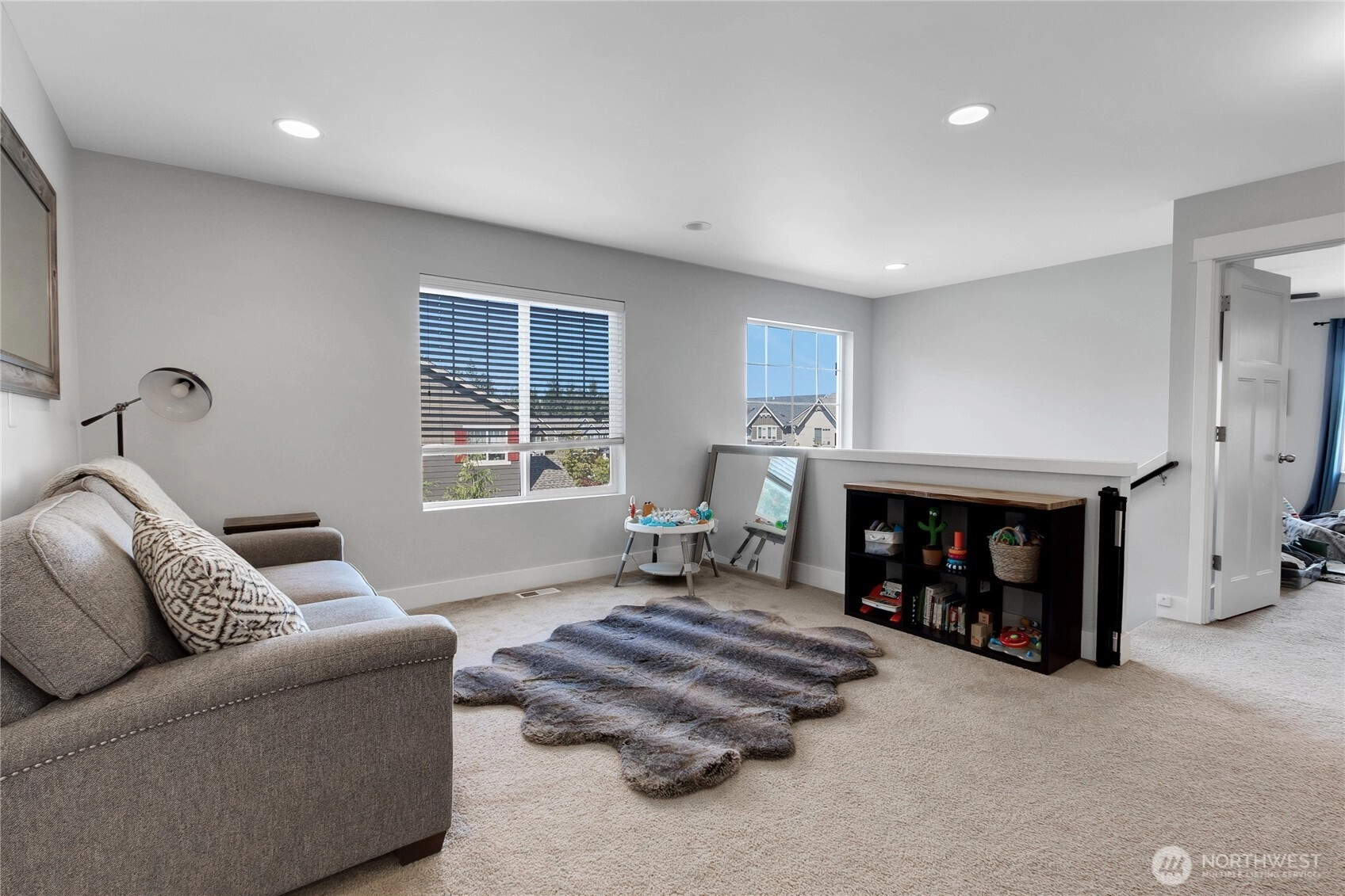 Discover this well-cared-for 2,183 sq ft home in Tehaleh, ideally placed along a serene greenbelt with the trailhead just steps away. Inside, the flowing floor plan highlights a modern kitchen with granite counters and stainless appliances, opening to a light-filled living area with a cozy fireplace. Upstairs offers 3 bedrooms and a spacious loft, while the main level features a private office and AC for comfort. The primary suite includes a generous walk-in closet and luxurious 5-piece bath. A covered patio and fully fenced yard create a private retreat, enhanced by lush landscaping and irrigation. EV charging and W/D hook up in garage. Enjoy Tehaleh’s many parks, trails, playgrounds, and amenities right outside your door!