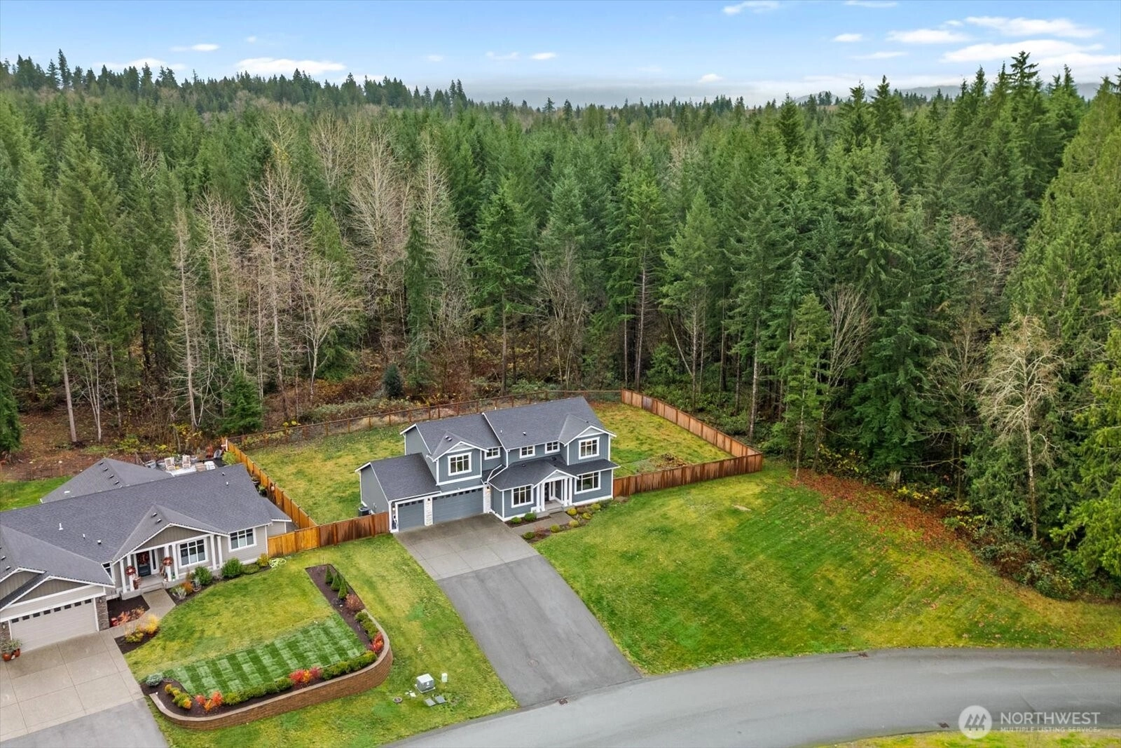 Nestled in the prestigious gated community of Brighton Park, this breathtaking 2,499 sq. ft. two-story home rests on a 1.67-acre private corner lot, backs up to a native growth protected area for privacy and peace. Bright open layout has a chef-inspired kitchen w/ spacious island, quartz countertops, stainless steel appliances, and a gas range. French doors reveal a main-floor office, while upstairs is 3 bedrooms, a full bath, and a luxurious primary suite w/ 5 piece en-suite bath and walk-in closet. Step outside to a fully fenced yard with a covered porch, level lawn, and raised garden beds. Complete with a 3-car garage w/ epoxy floors, EV charger, air conditioning, permanent holiday lights and more, this home offers the ultimate retreat!