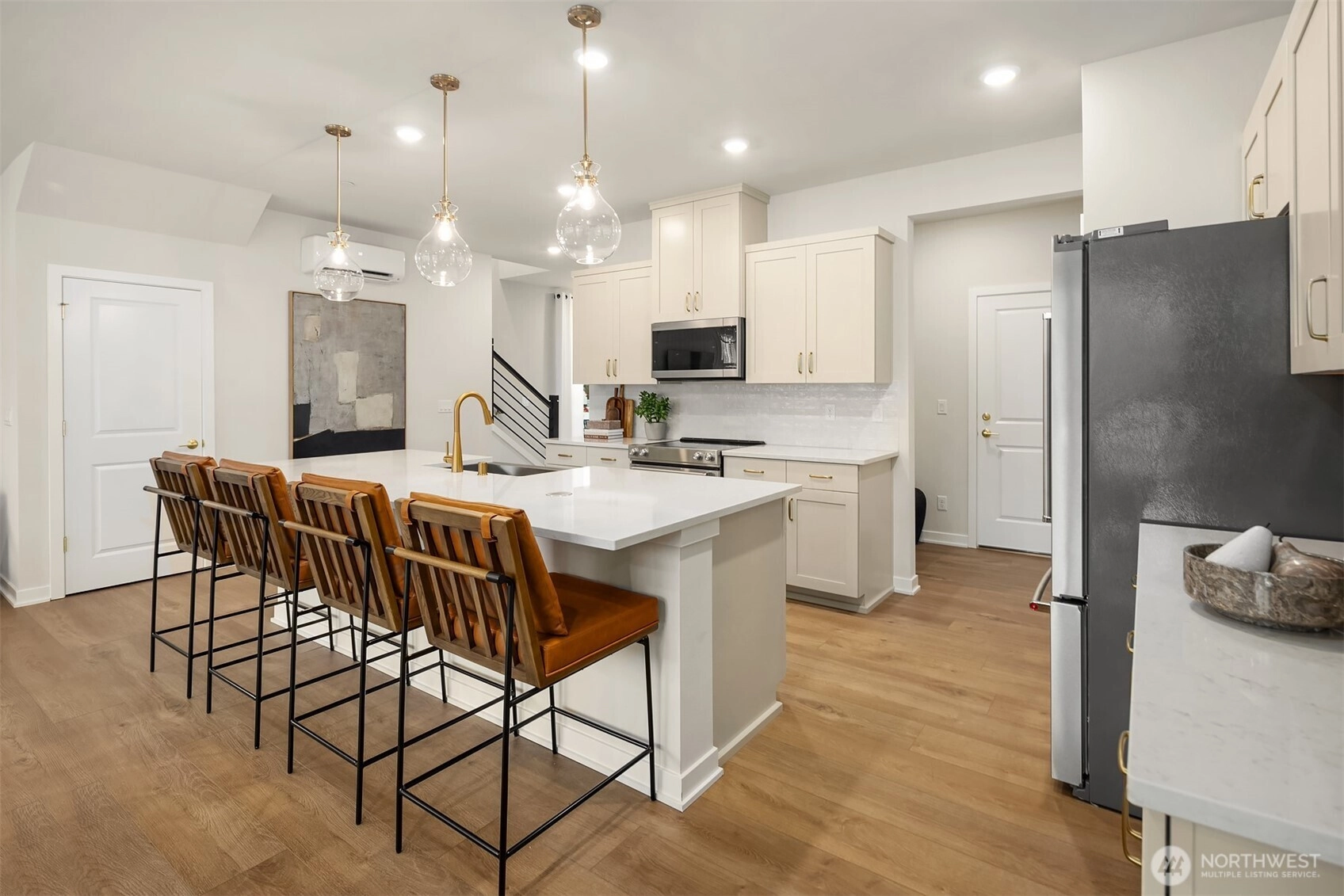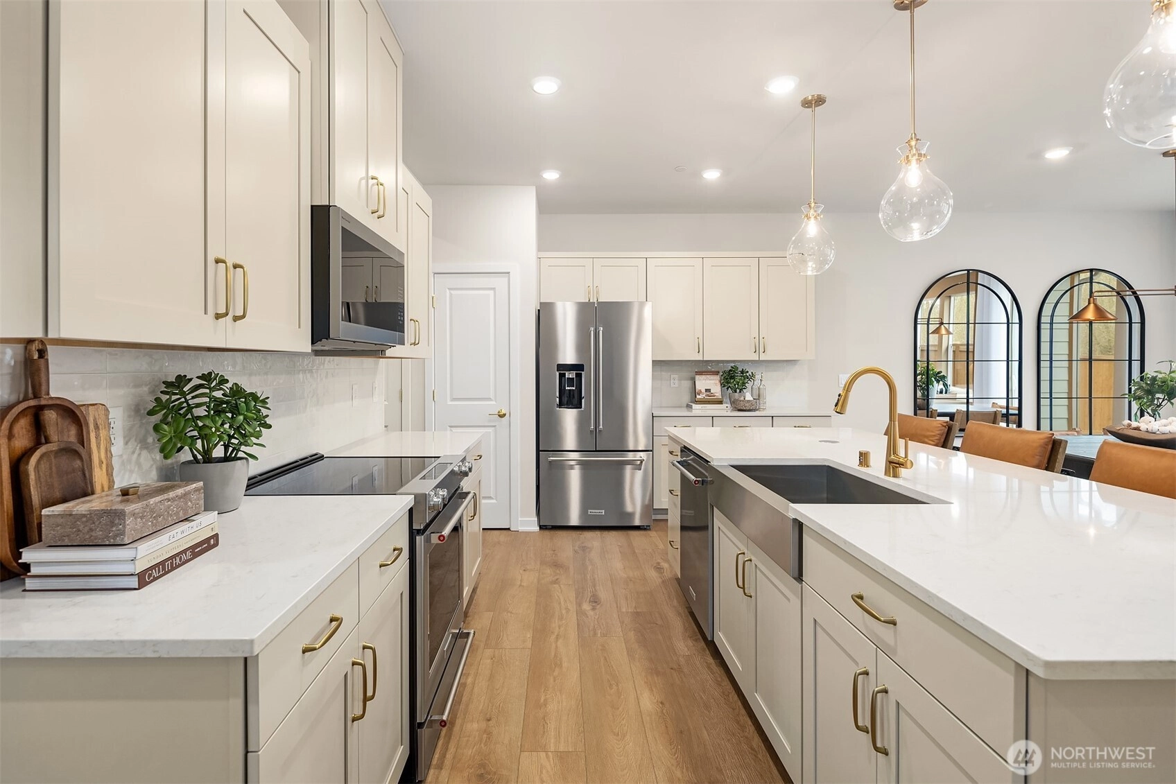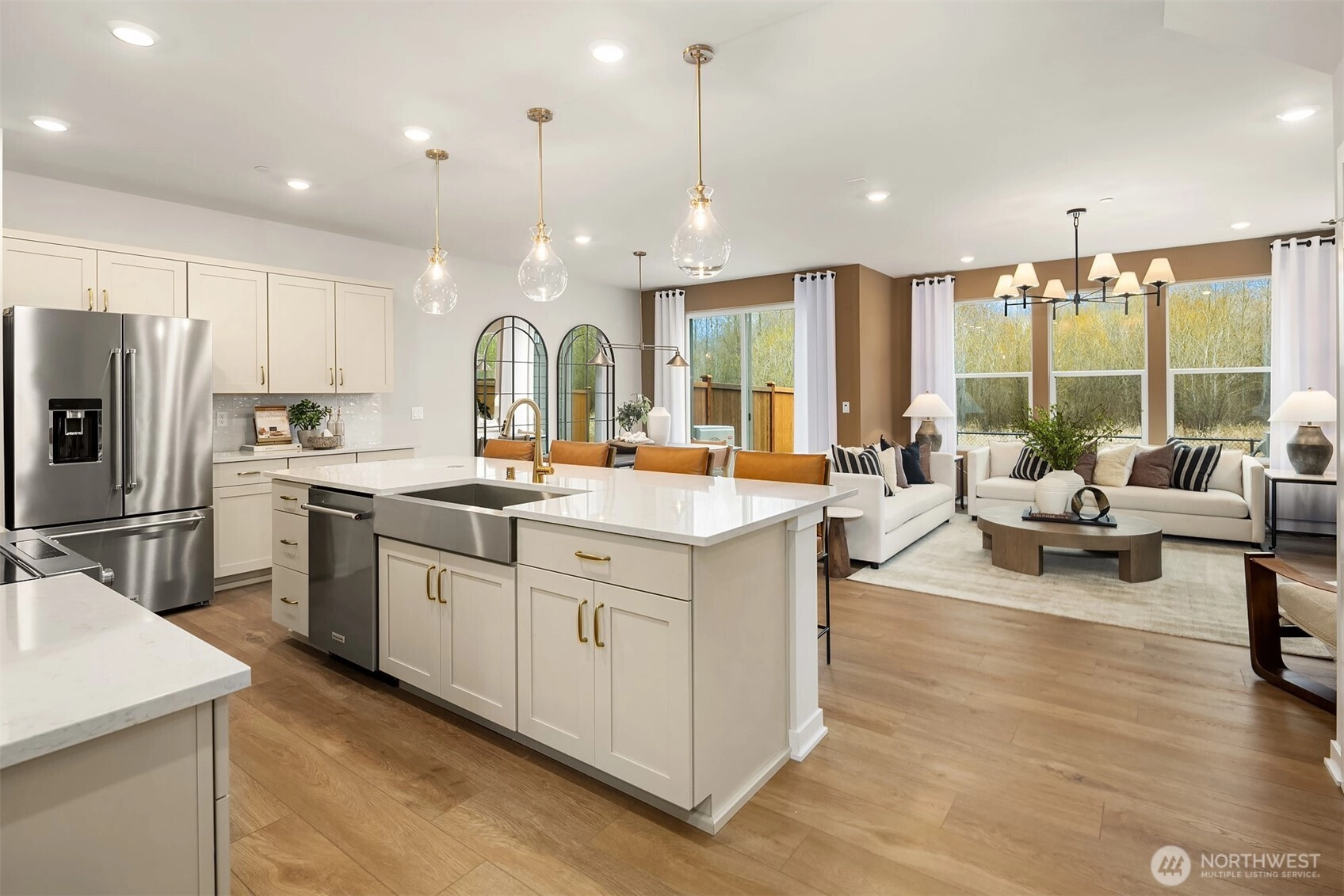 Welcome to Hummingbird Crossing Towns! Contemporary living at its finest in this beautiful Ashton II End Unit Plan. 3-story townhome features 3 bedrooms with walk-in closets, 2.5 bathrooms, an extra-large loft with modern fireplace and closet, and 2-car garage. 2440 sq. ft. open floor plan, high ceilings, and tons of natural light. The kitchen shines with quartz countertops and Whirlpool appliances. Enjoy indoor-outdoor living with your own private backyard, perfect for relaxing or hosting. Don't miss your chance to own this move-in-ready gem. Located just minutes from the I-5/Smokey Point Blvd., near Lakewood Crossing Shopping Center, Costco, Gissberg Twin Lakes Park. Special interest rate incentives available w/our preferred lender. Broker Registration Policy - Broker Must Register Client Upon First Visit. If Broker unable to attend, Broker to register Client in advance or Buyer to register their Broker upon first visit. Failure to do so will result in no compensation.
