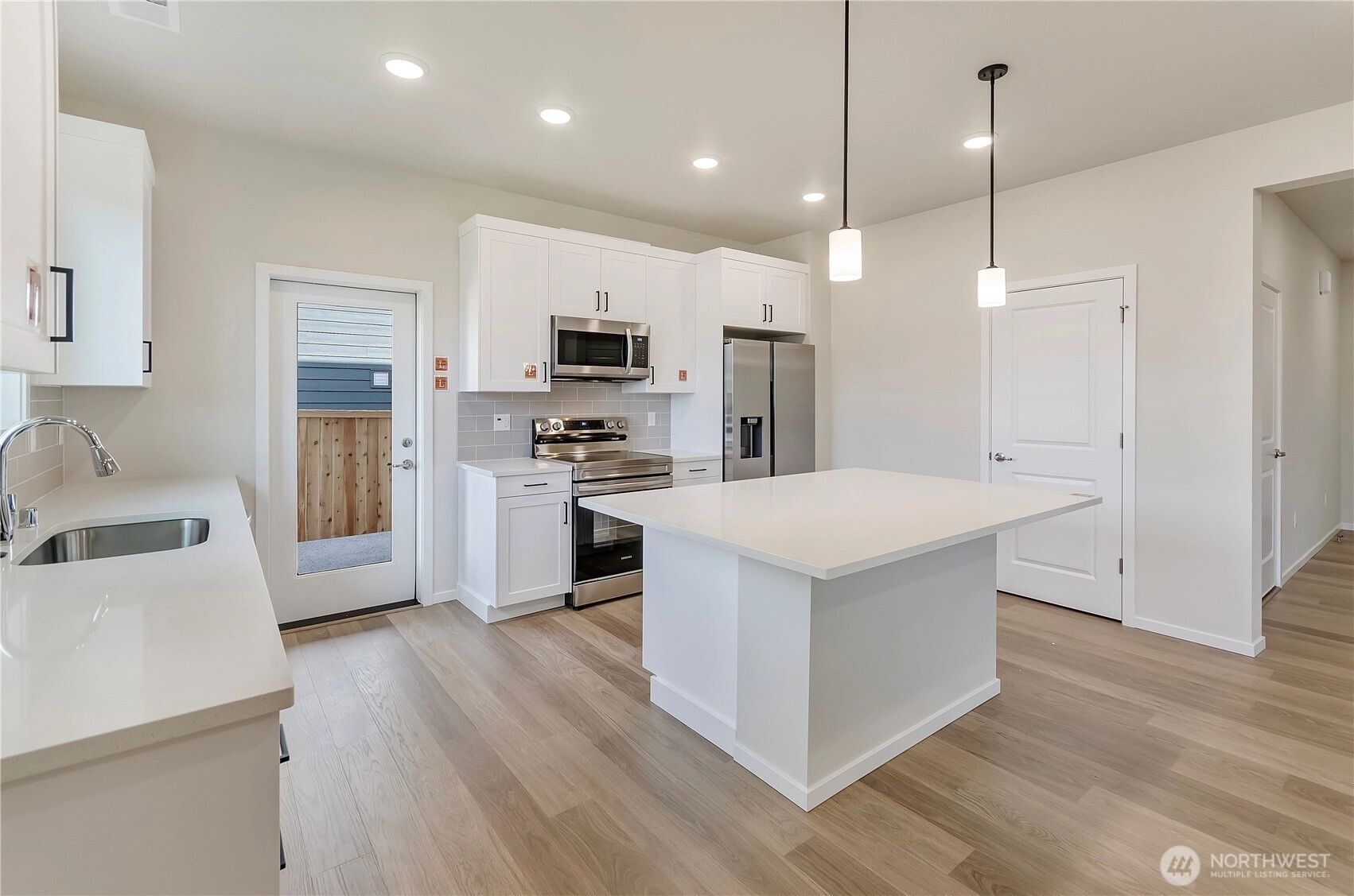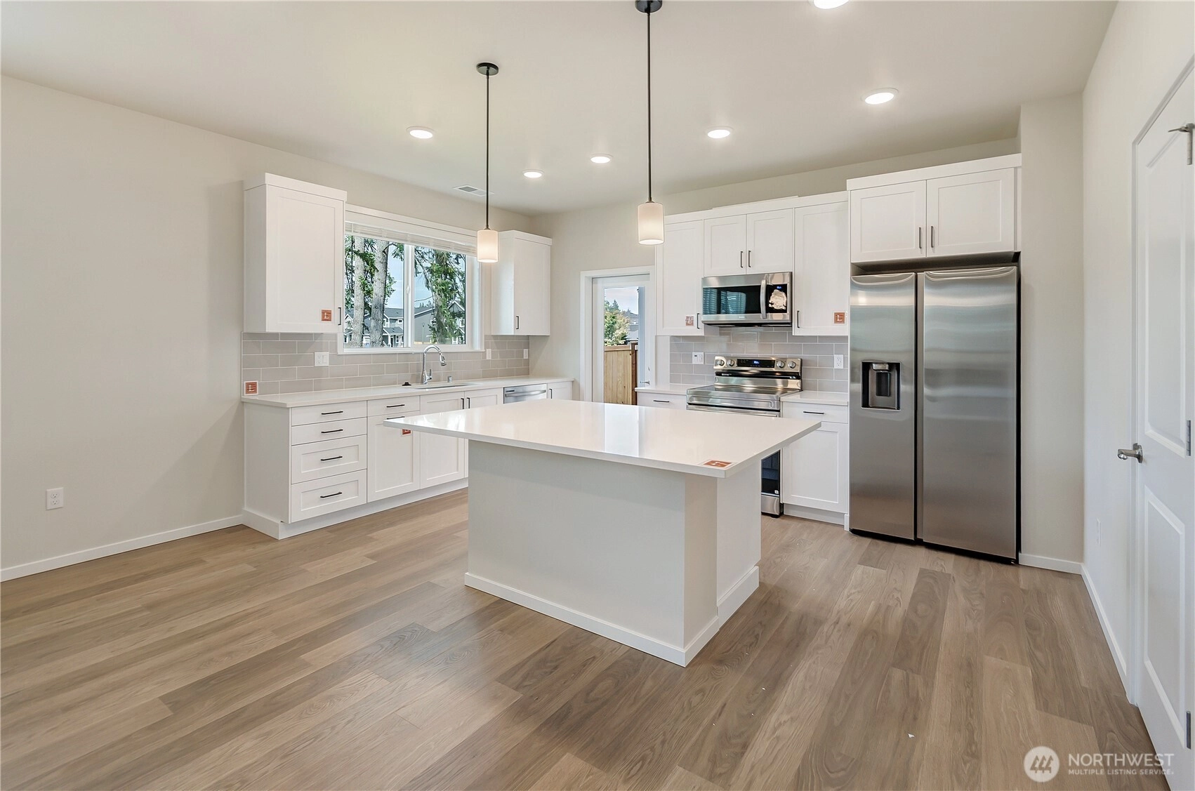 Welcome to The Preserve by Rush Residential, where modern design meets convenience in Tacoma’s Fredrickson area. Lot 6 features the Elbe plan with 5 bedrooms, a loft, 2.75 baths, and a standout main-floor bedroom with a nearby ¾ bath—perfect for guests or multi-generational living. The spacious kitchen includes quartz counters, full-height subway tile backsplash, stainless steel appliances, and custom soft-close cabinetry. Engineered plank flooring flows through the entry, kitchen/nook, powder room, and great room. Enjoy site-painted millwork, a luxury en-suite with large shower, tile bathroom counters, blinds, washer/dryer, fridge, A/C, covered patio, fenced yard, and HOA-maintained irrigated front yard. Easy JBLM/freeway access.